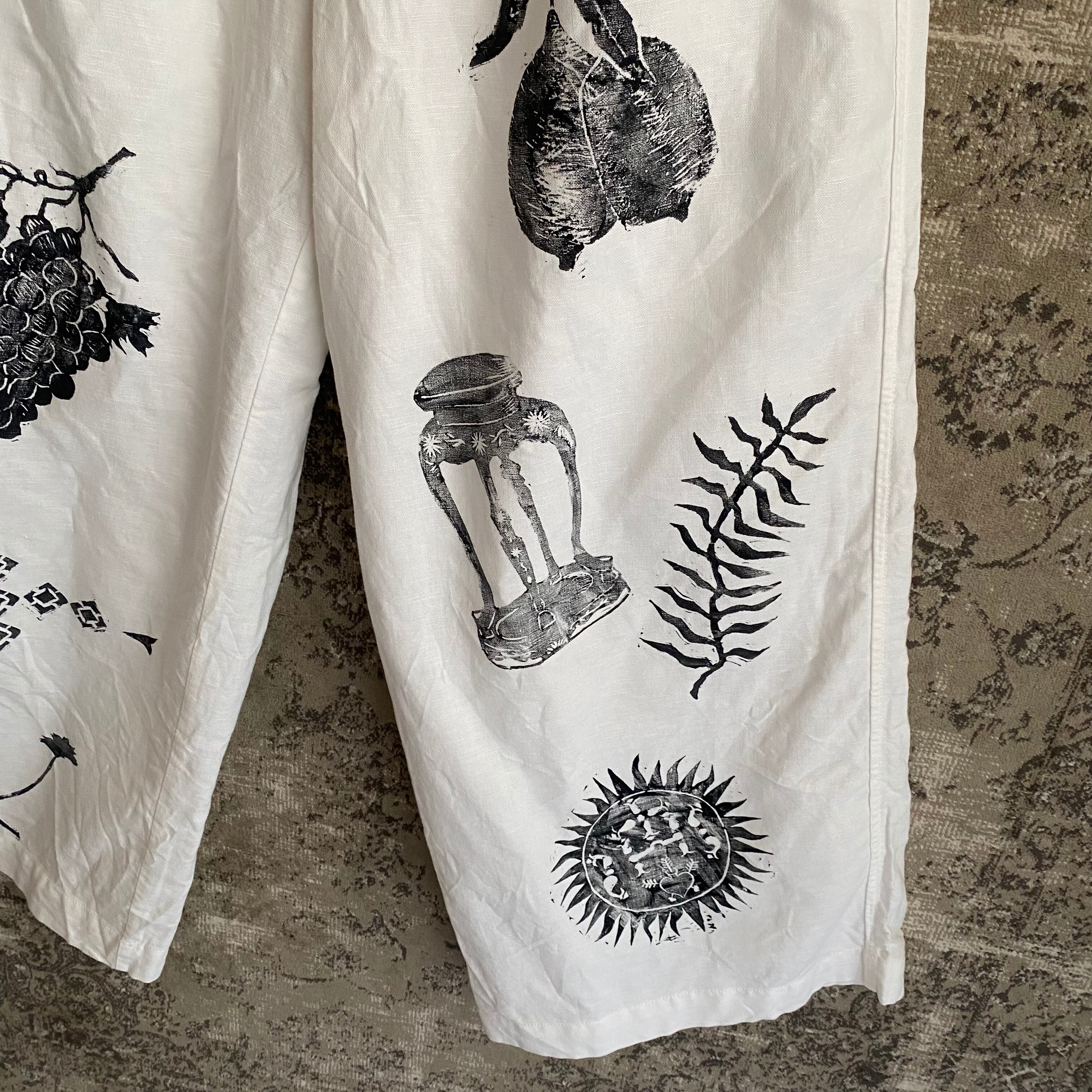 ナンバー682花柄、果物柄、コットン綿、ワイドパンツ、レディース古着、ヴィンテージ、インドブロックプリント