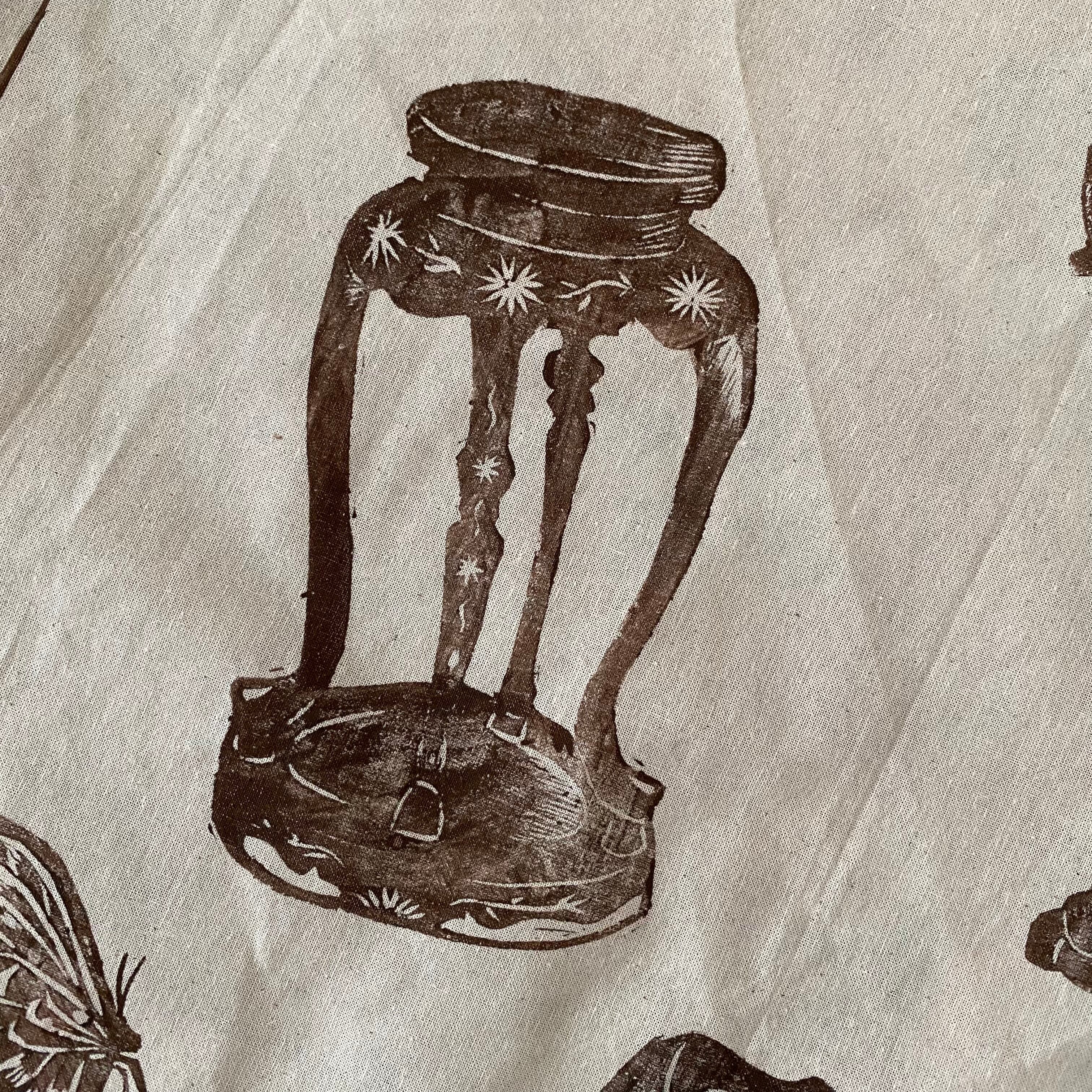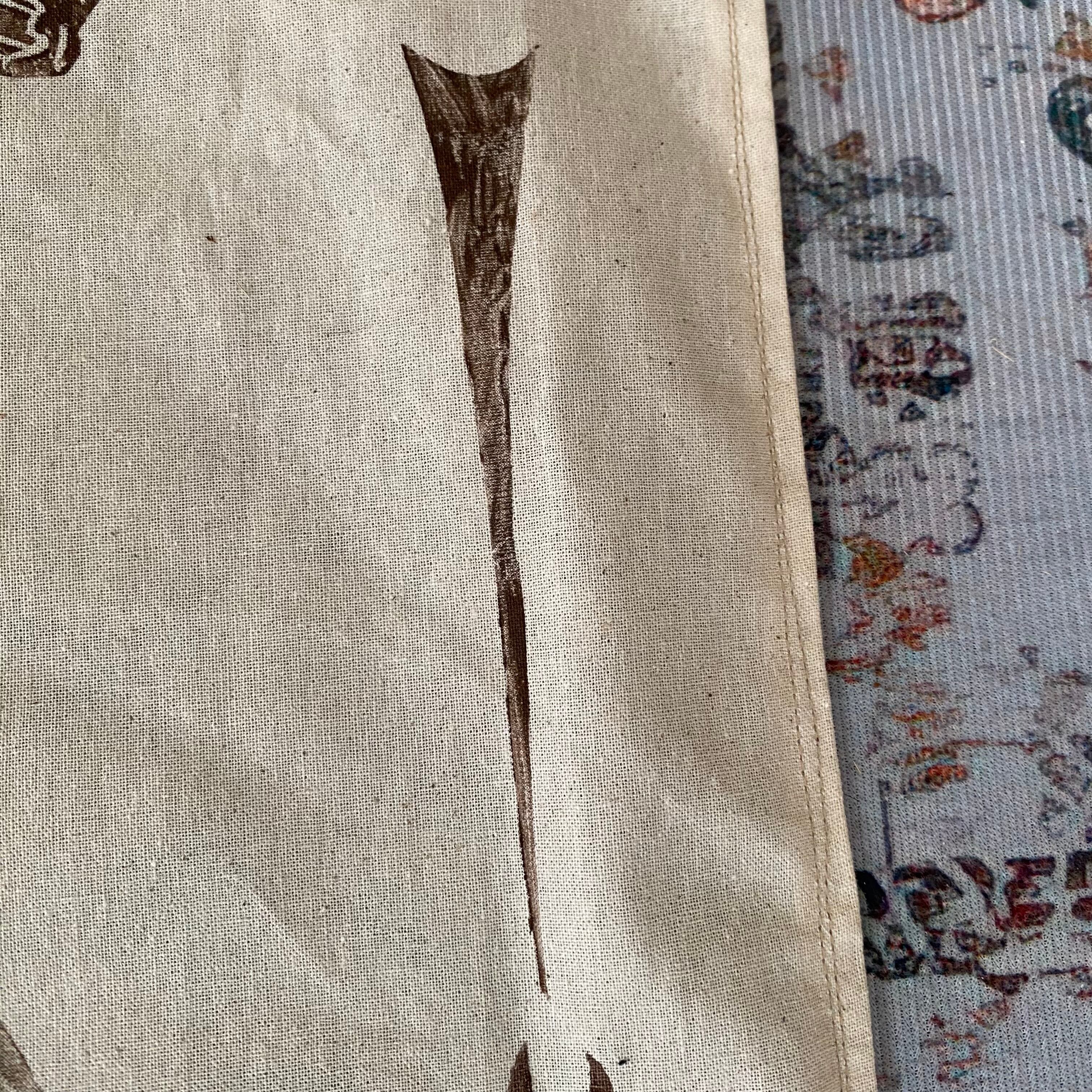 ブロックプリントアーティストの作品で、沖縄の自然や動物、ハヂチをモチーフに版を一つ一つ丁寧に彫り、専用のインクで心を込めてこちらのタペストリーをハンドメイドで作られています