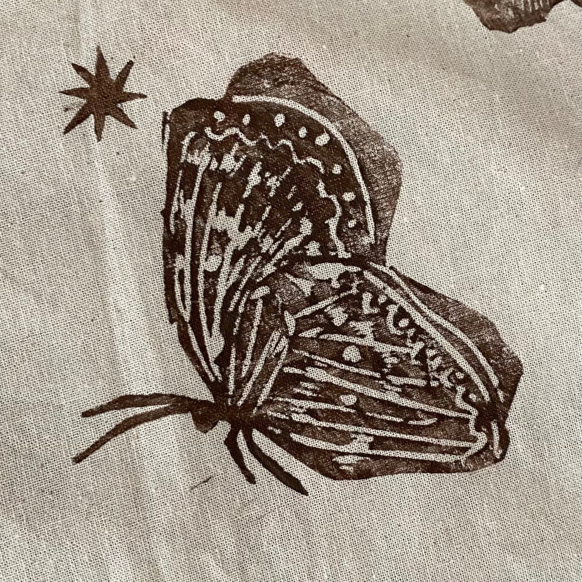 タペストリー コットン 生地 ブロックプリント 版画 ハヂチ 花柄 動物 蝶々