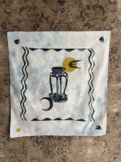 琉球染め作家の方と琉球アート作家が手彫りで彫った版でプリントされた飾るスカーフ⭐︎