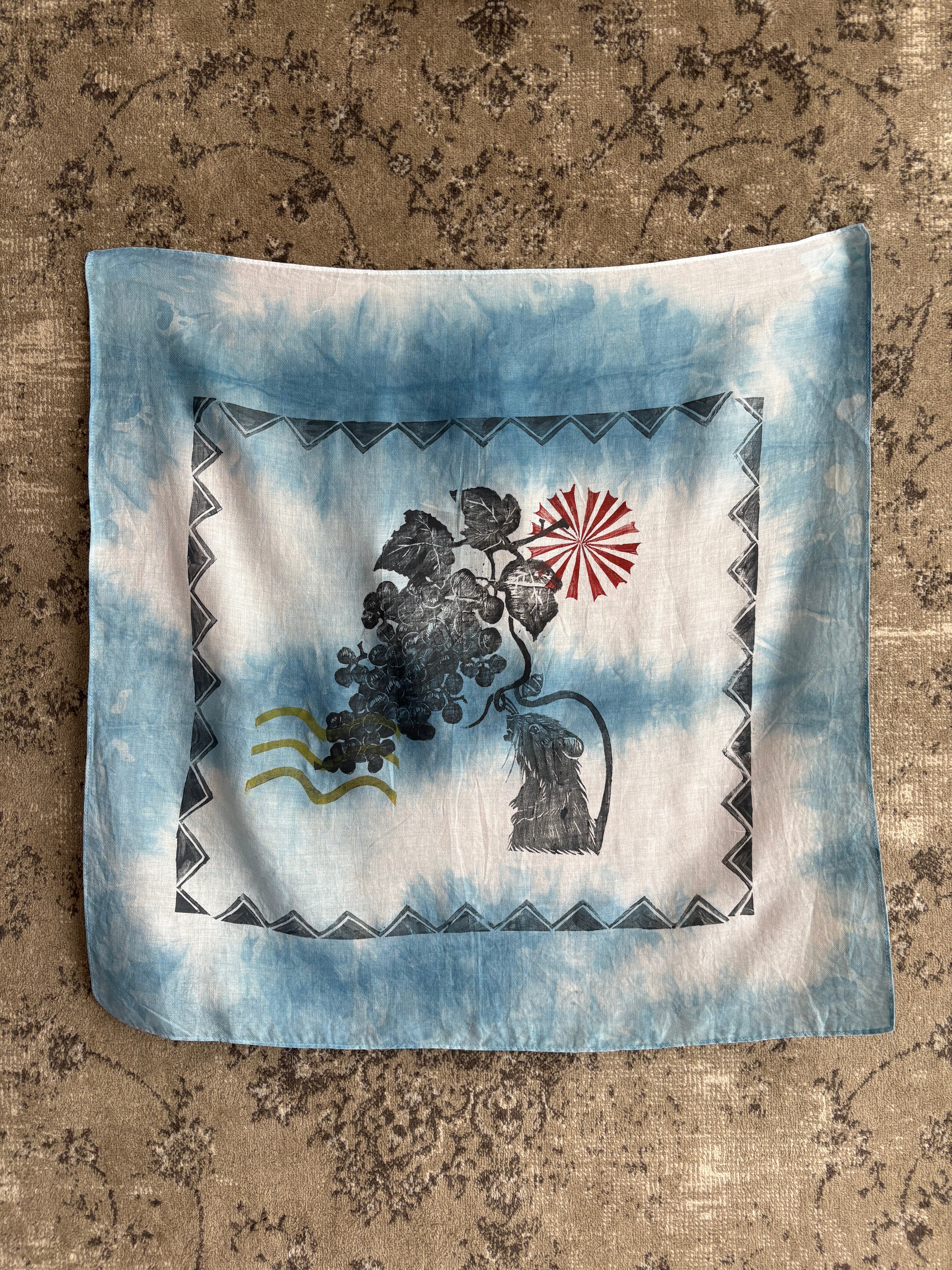 琉球藍染め作家の方と琉球アート作家が手彫りで彫った版でプリントされた飾るスカーフ⭐︎