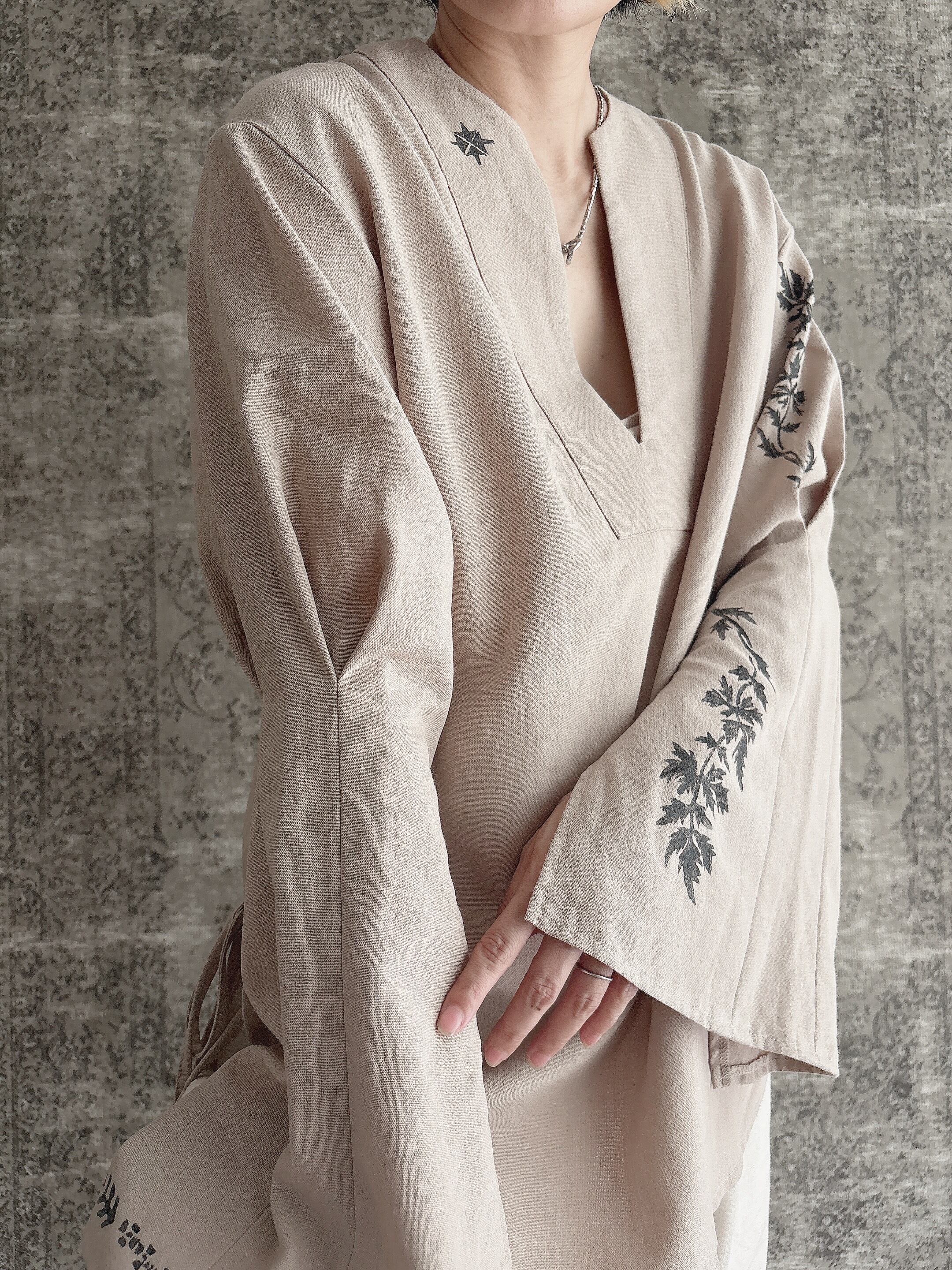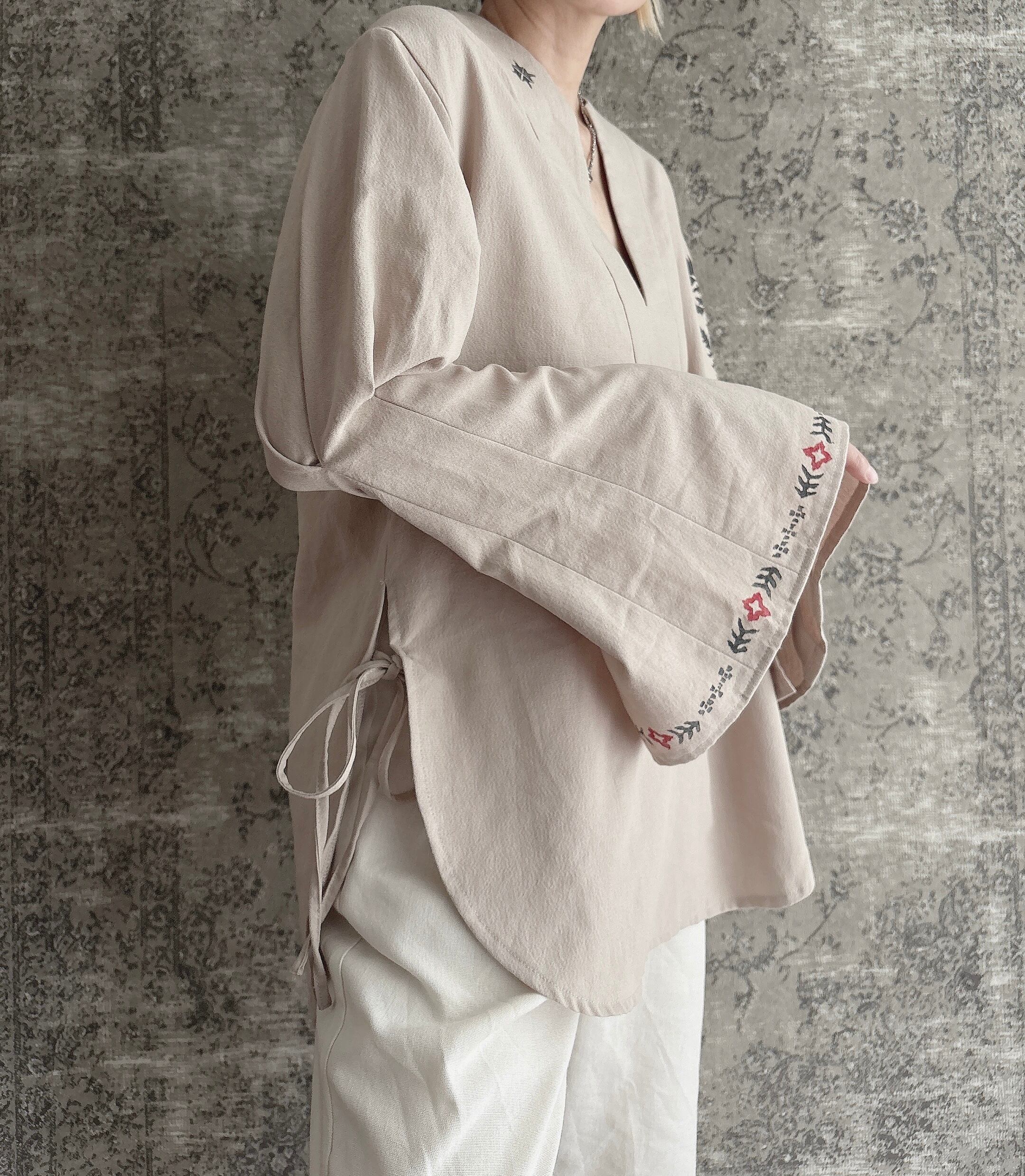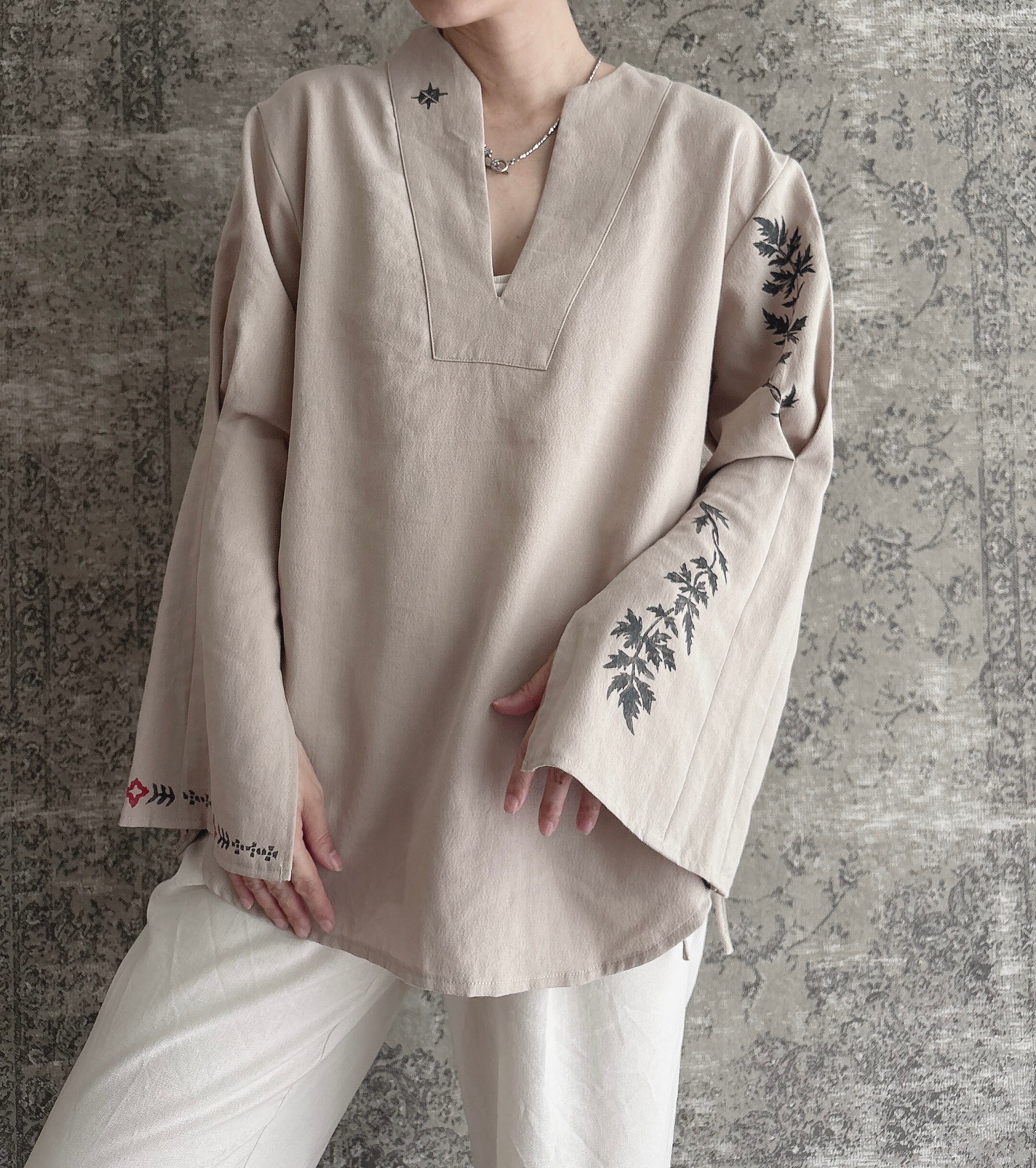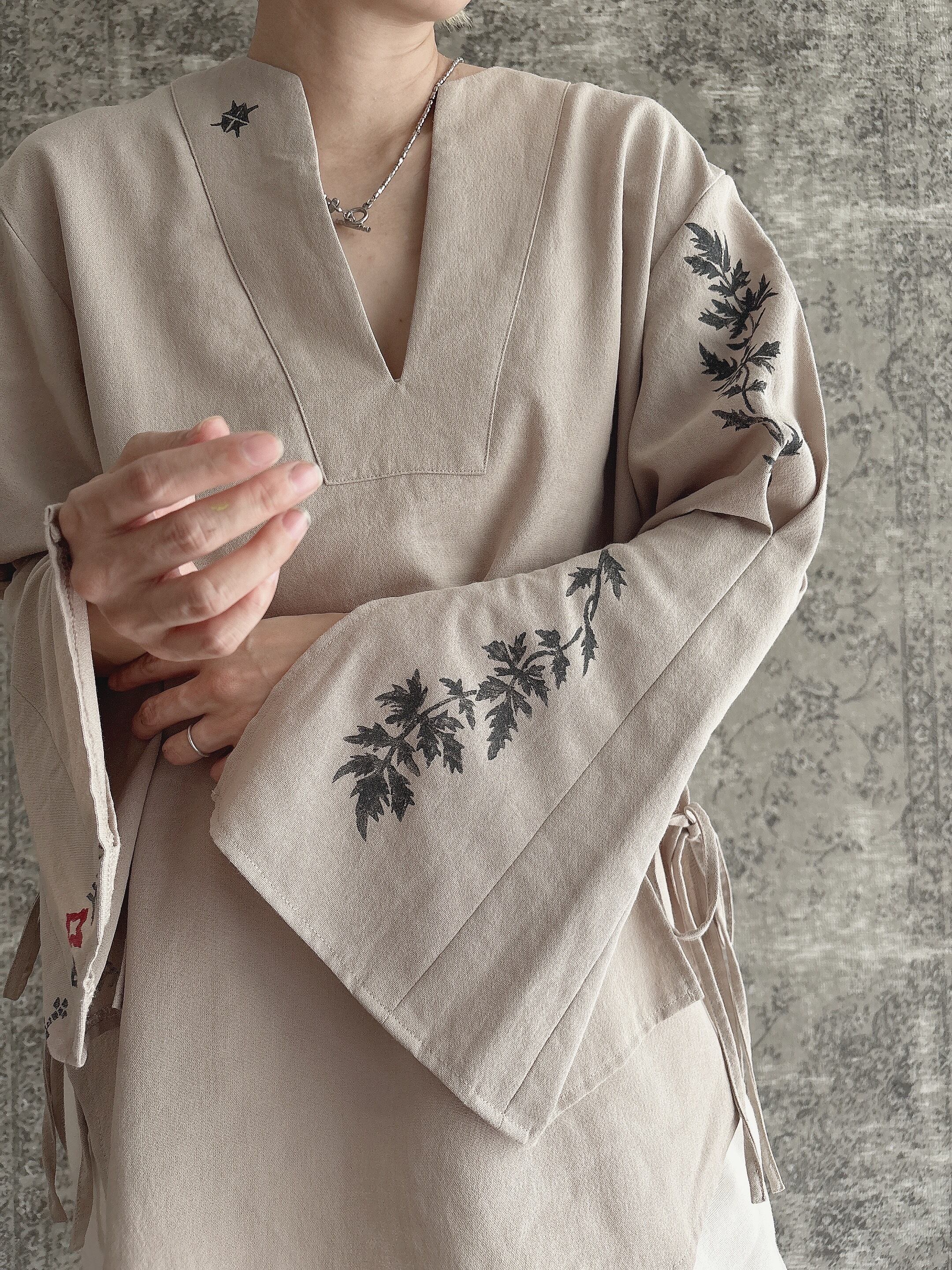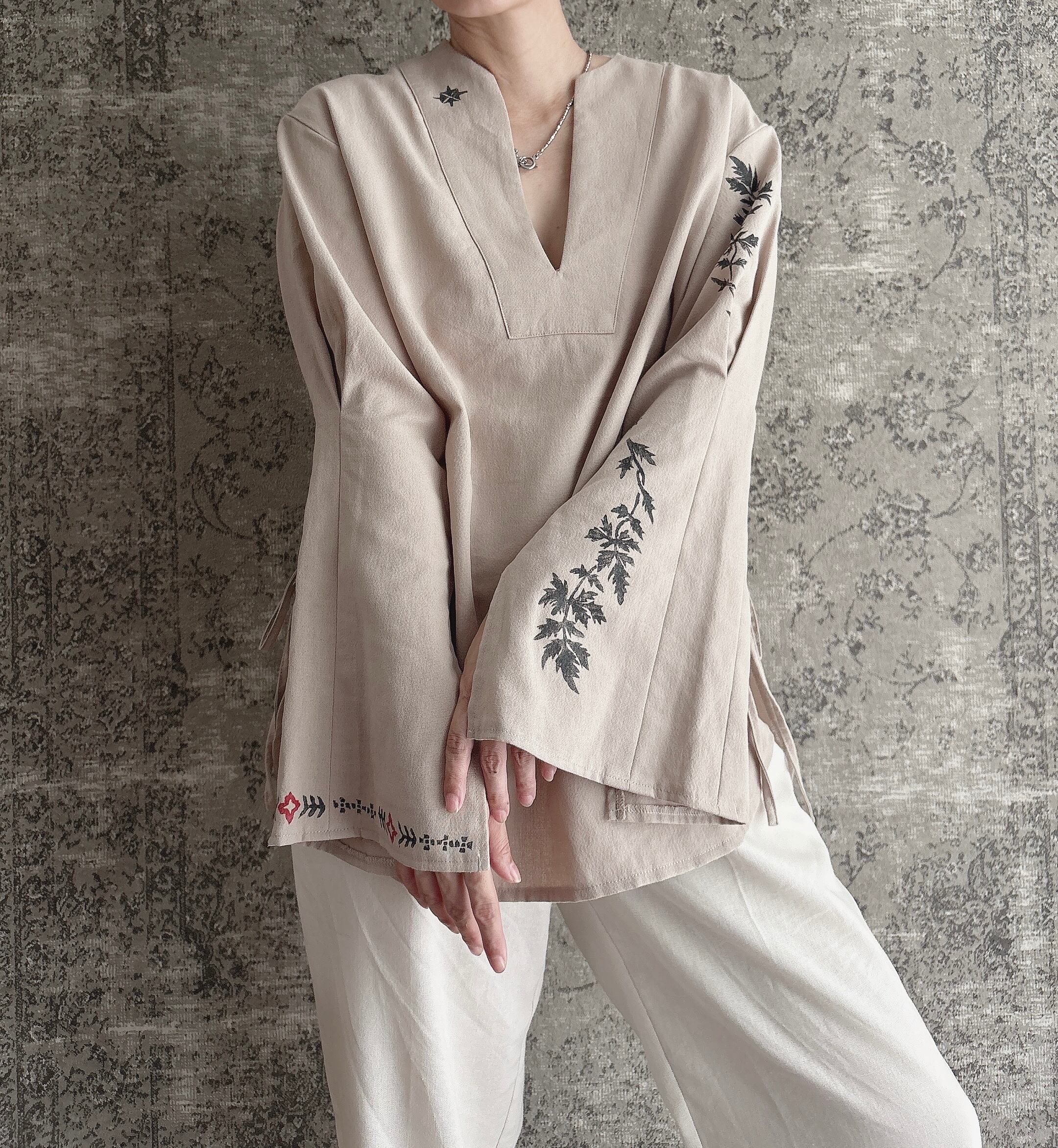 ブロックプリント 月の満ち欠け ハヂチ ブラウス スキッパー ブラウス シャツ カフタン