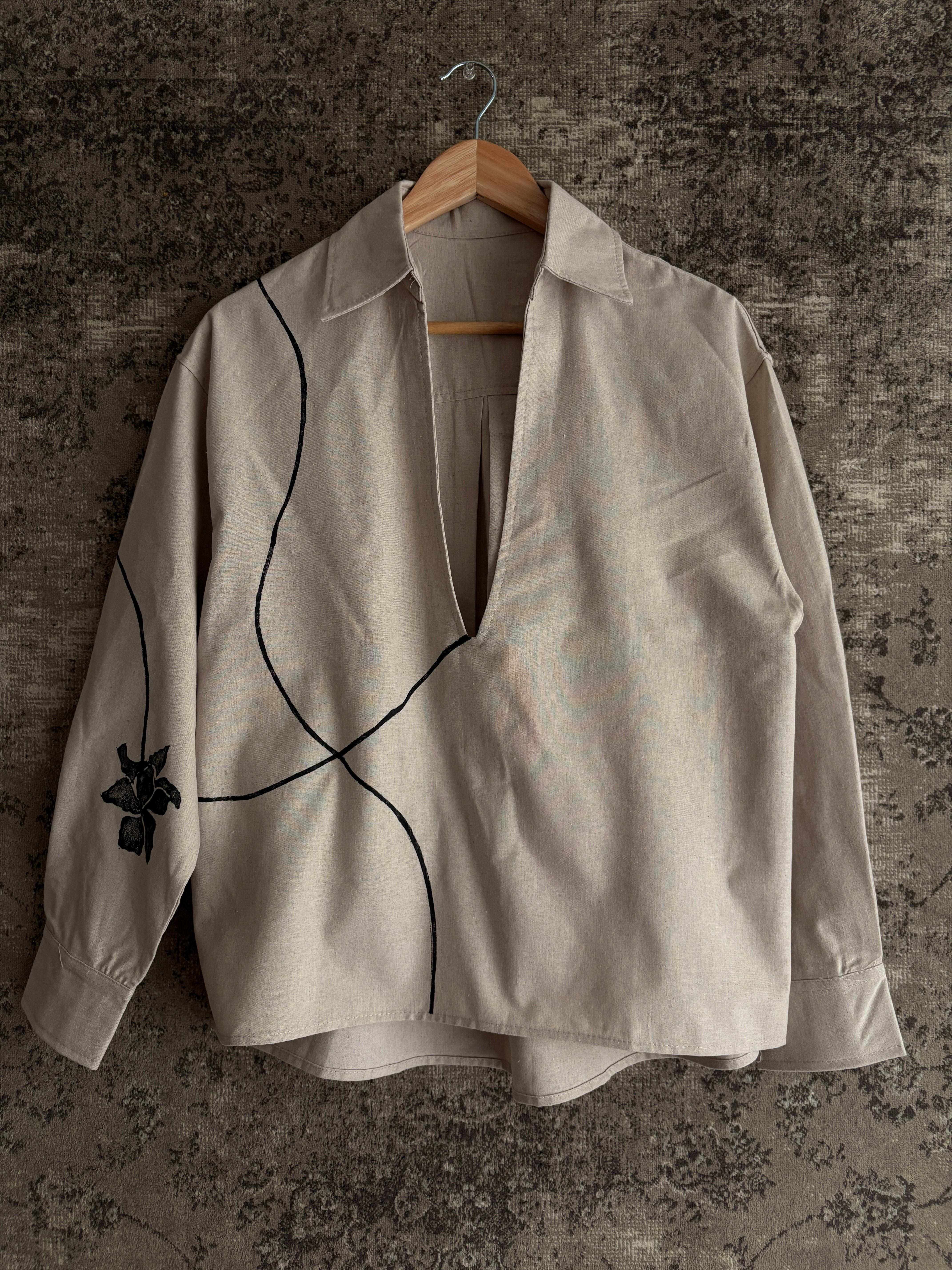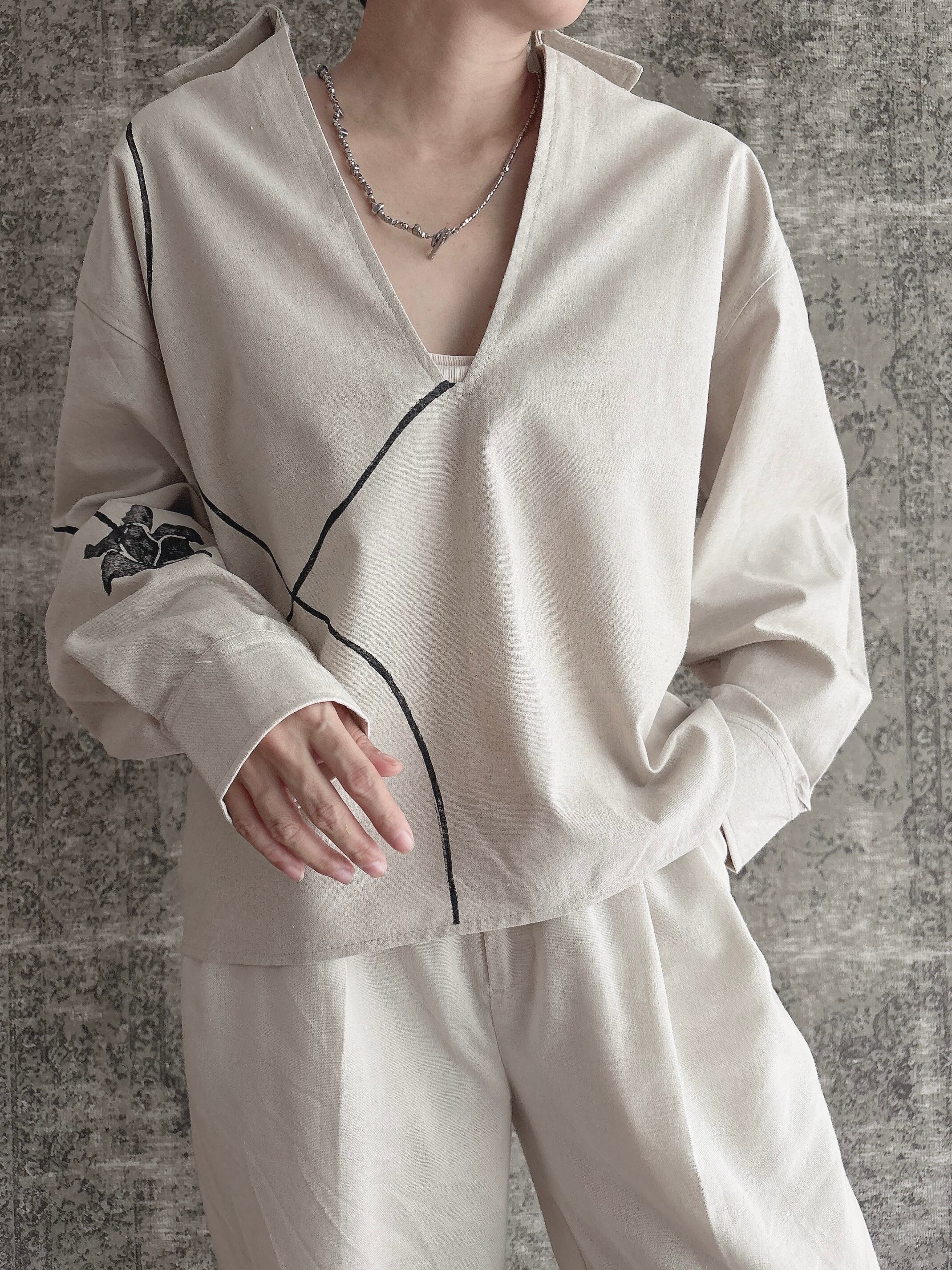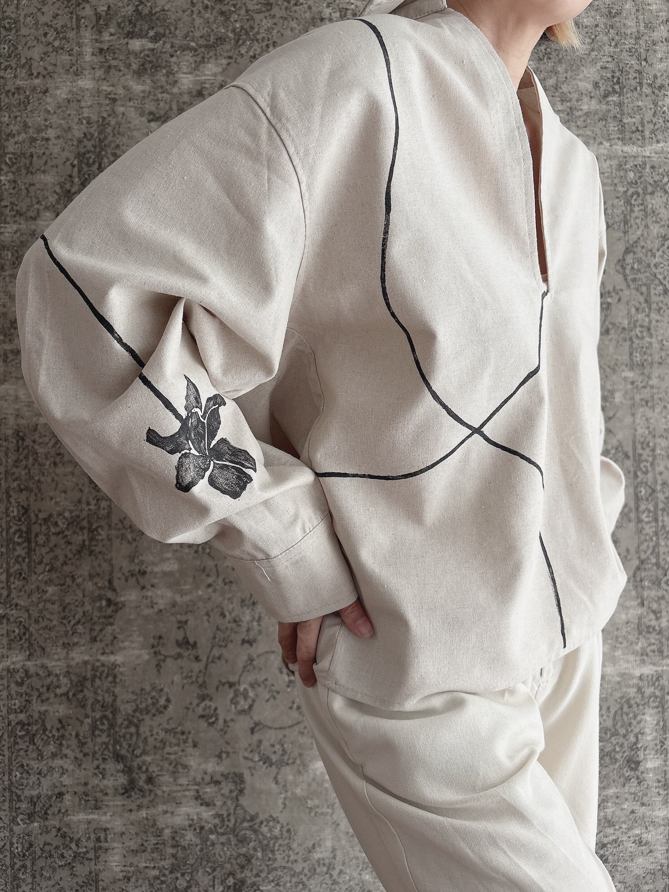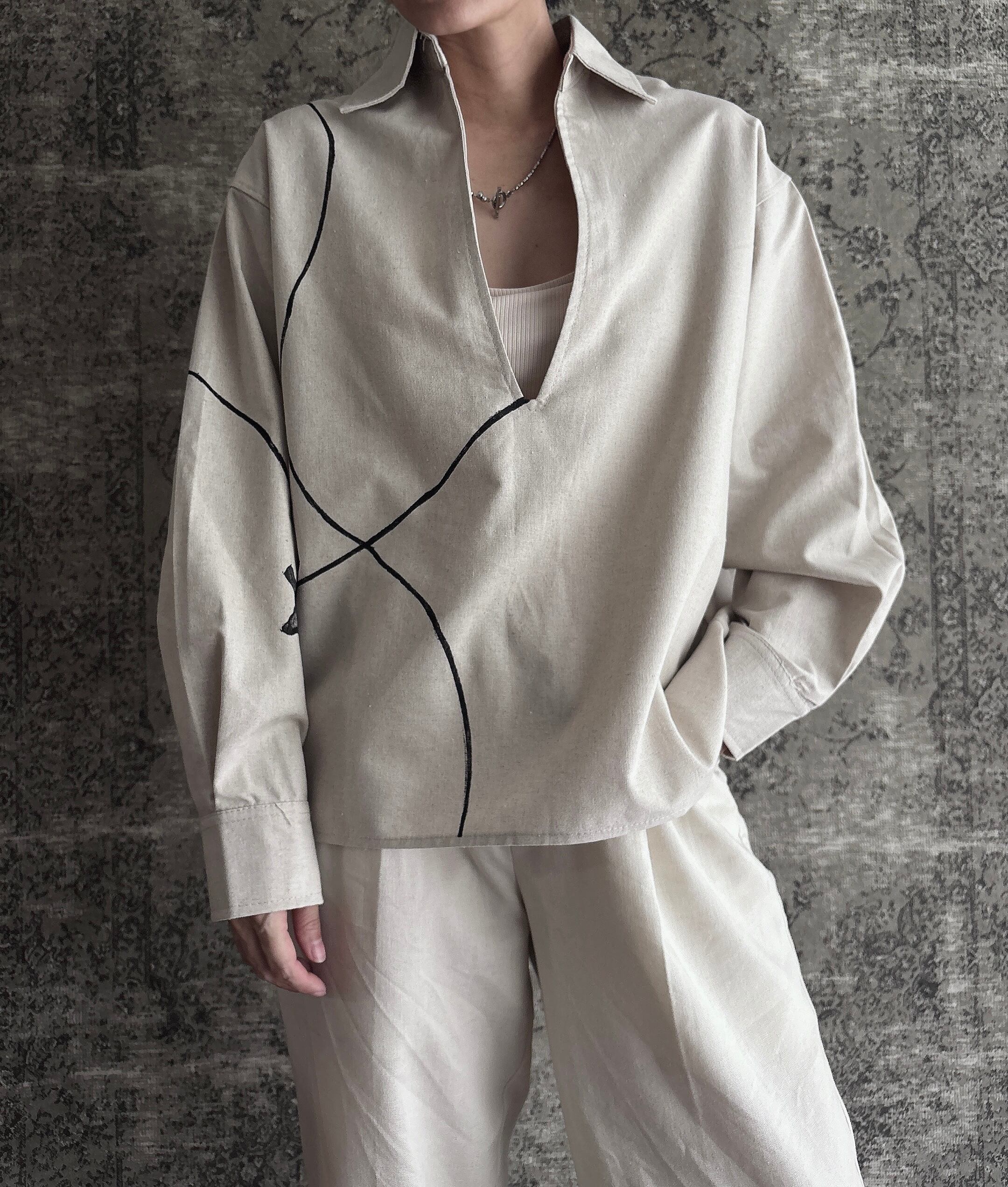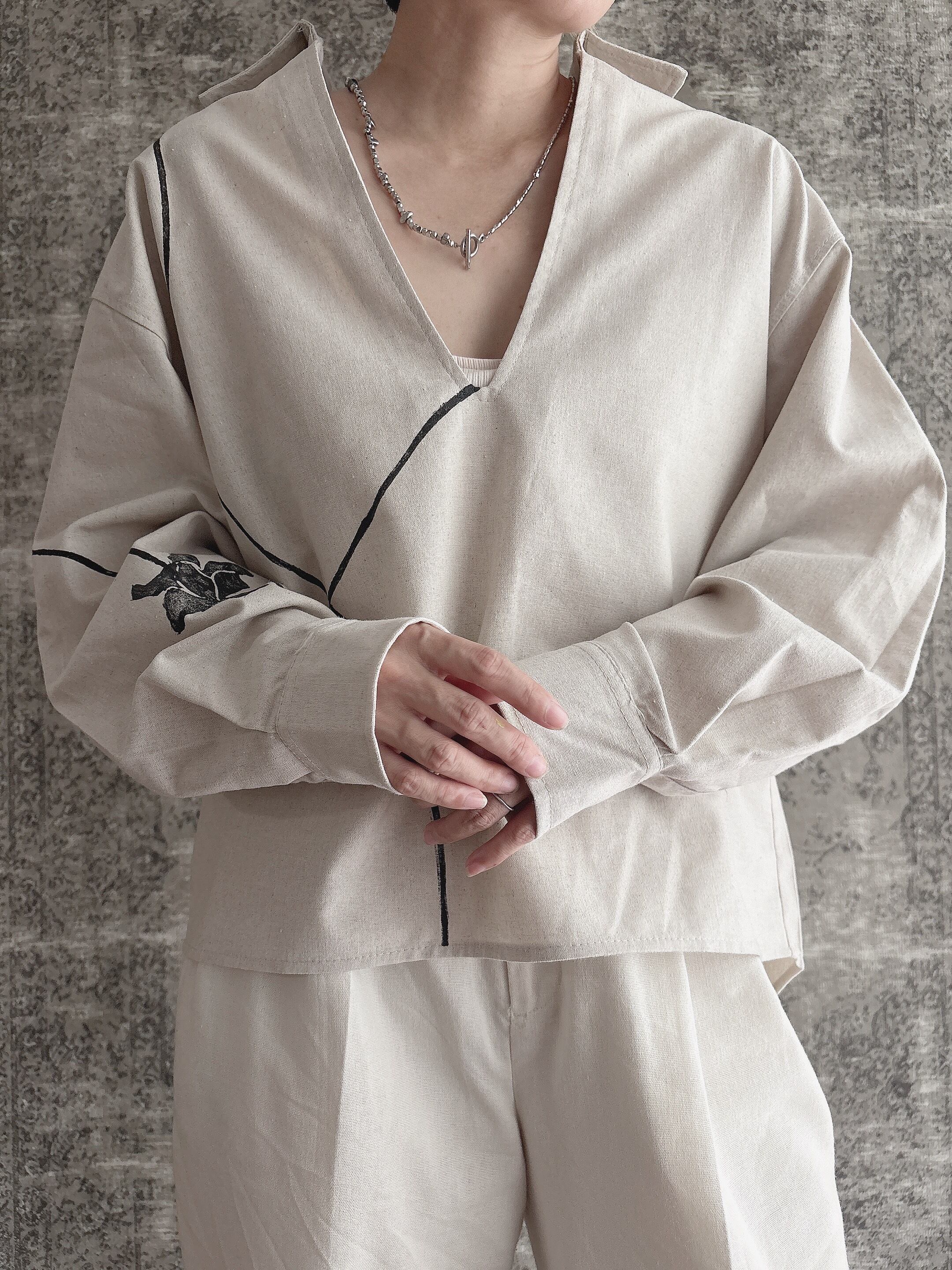 ブロックプリント 月の満ち欠け ハヂチ ブラウス スキッパー ブラウス シャツ カフタン