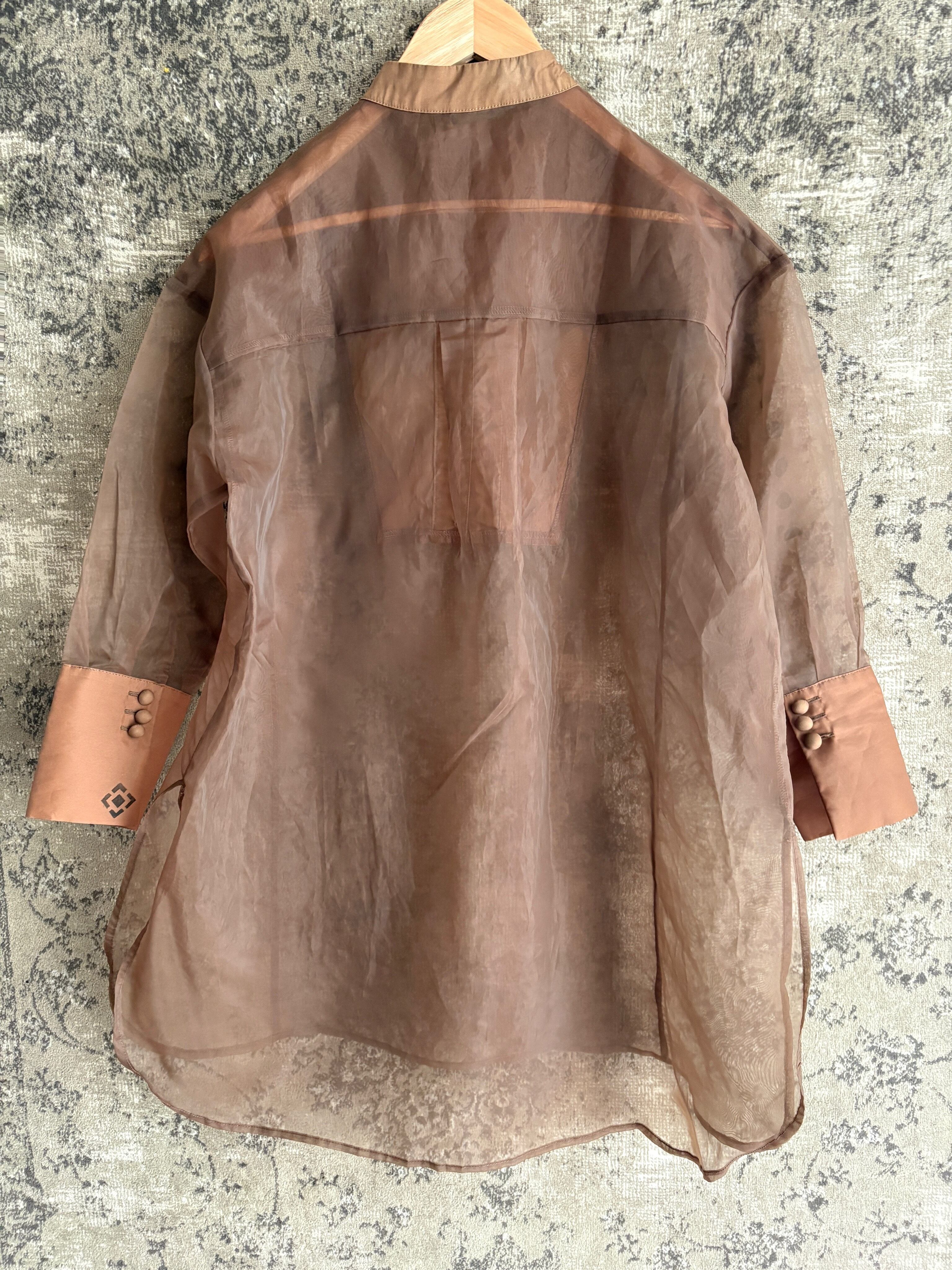 ブロックプリント 月の満ち欠け ハヂチ ブラウス シースルー シアーシャツ ブラウス