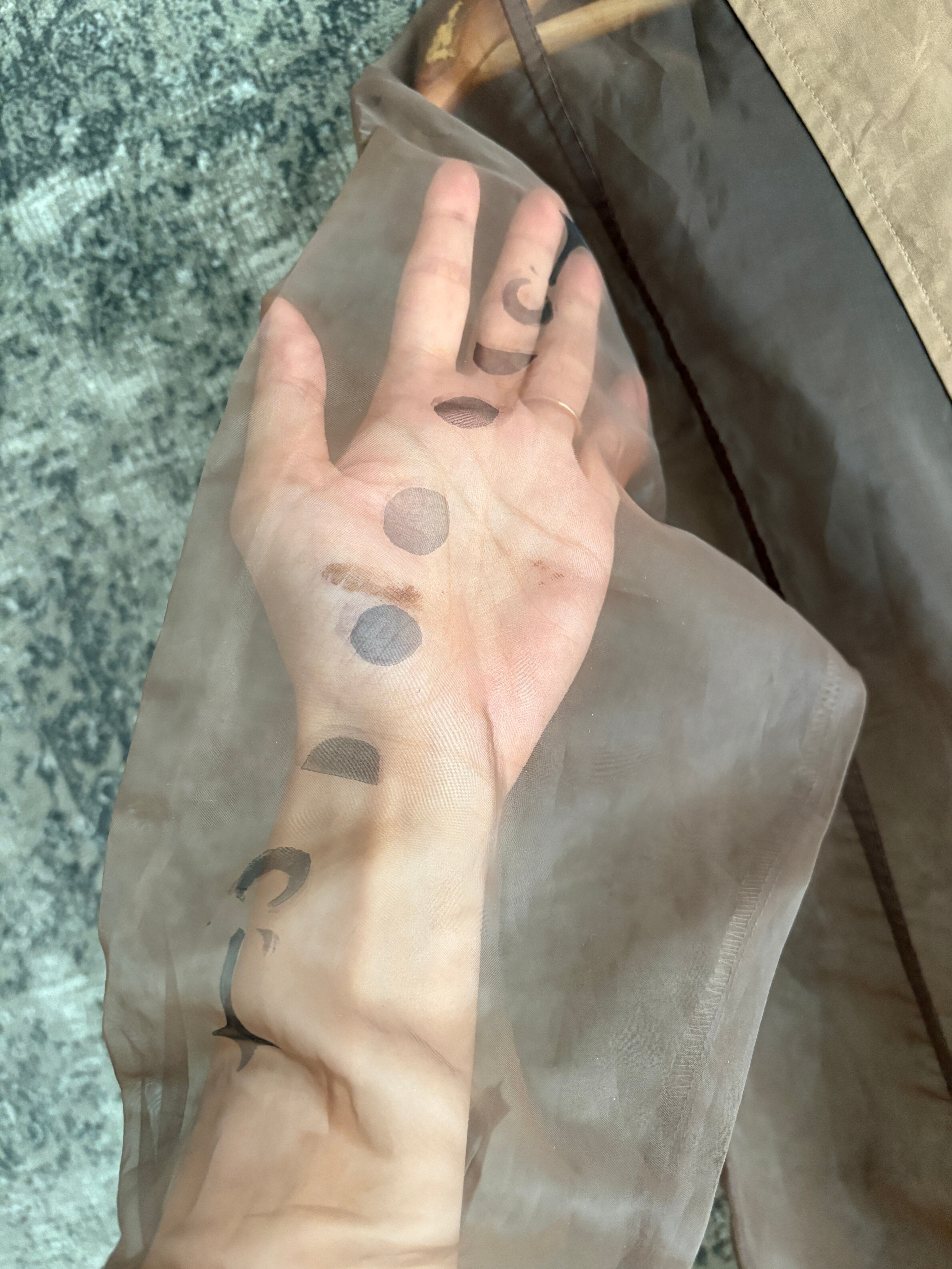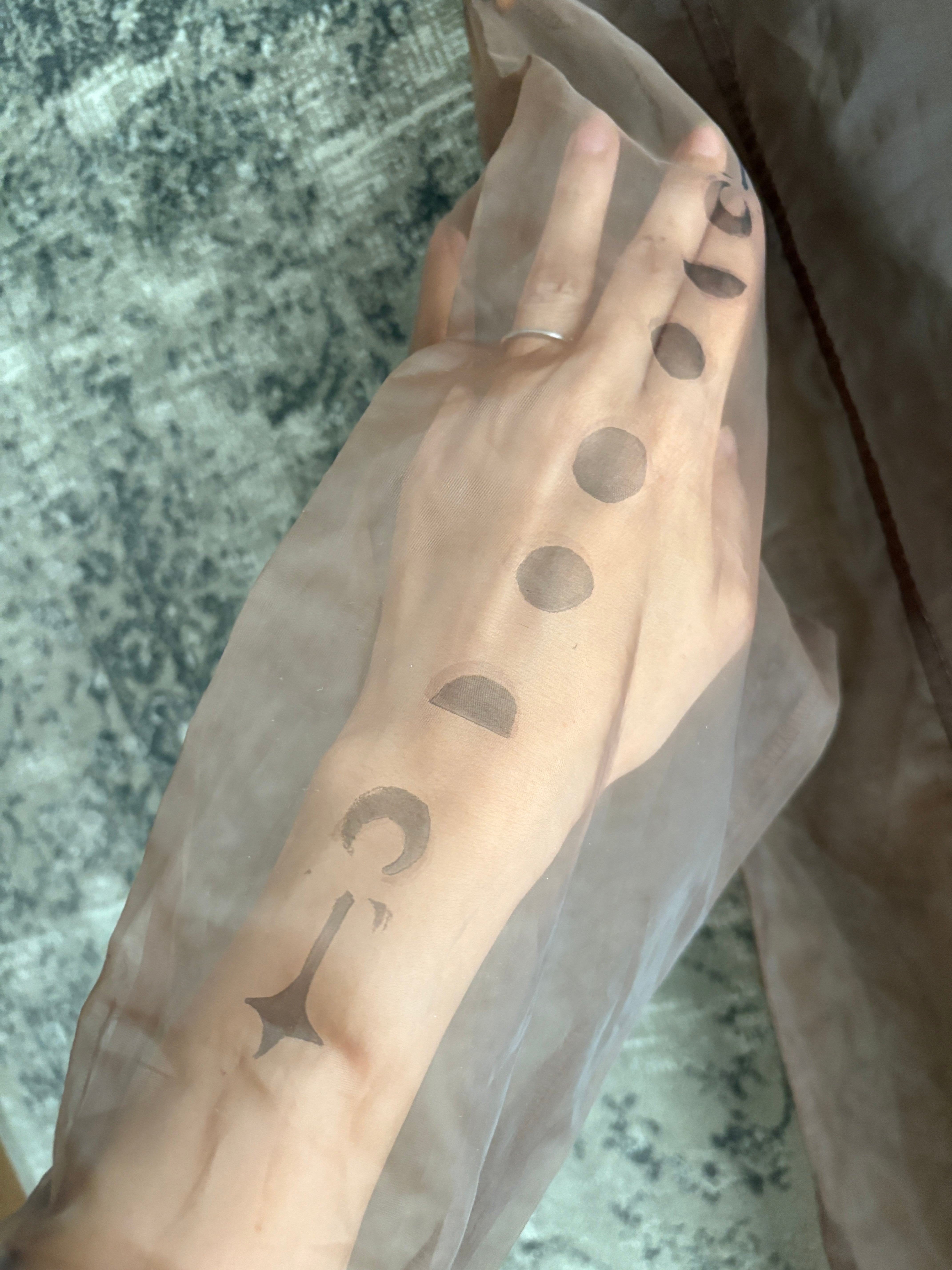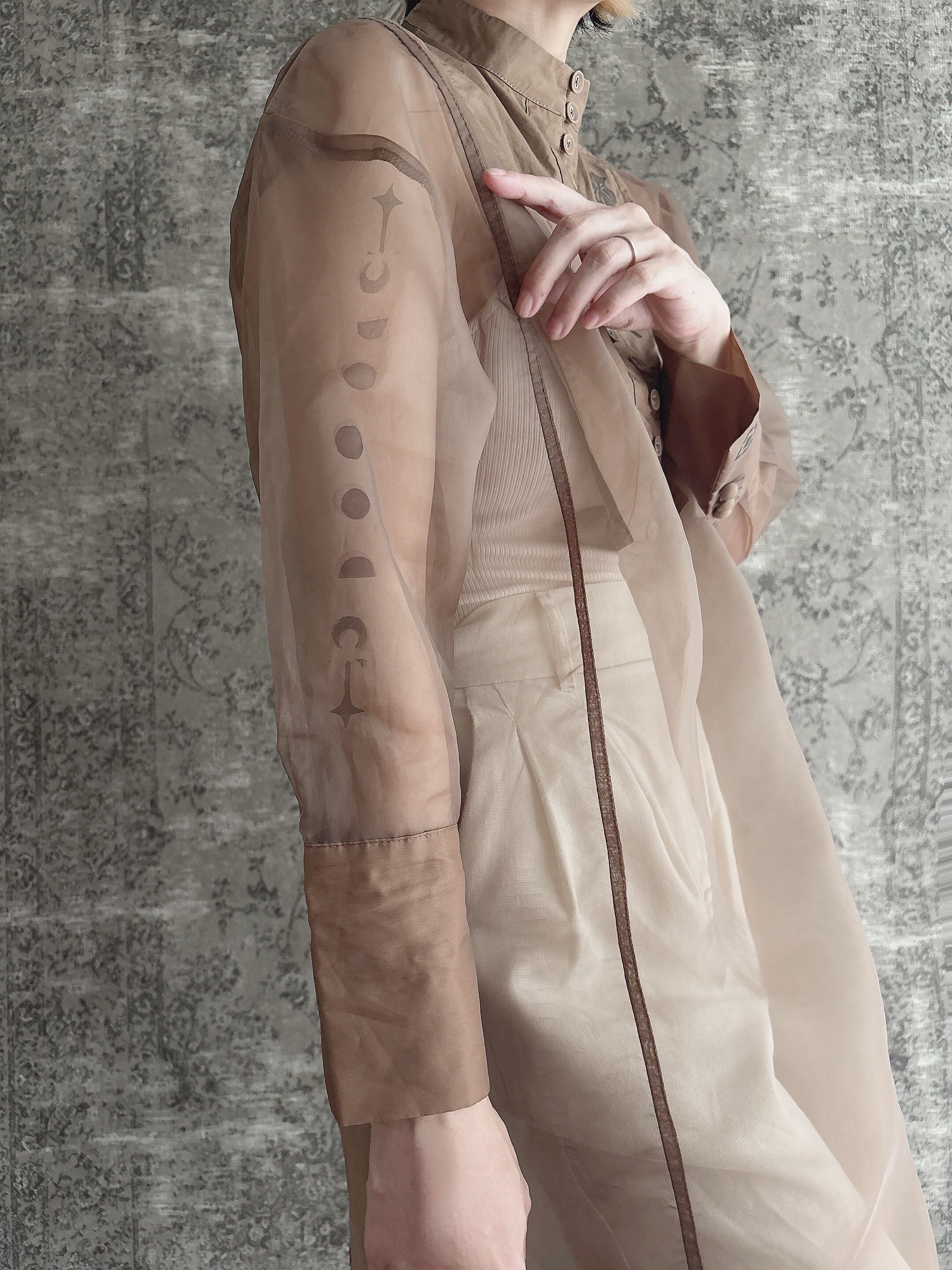 袖に月の満ち欠け、シースルーに版を押す事でタトゥーのような感じに