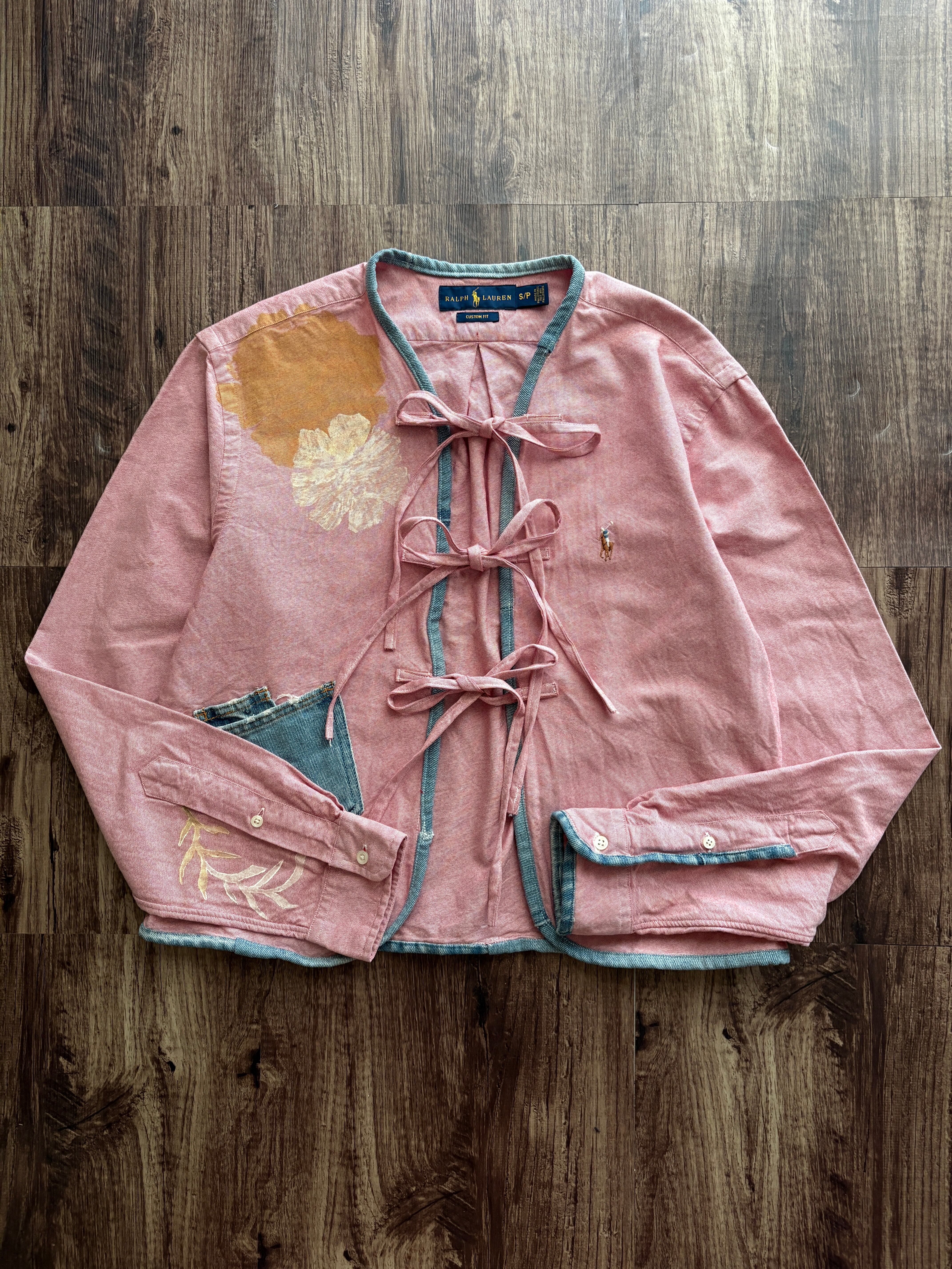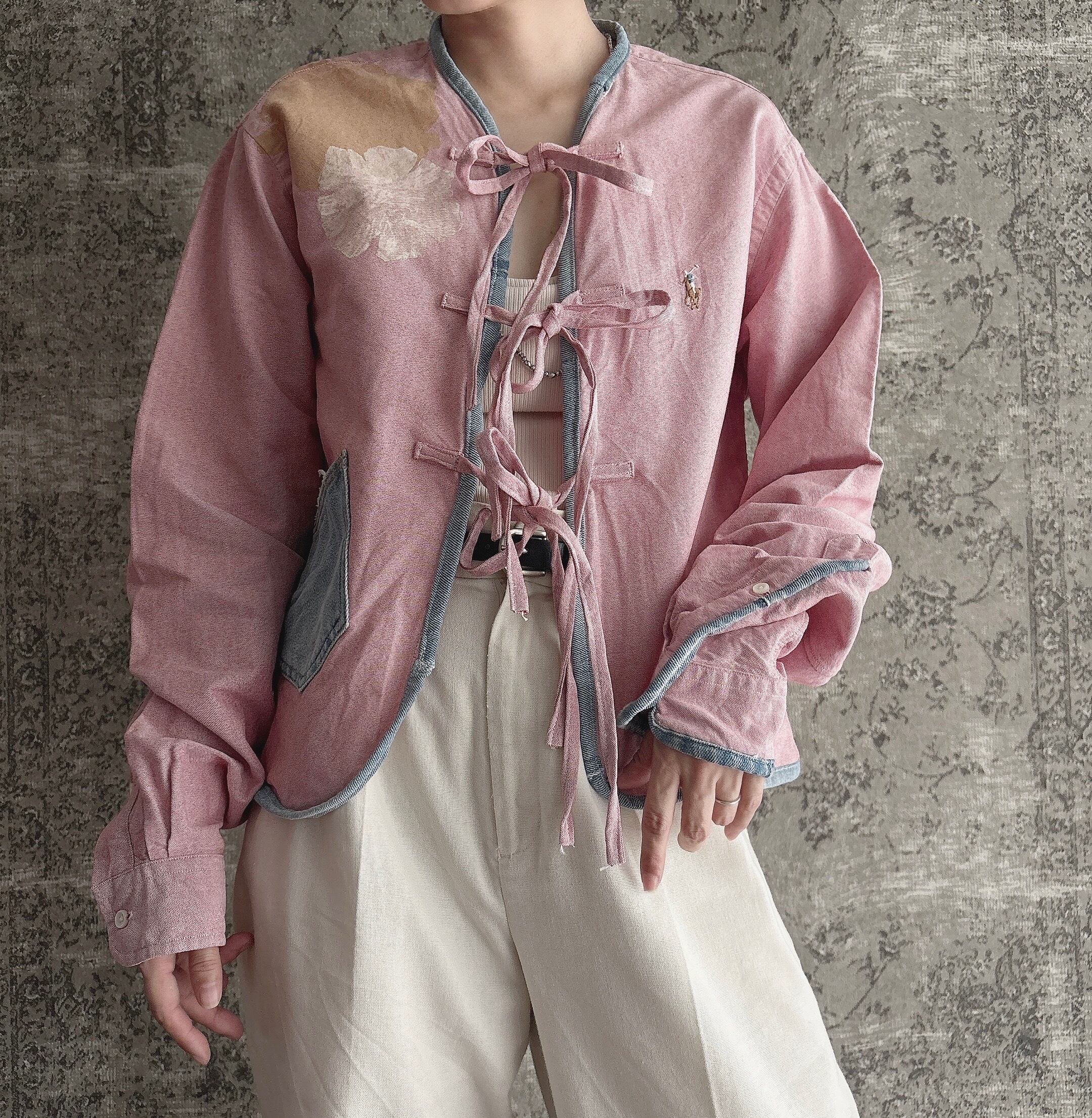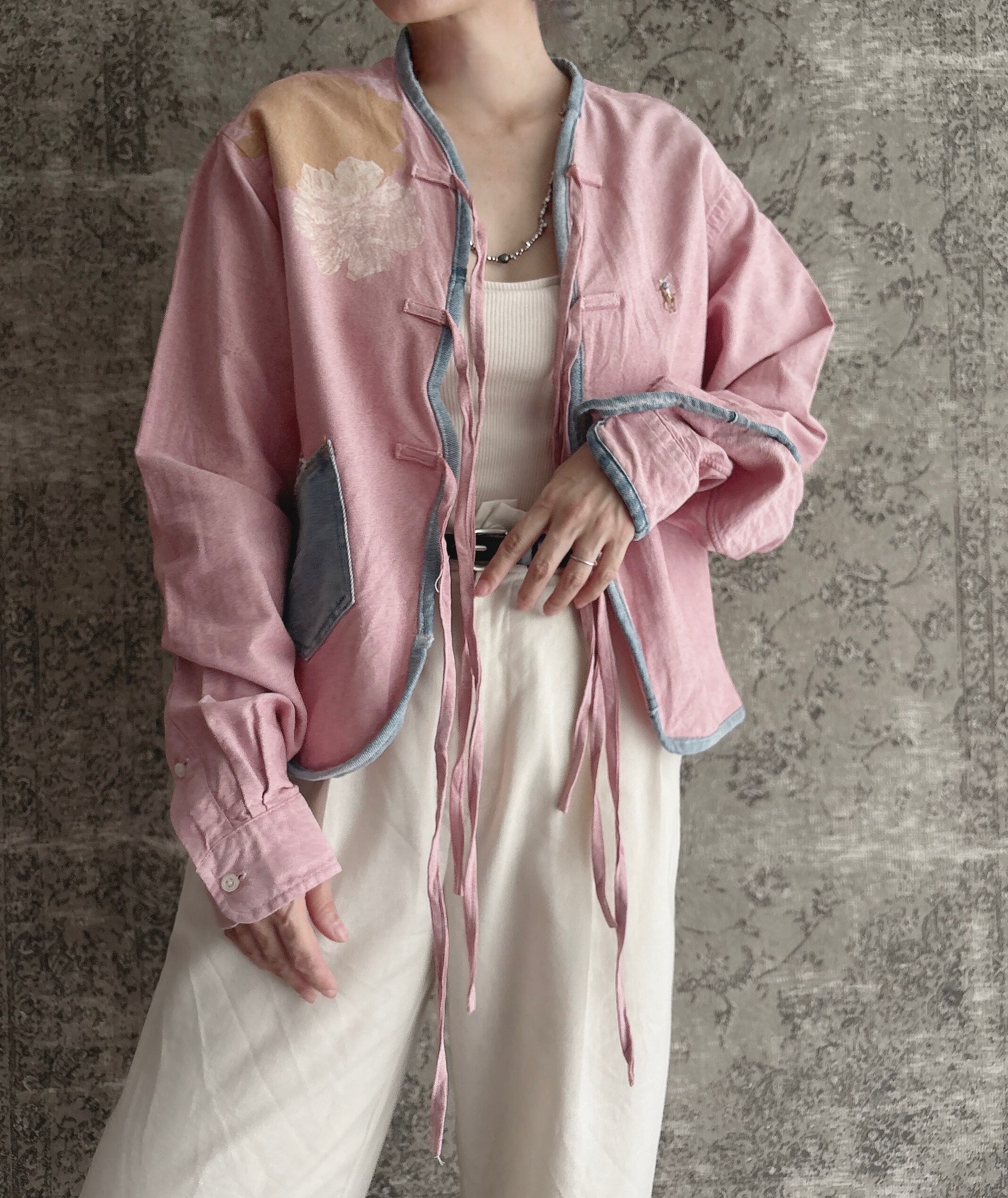 羽織り コットン レース 花 ブロックプリント シャツ ブラウス