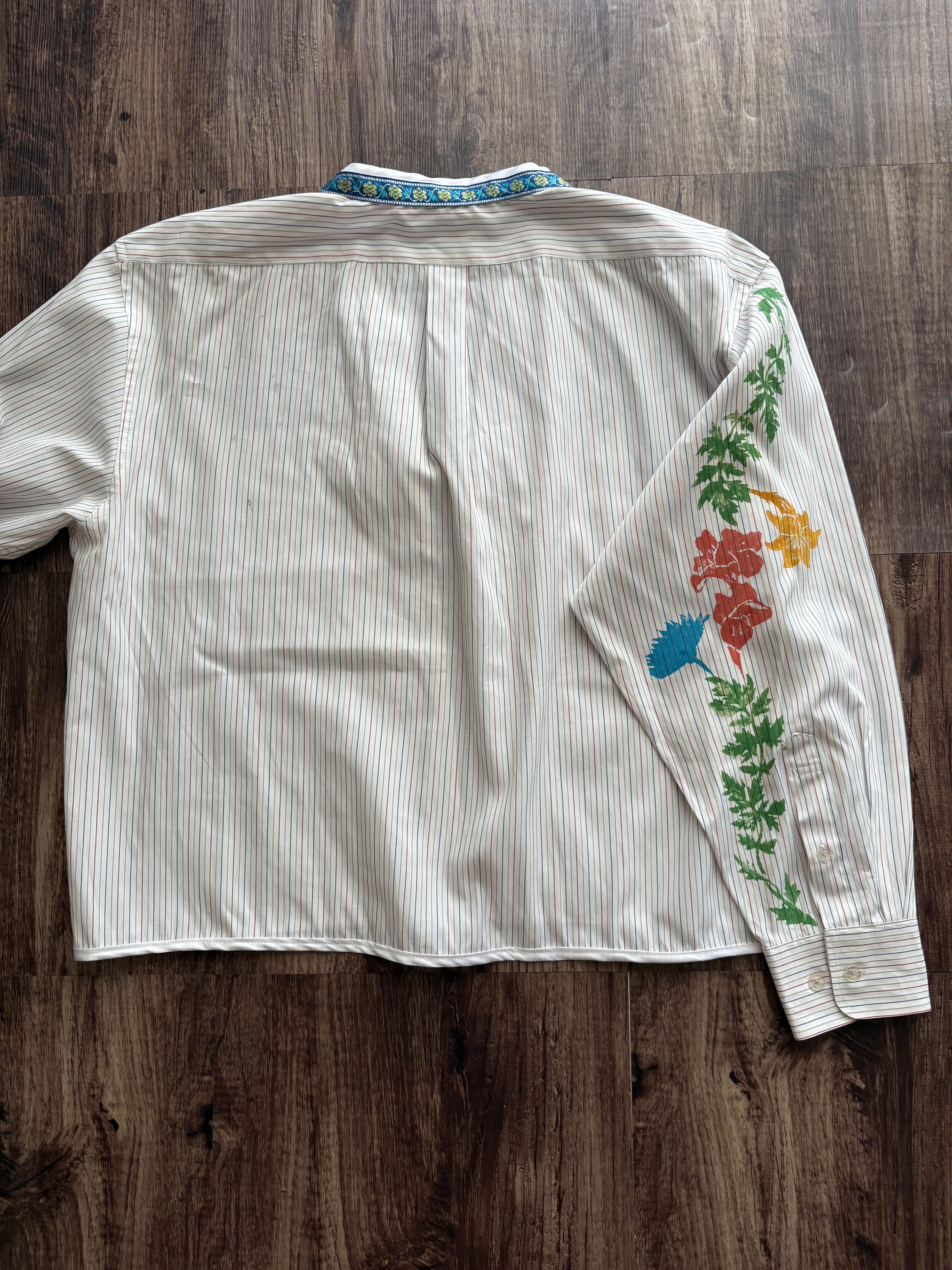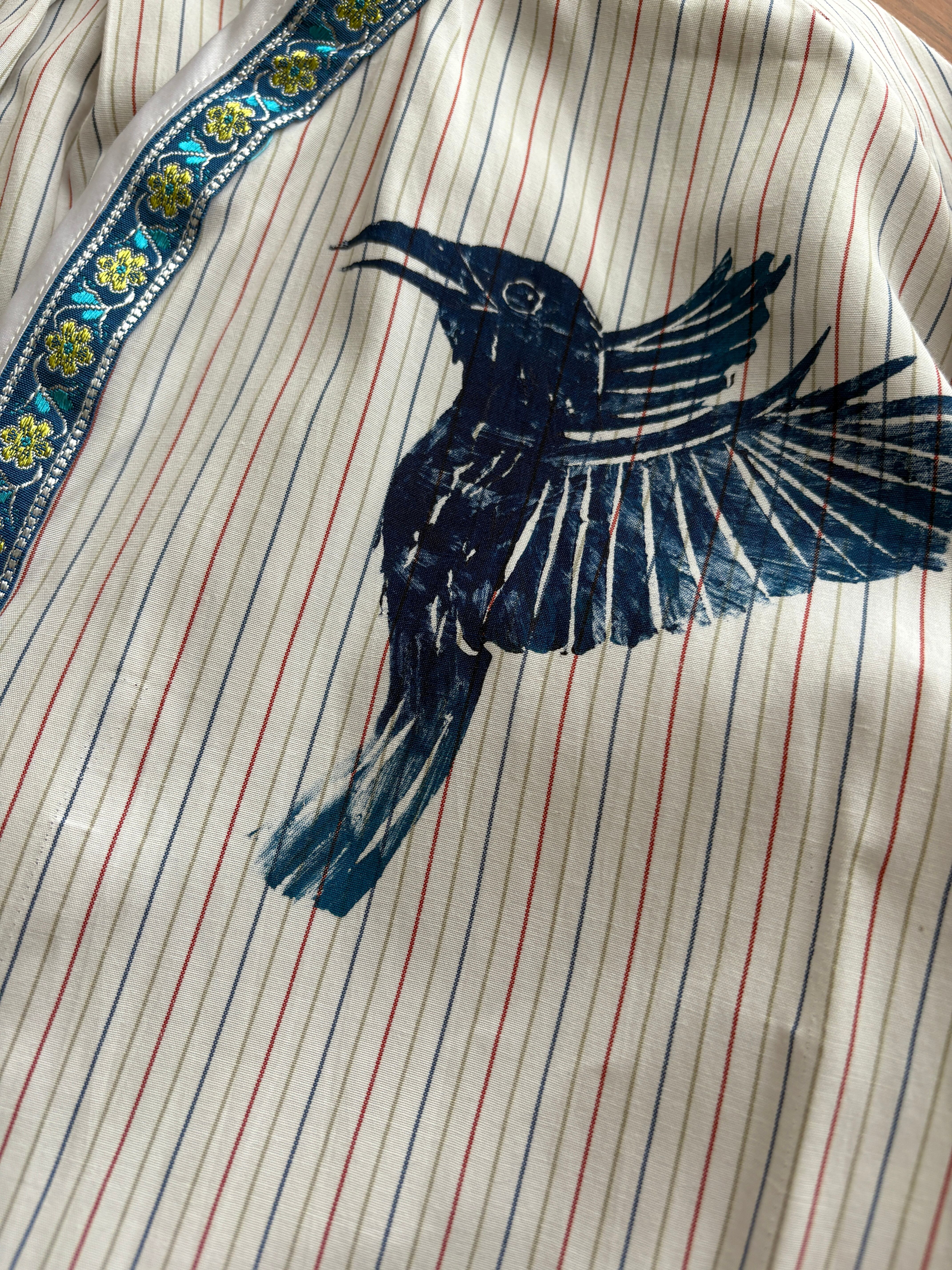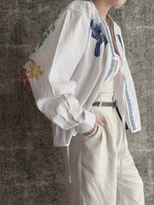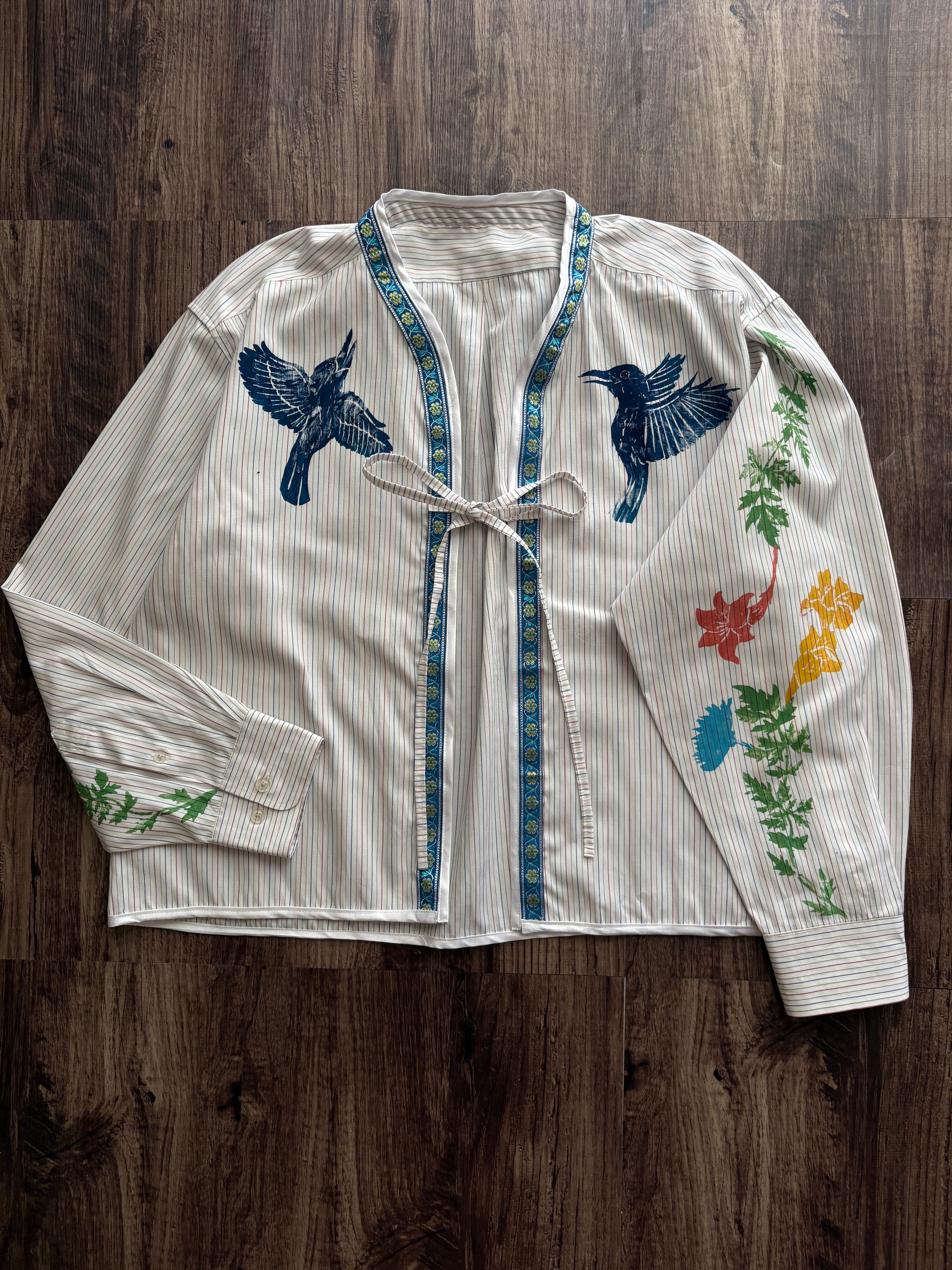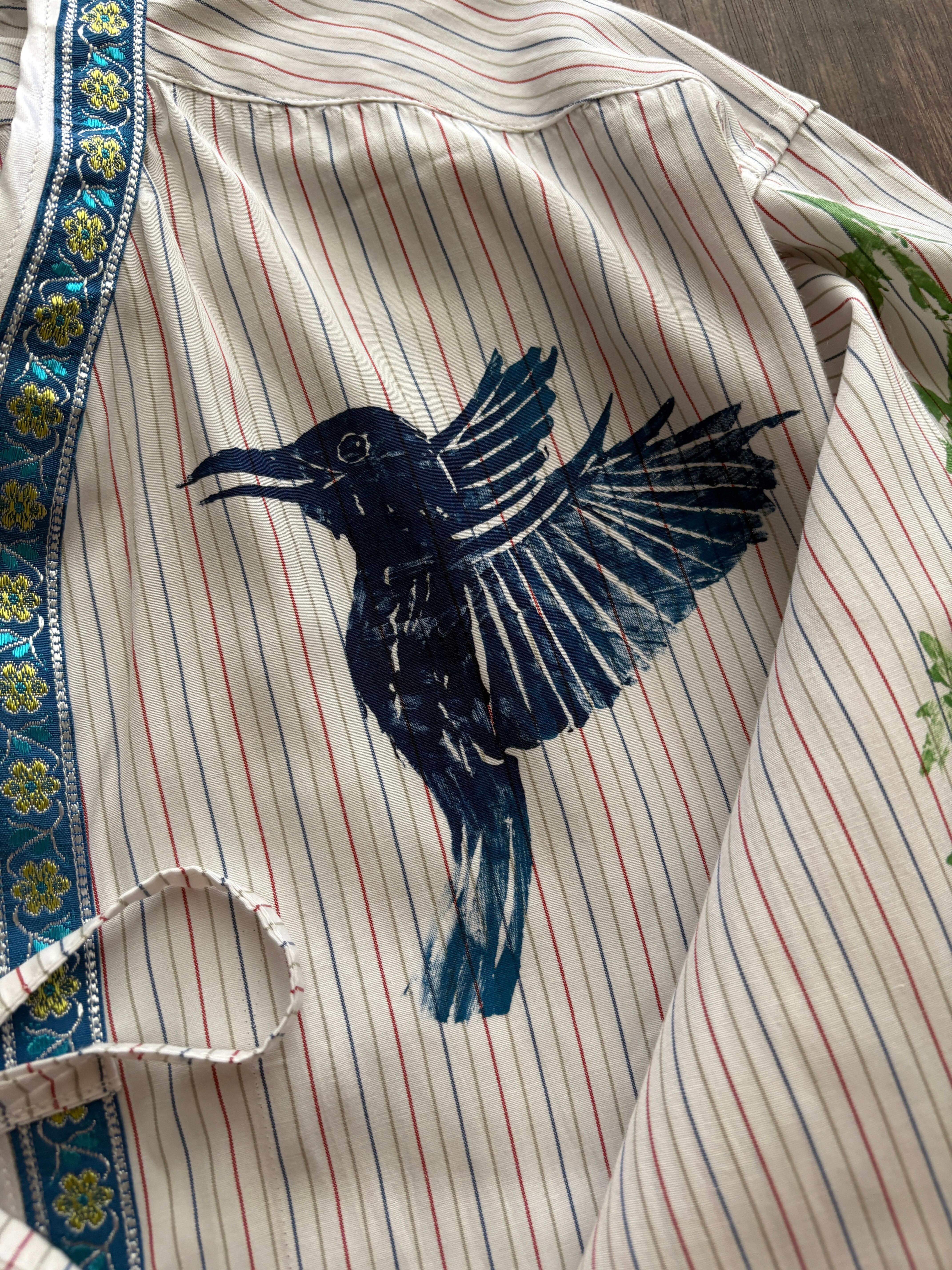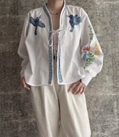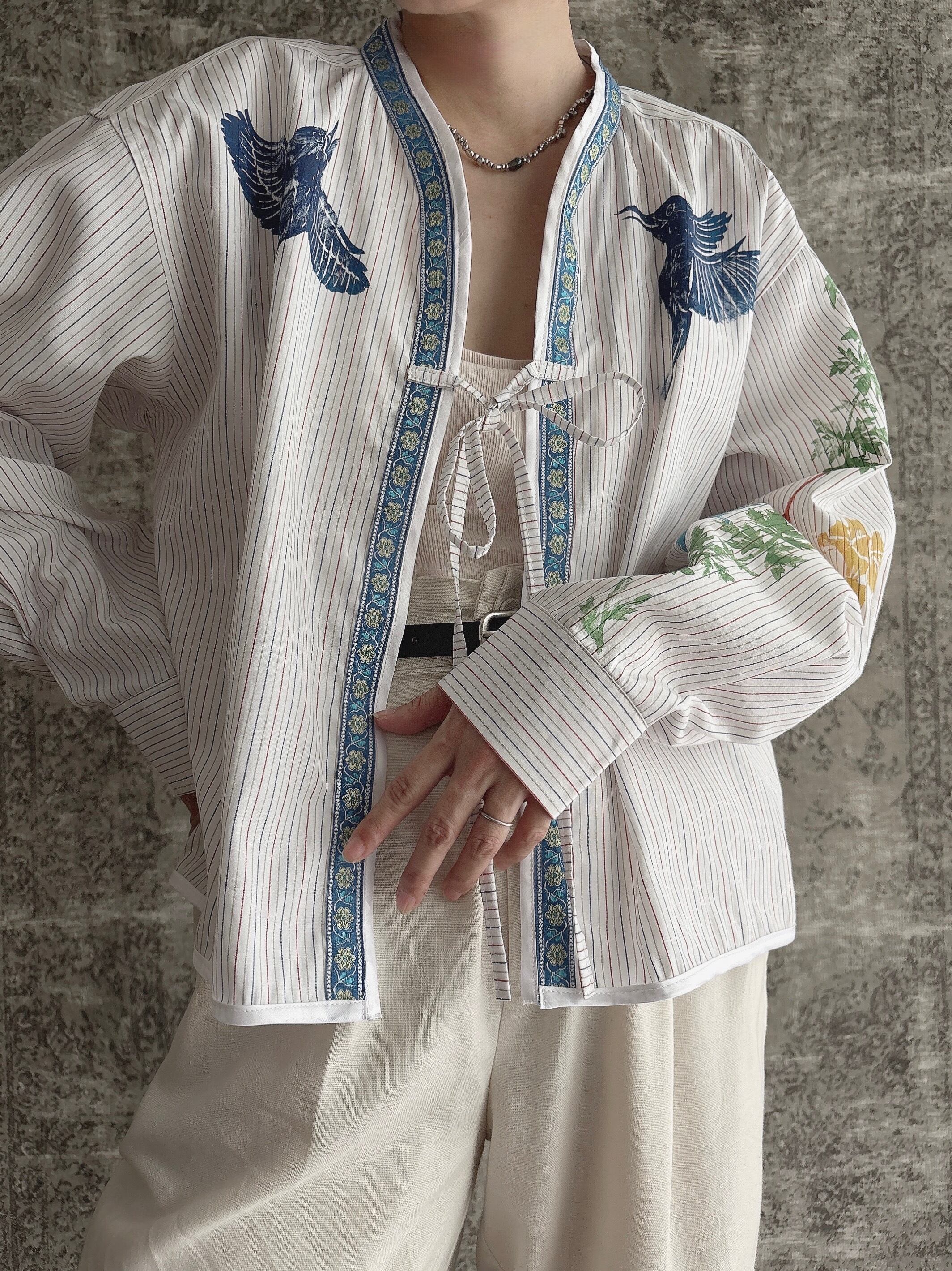 羽織り コットン レース 鳥 花 ブロックプリント シャツ ブラウス