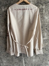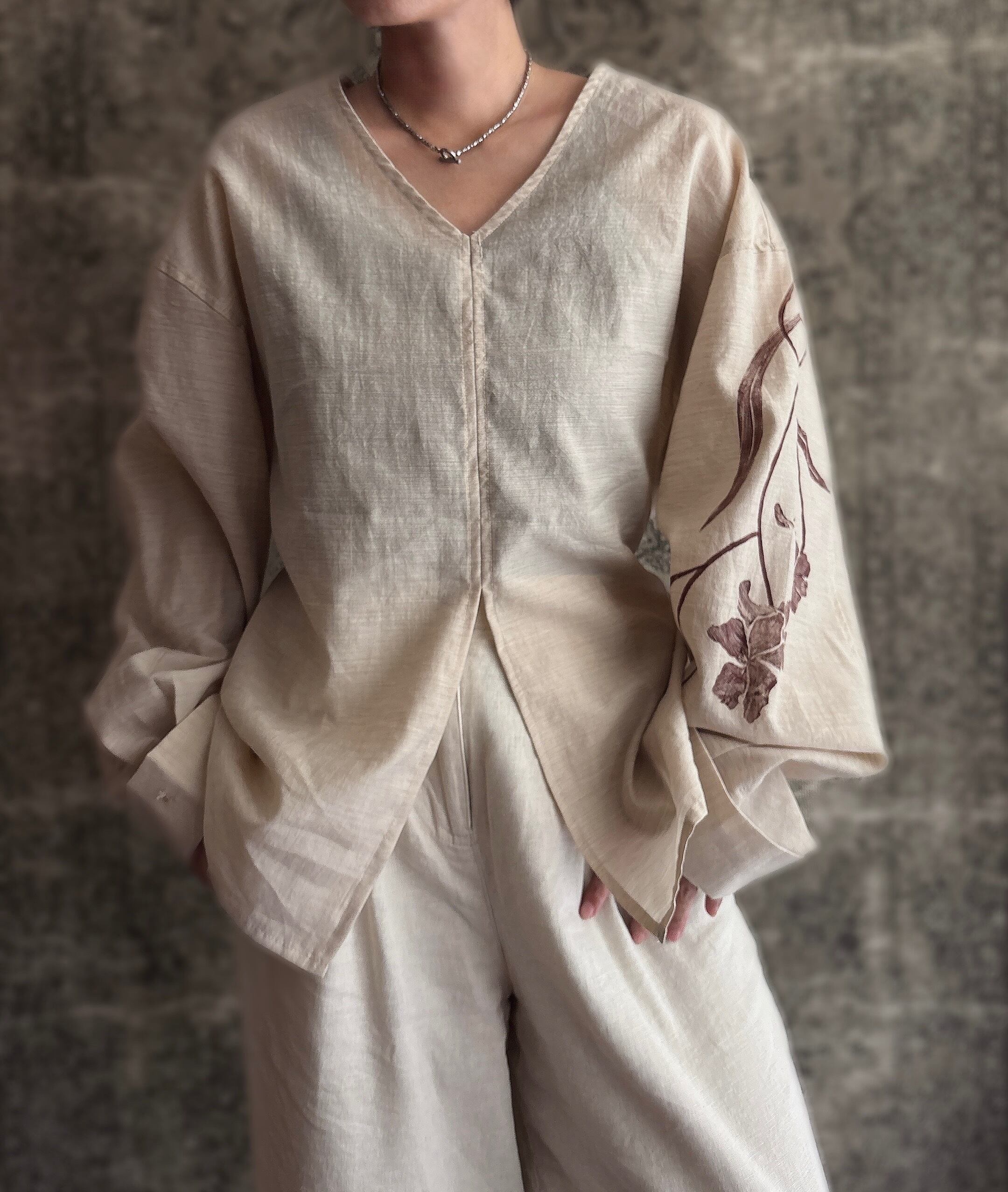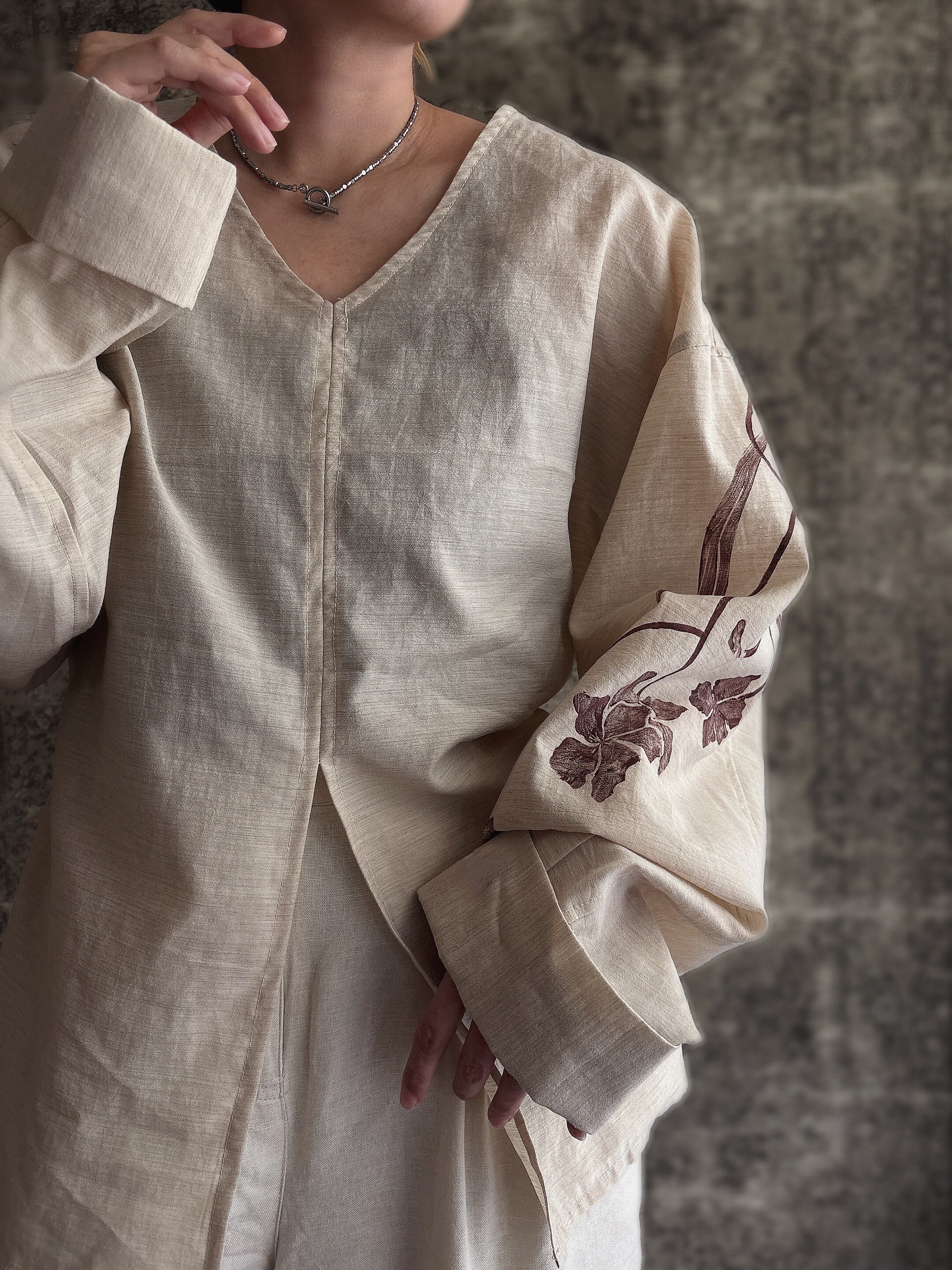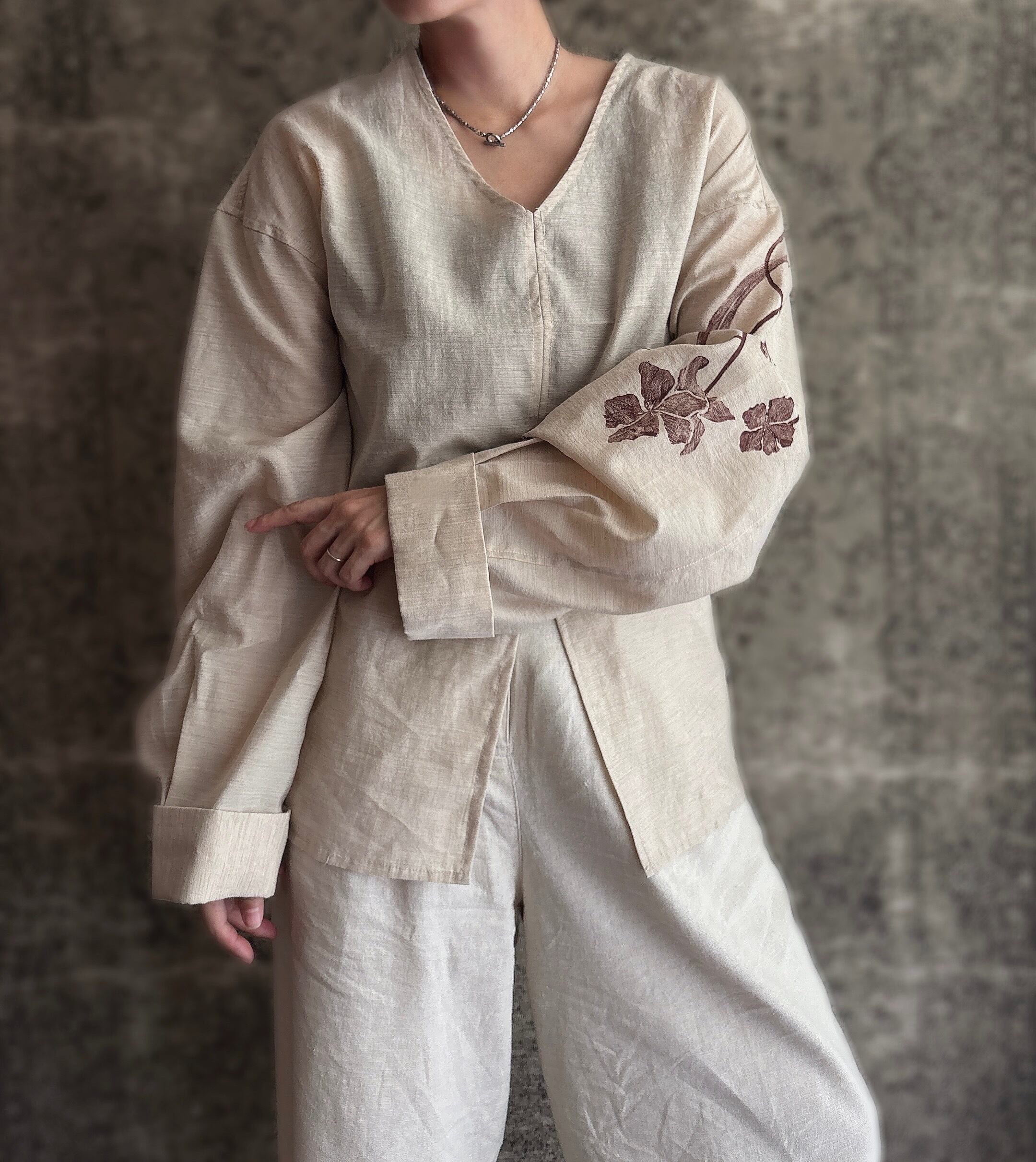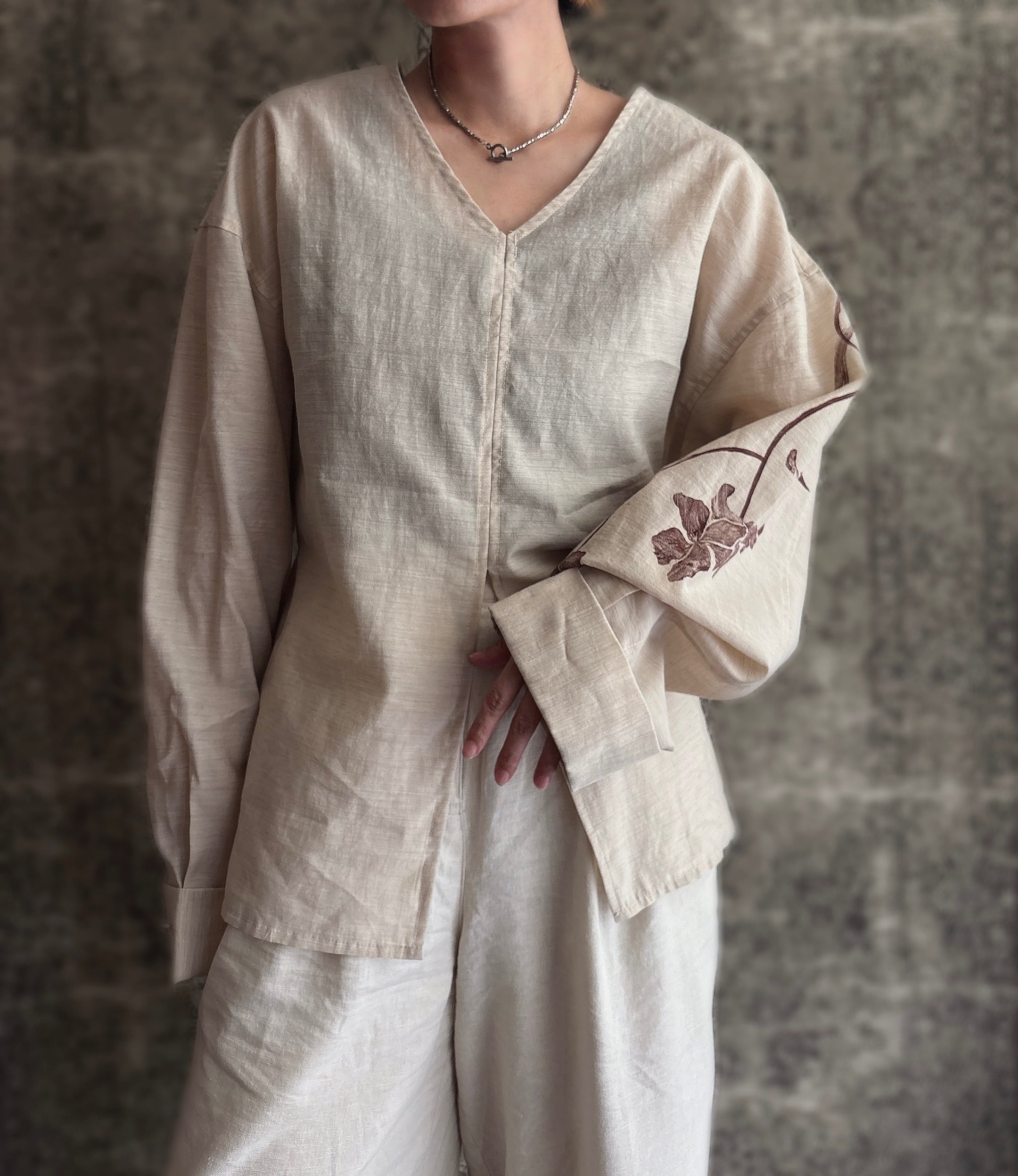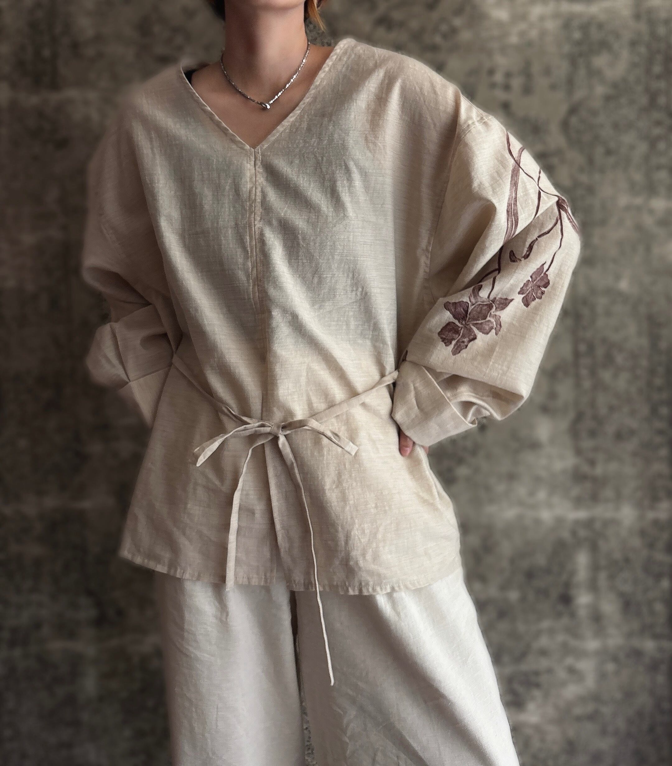 全て手彫りの版を服にハンドプリントされたデザインになります