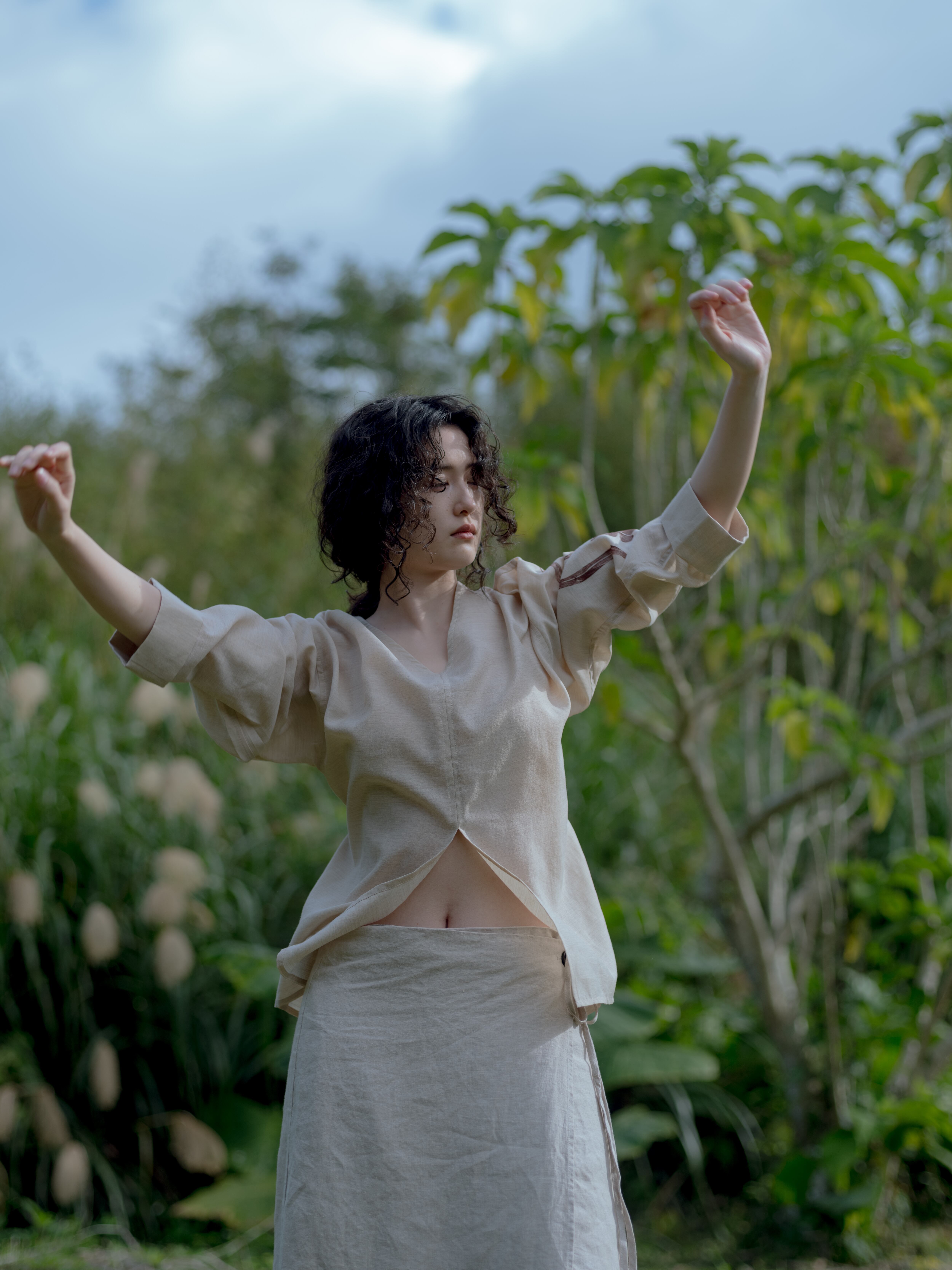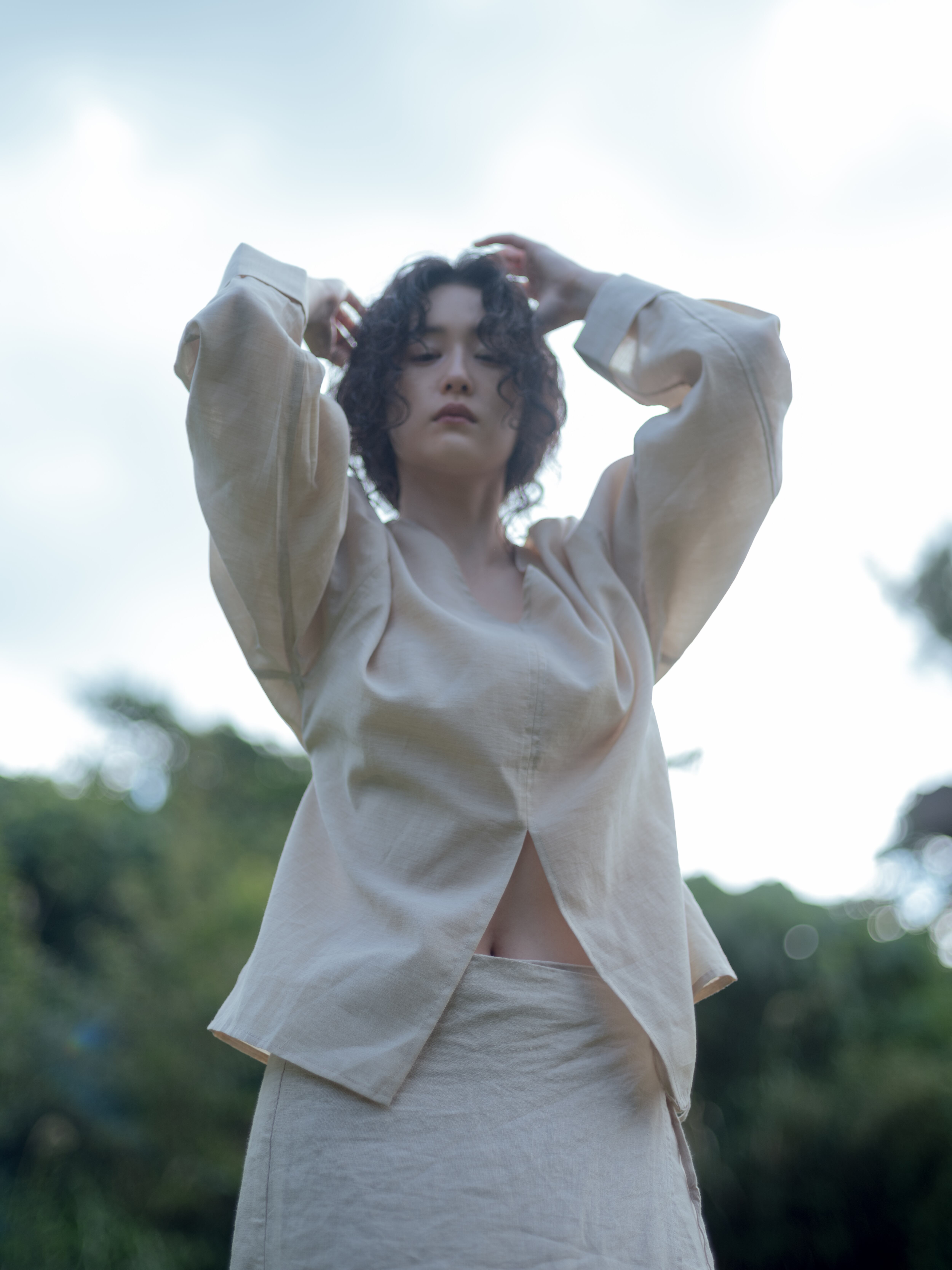 シャツ ブラウス スキッパー リボン ヒモ リネン シースルー