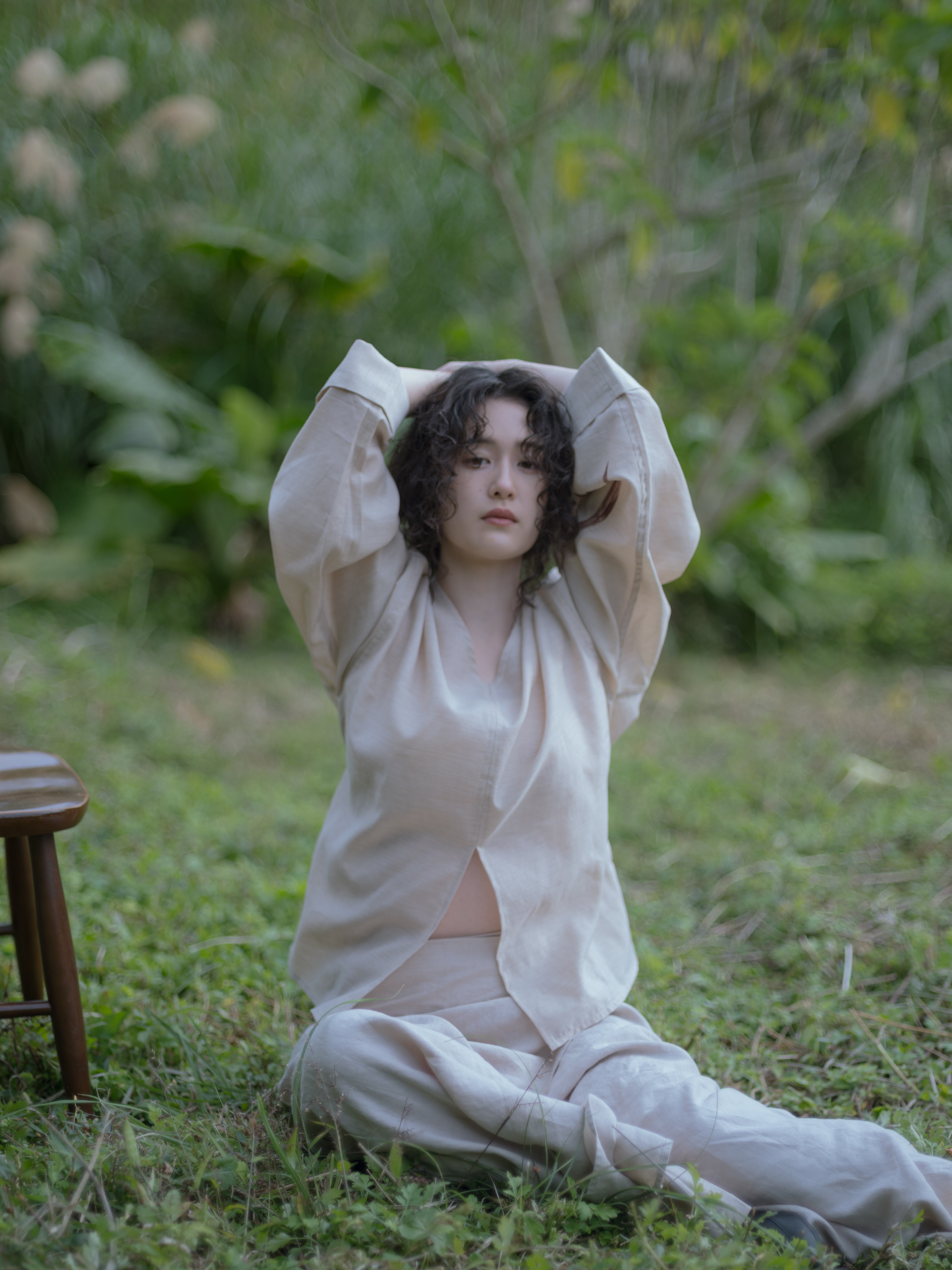 素材はレーヨンとリネンでサラッとして肌触りいいです