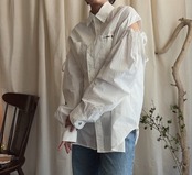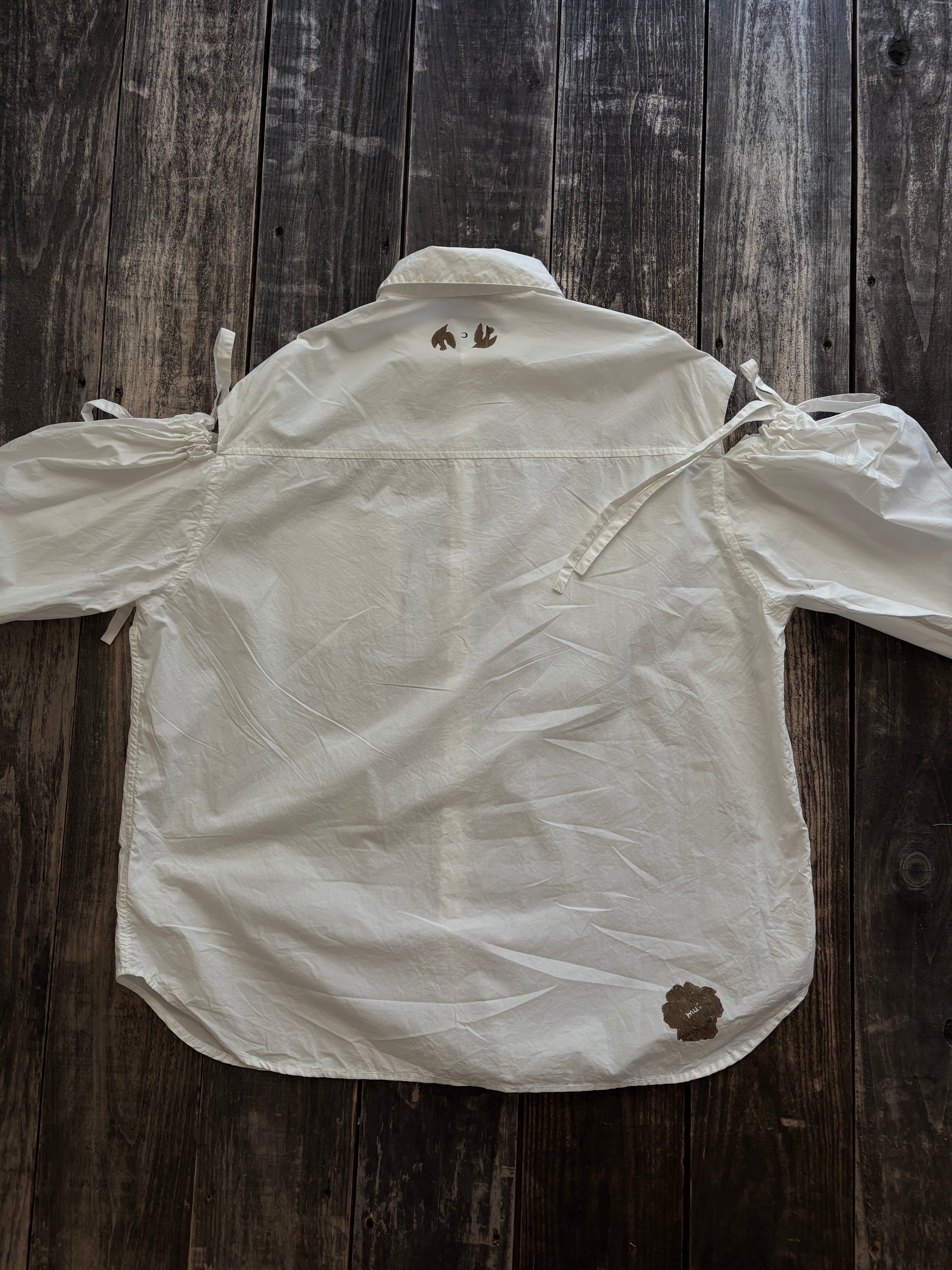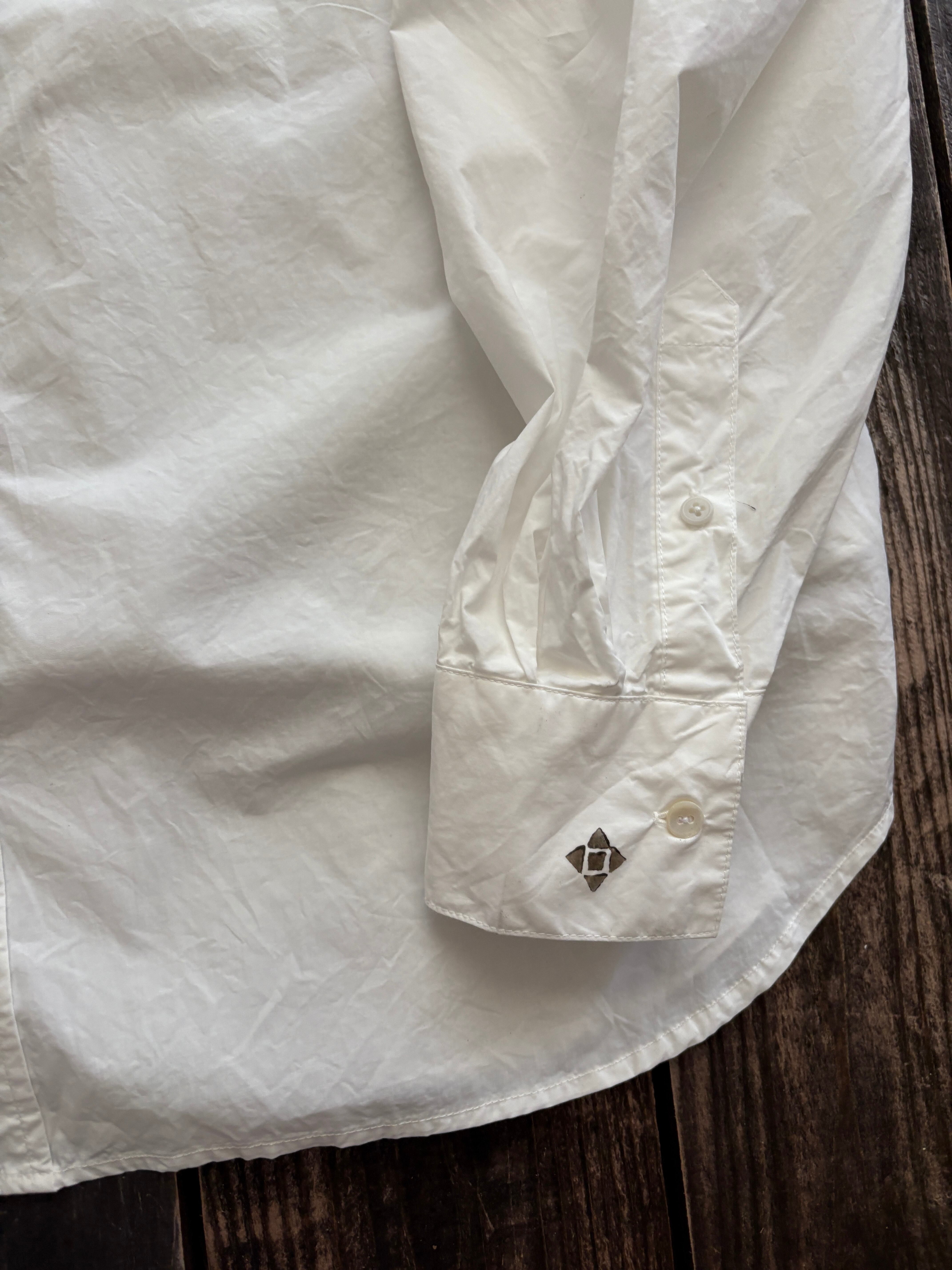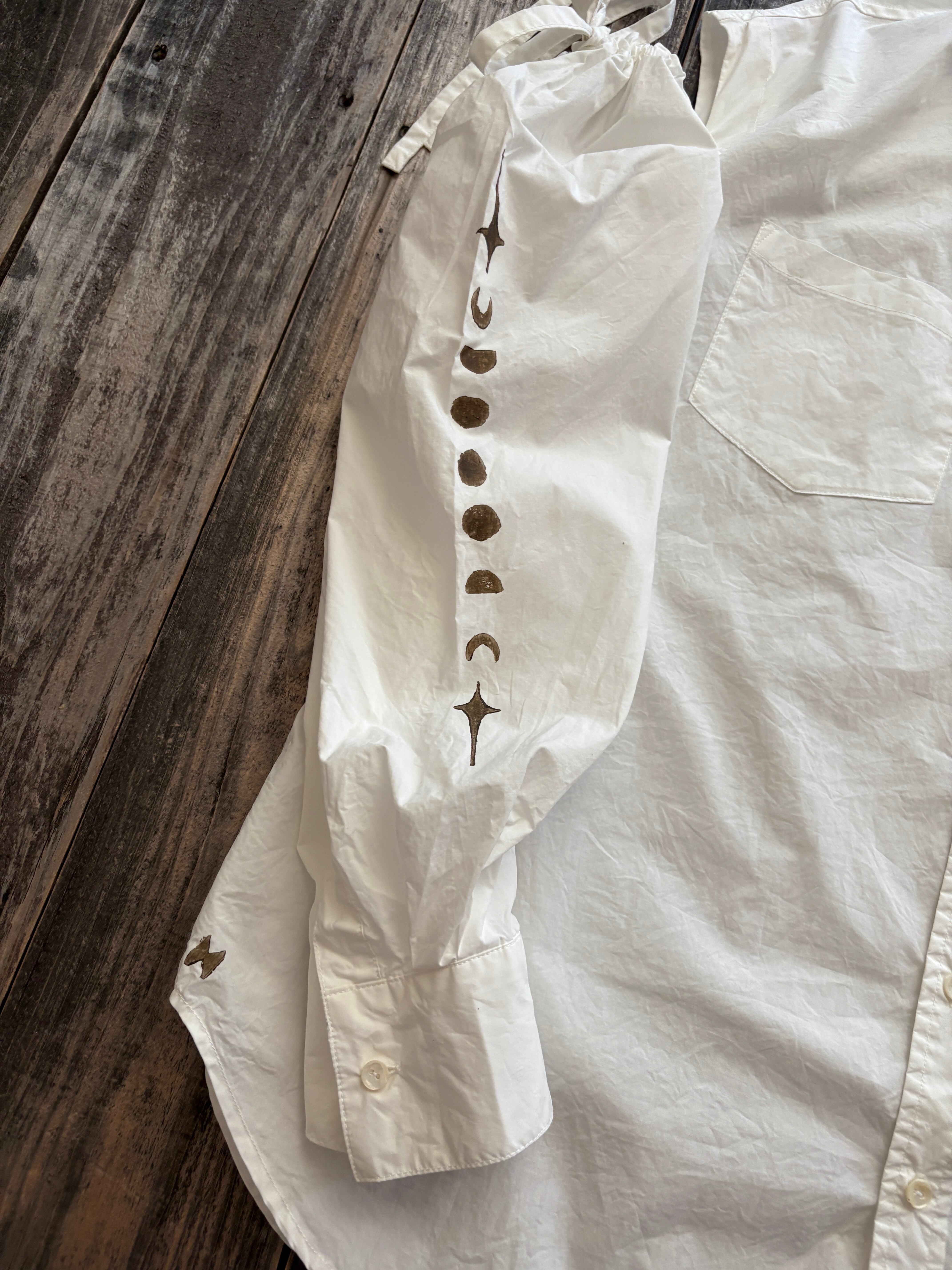 コットン シャツ 月 ブロックプリント 白 ホワイト 長袖