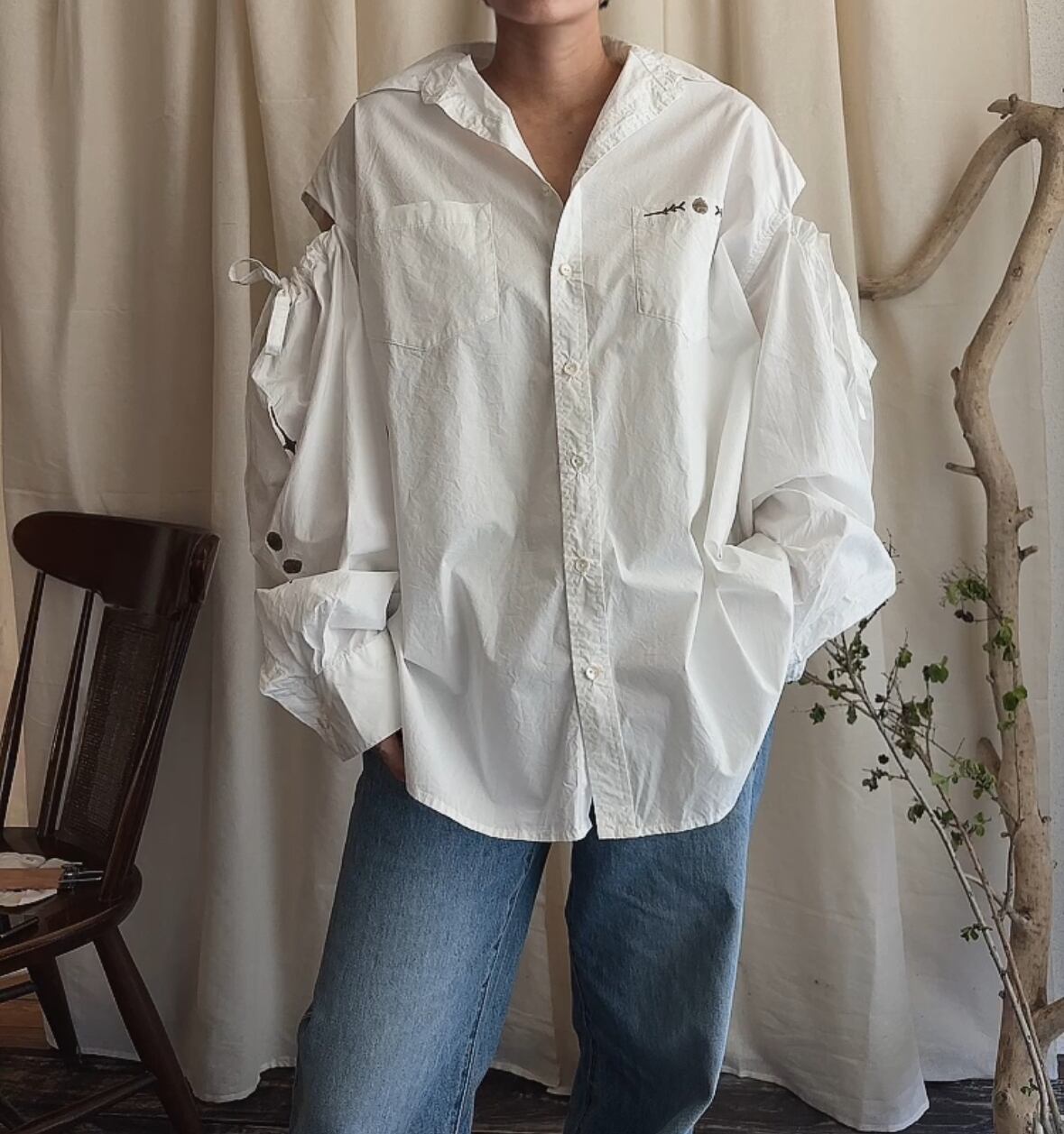 袖は長めでオーバーサイズになります