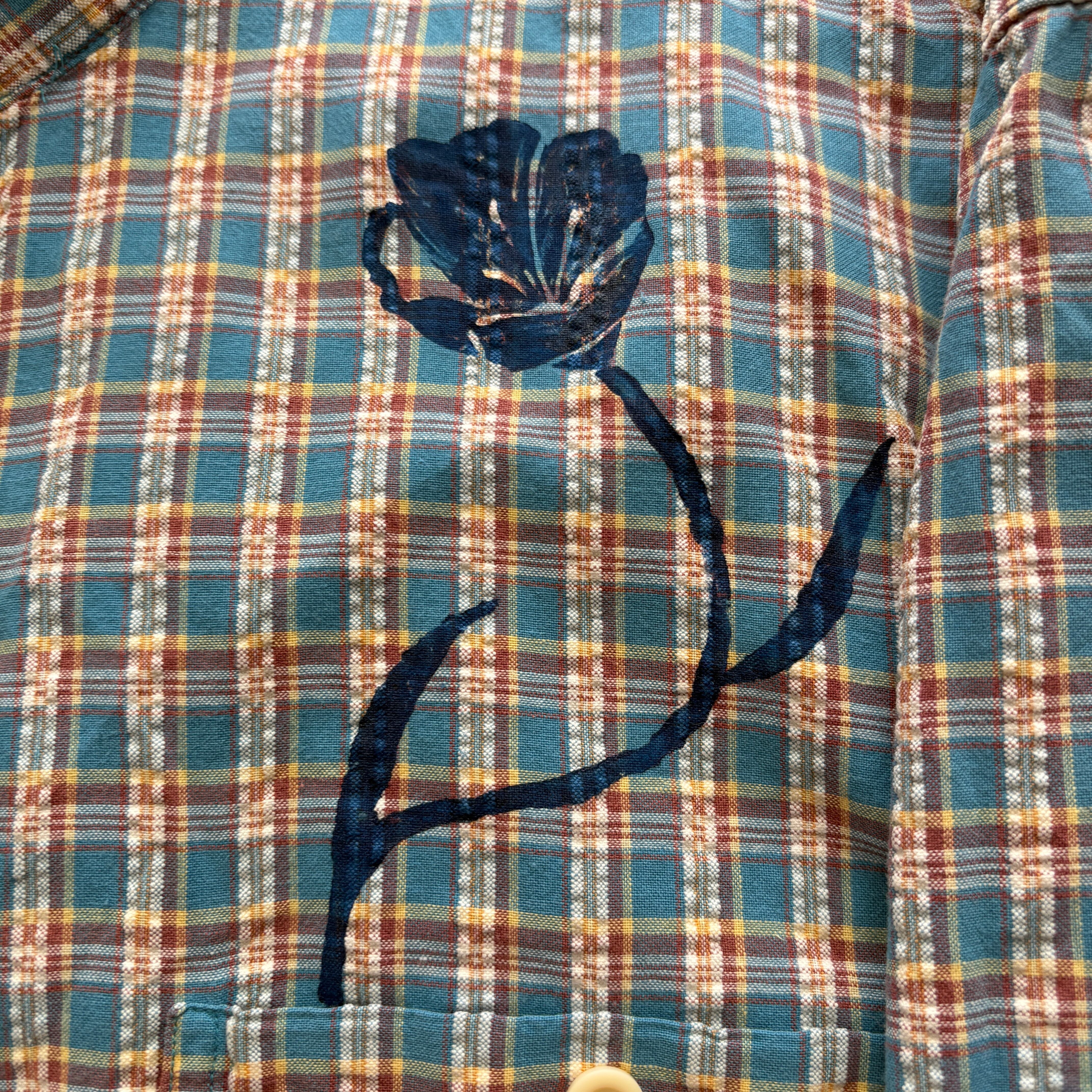 作家様のリメイクブラウスに沖縄にちなんだ手彫りの版をプリントされた素敵なブラウス⭐︎