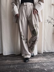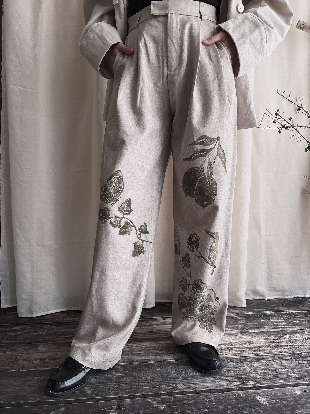 パンツ リネンパンツ 柄 レディース タックパンツ ブロックプリント スラックスパンツ 麻 リネン