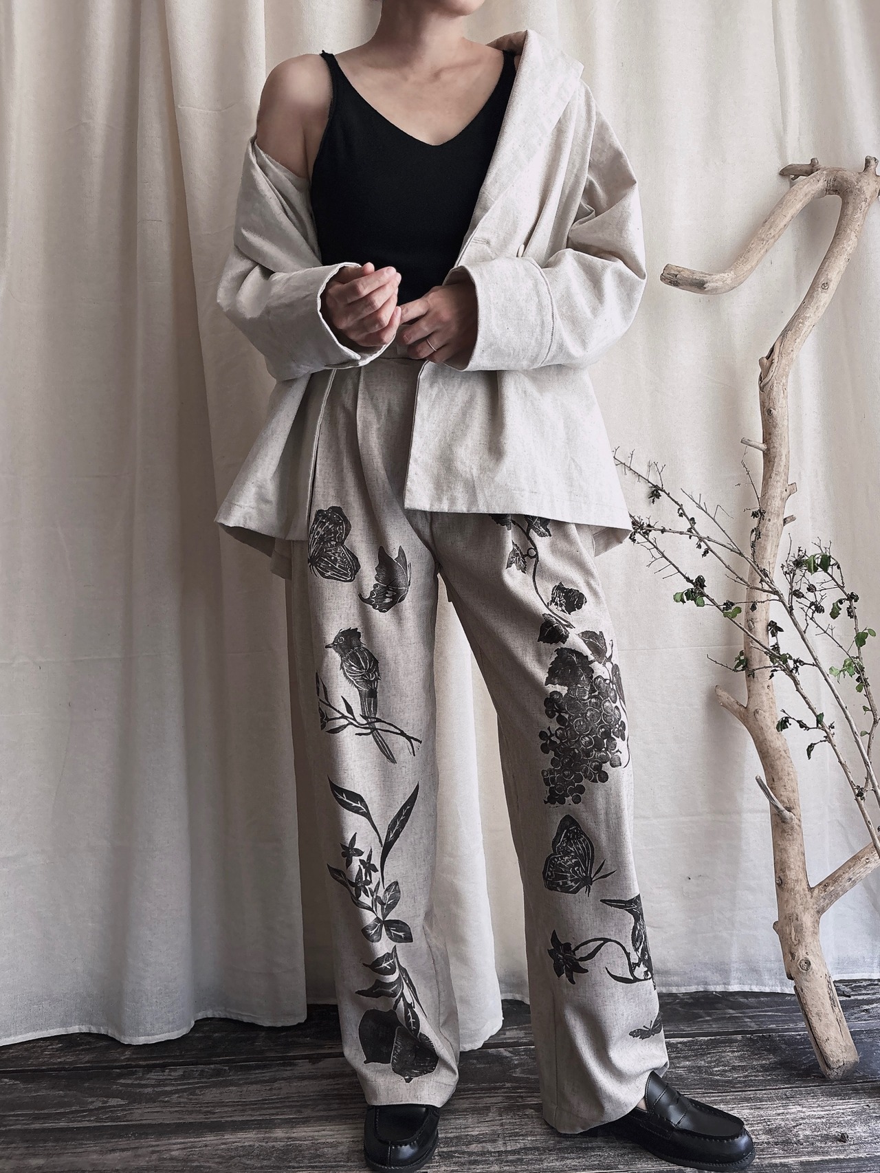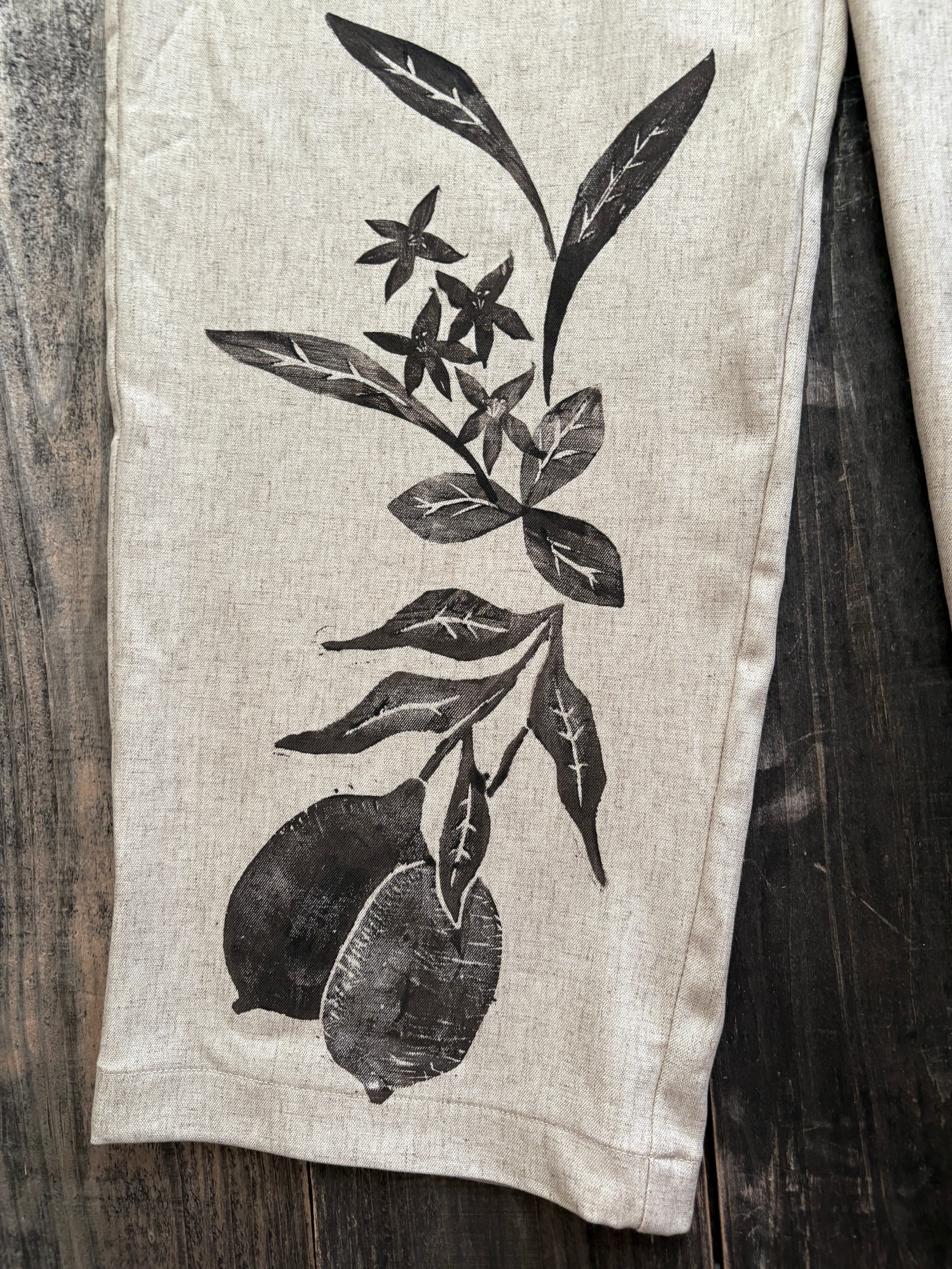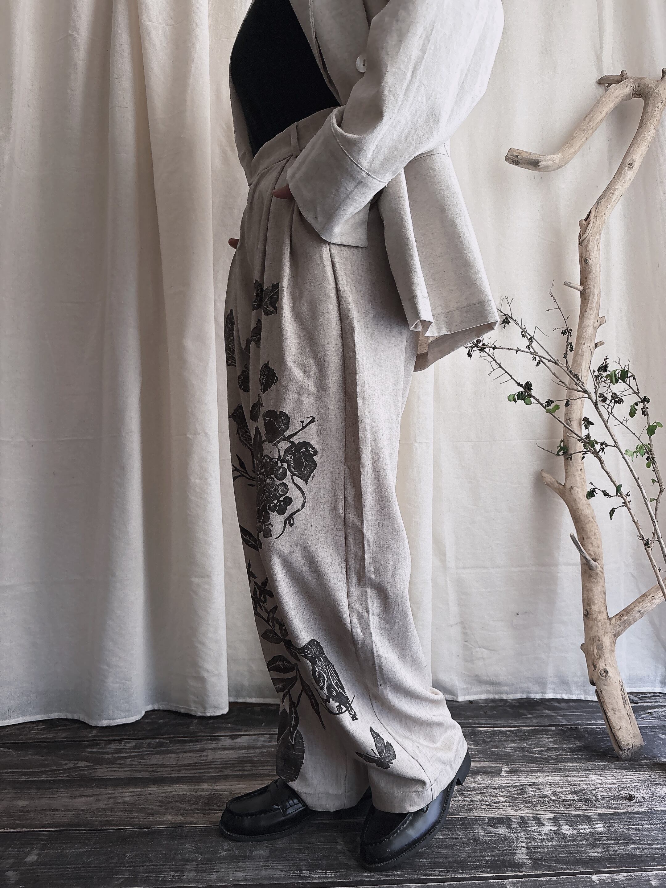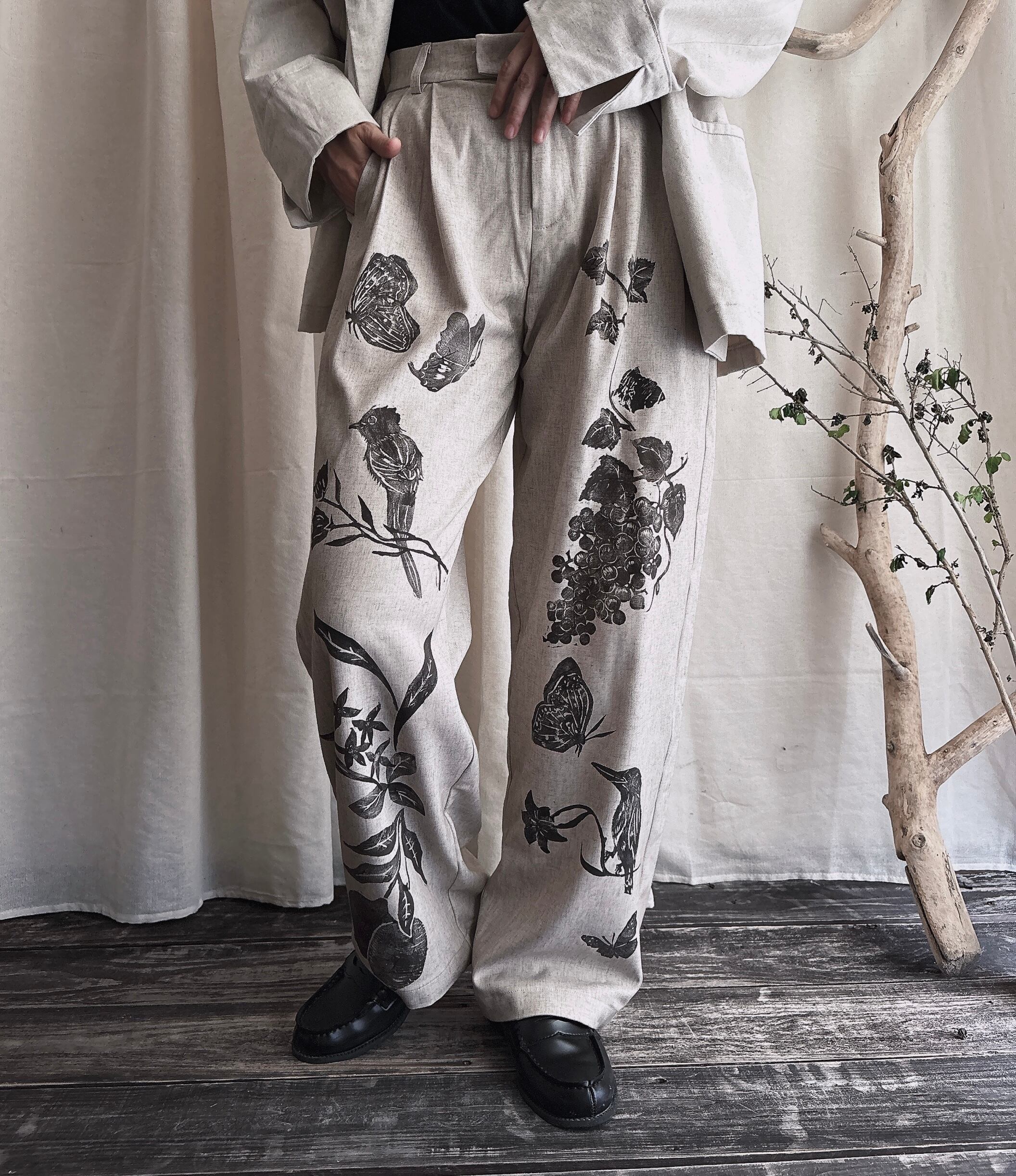 パンツ リネンパンツ 柄 レディース タックパンツ ブロックプリント スラックスパンツ 麻 リネン