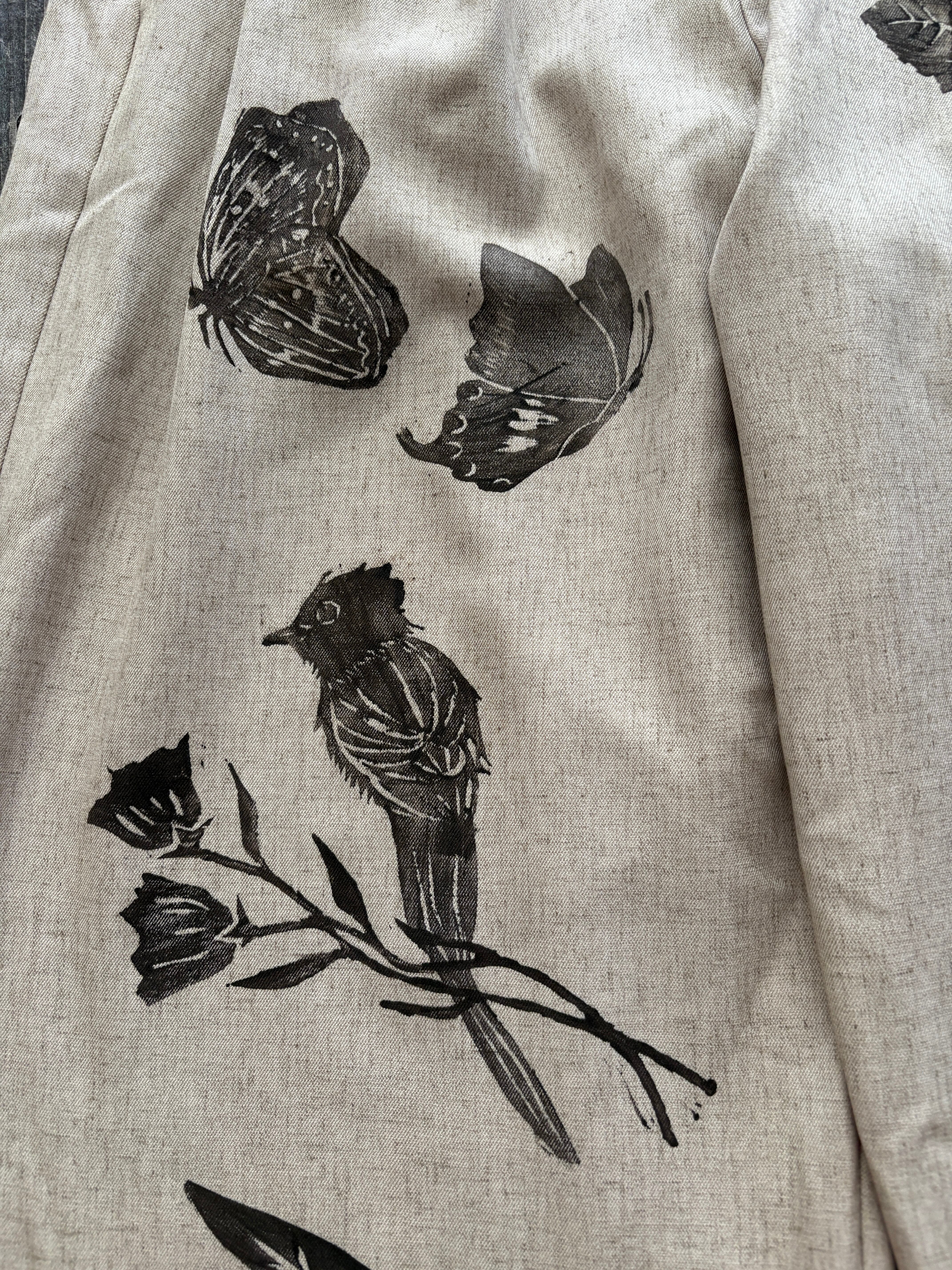 沖縄にちなんだ物をシルクスクリーンではなく、手彫りした版で一つ一つ手作業で服にプリントしてます