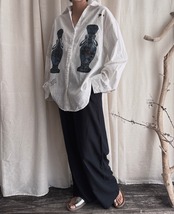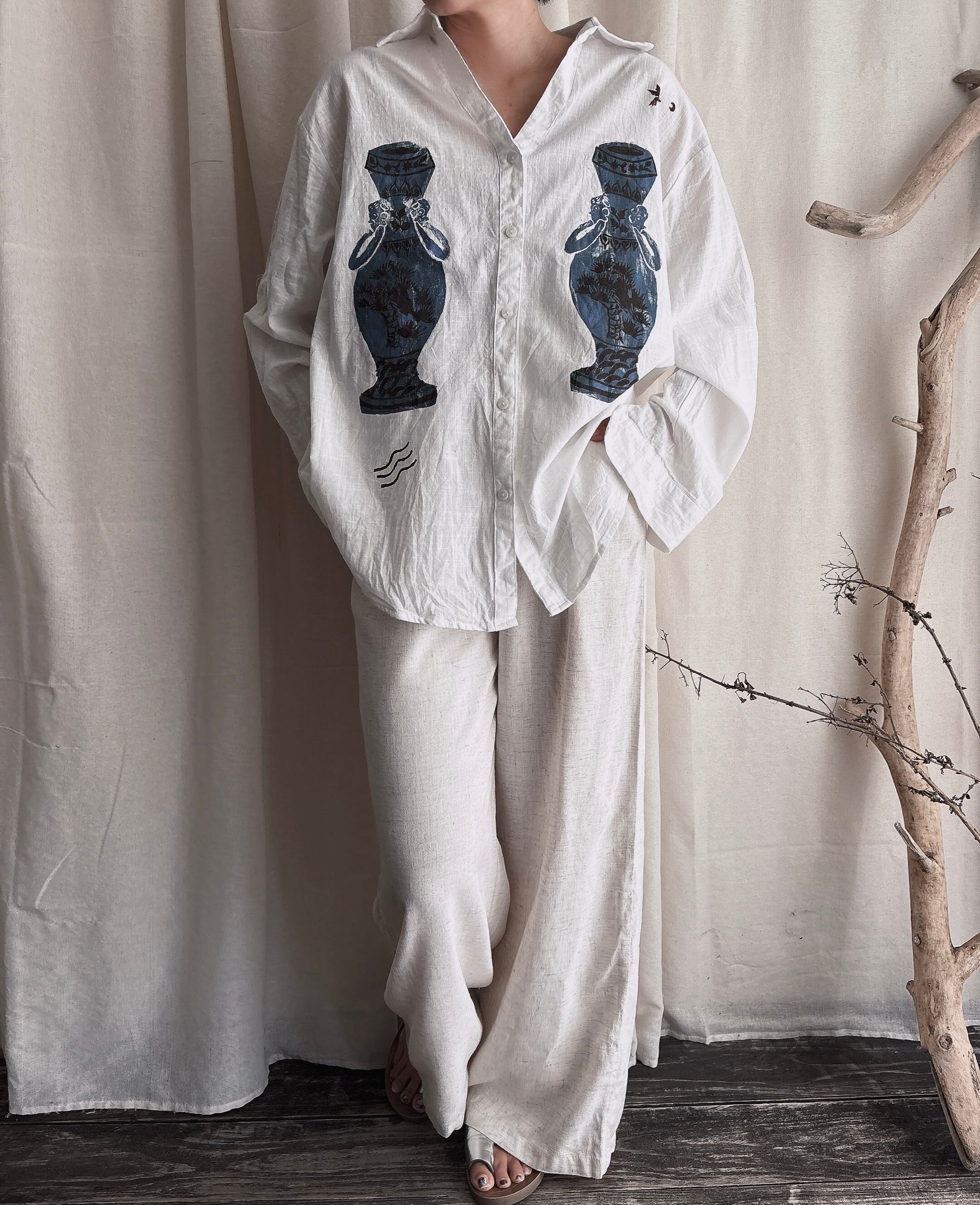麻 リネン コットンシャツ 長袖 ブラウス 柄