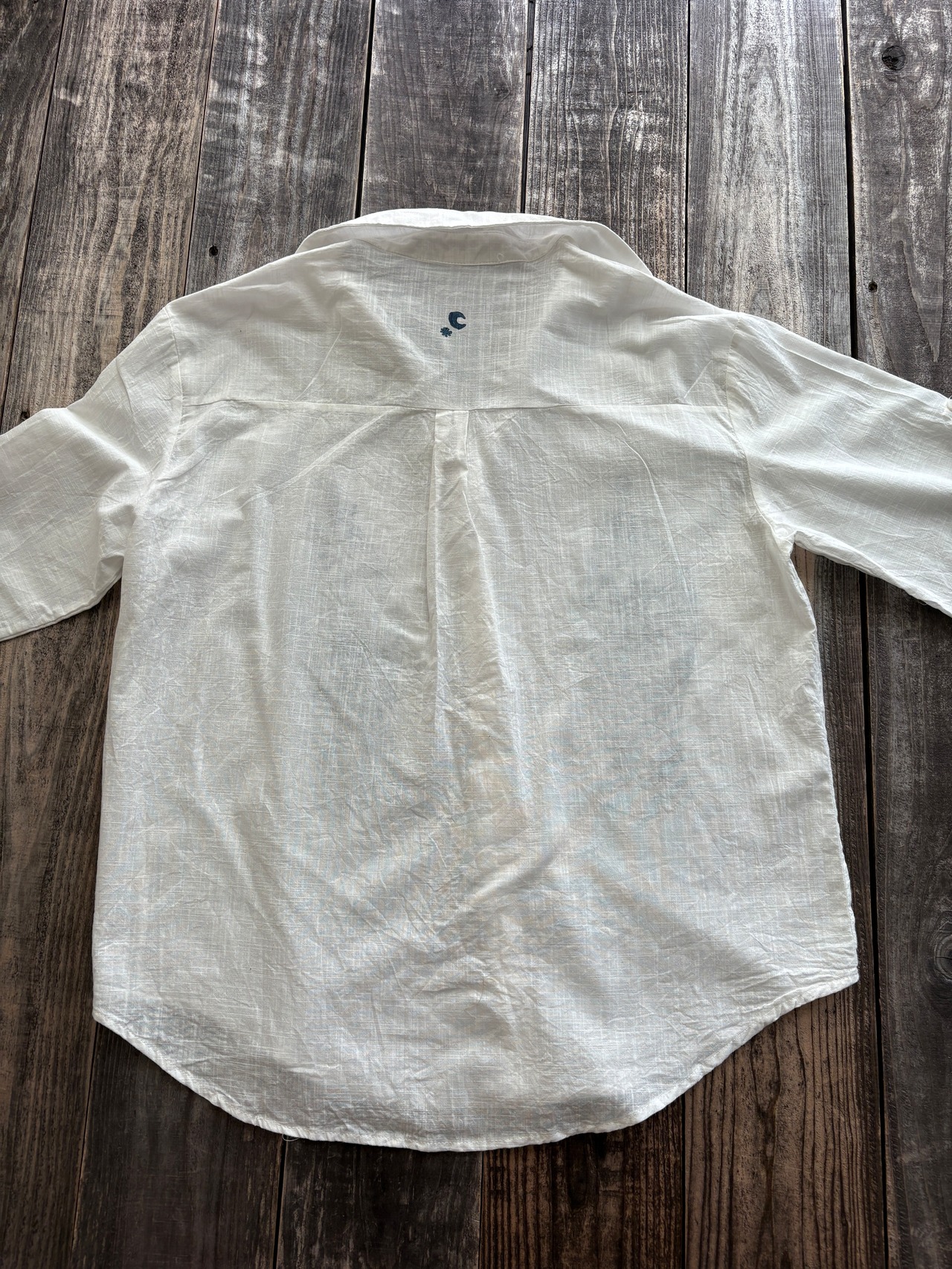 首の一番上のボタンは付いてなく、リネンコットンの素材で柔らかくとても着やすくて肌触りいいです⭐︎