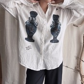 琉球王朝時代の壺を手彫りし服に押してます⭐︎