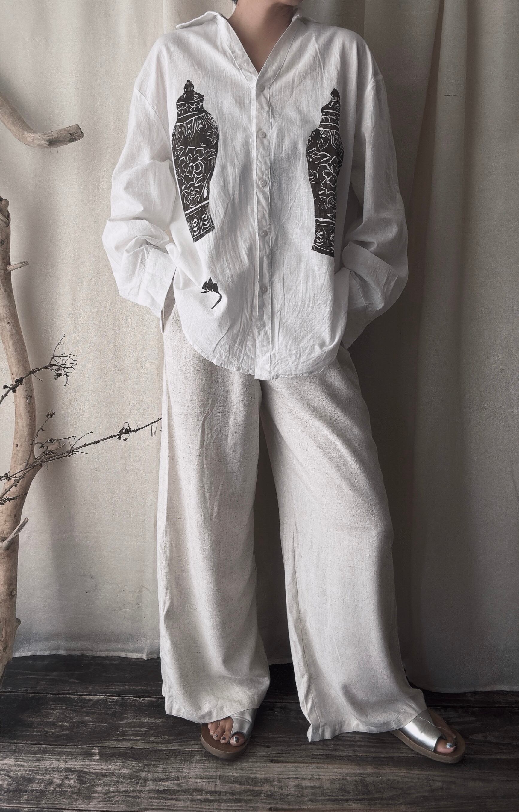 麻 リネン コットンシャツ 長袖 ブラウス 柄