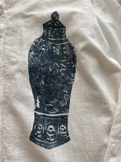 琉球王朝時代の壺を手彫りし服に押してます⭐︎