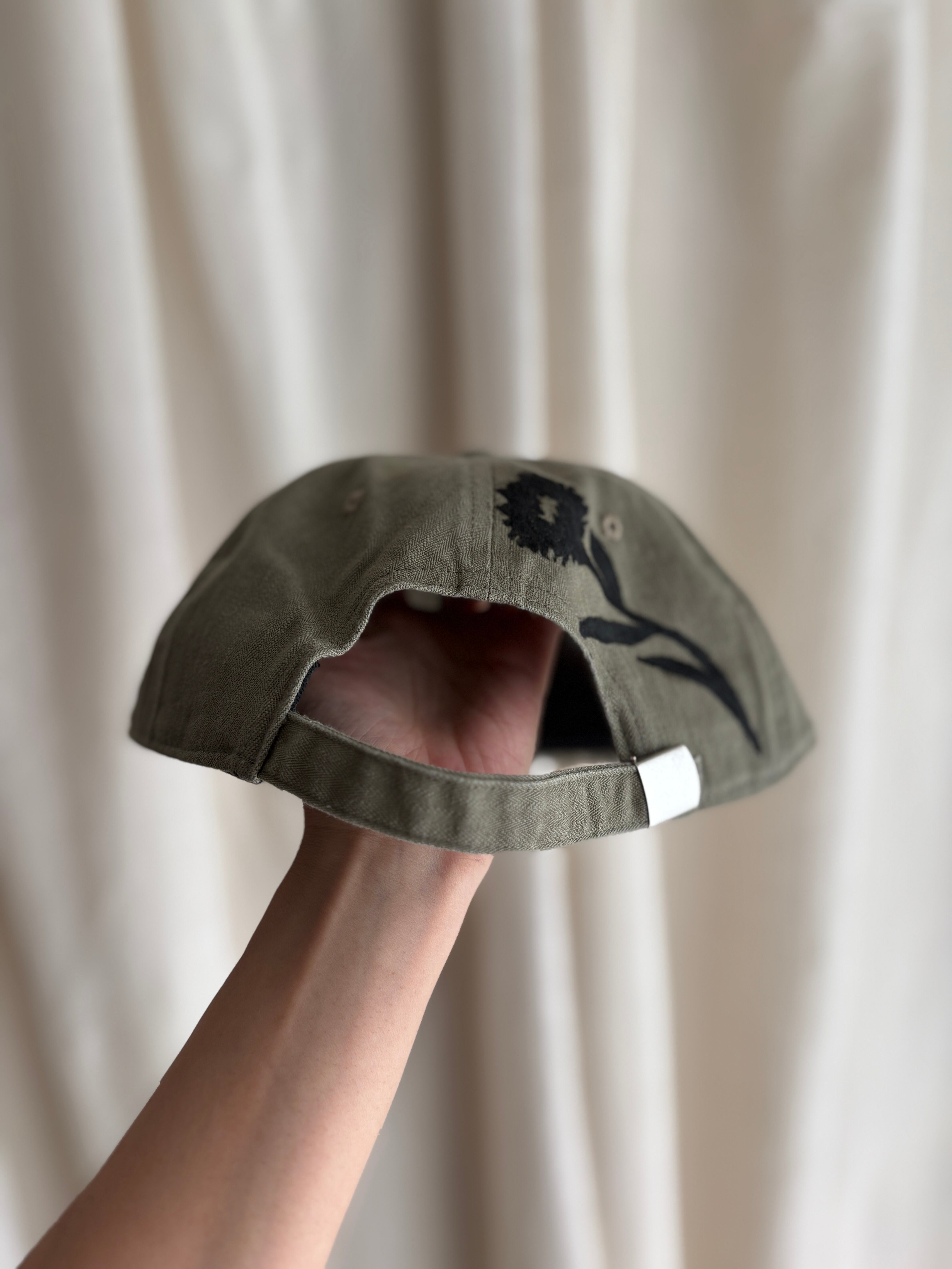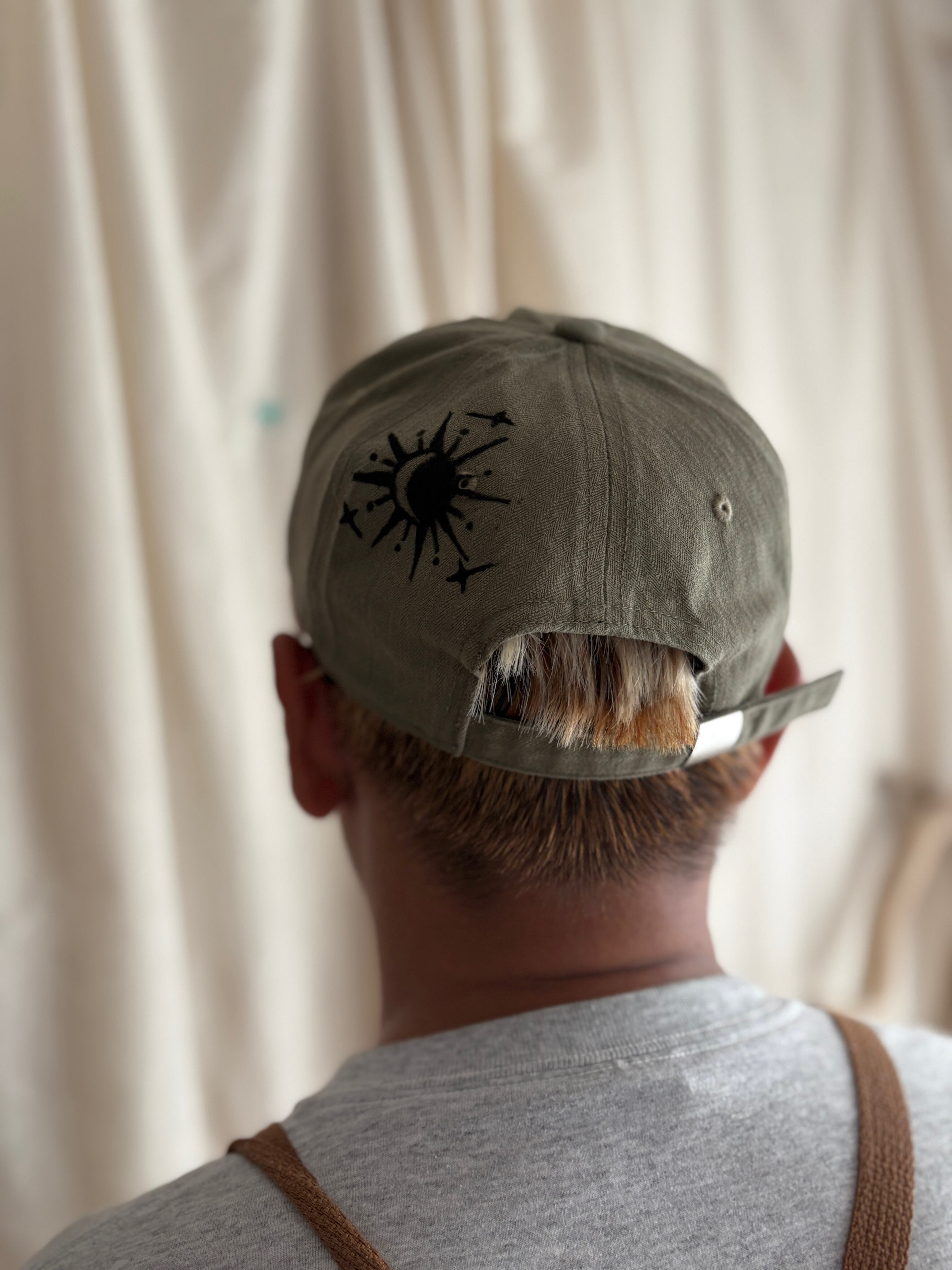 ハンドプリント ブロックプリント カーキ 鳥 キャップ コットン レディース 帽子 メンズ