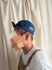 ハンドプリント ブロックプリント デニム生地 キャップコットン レディース 帽子