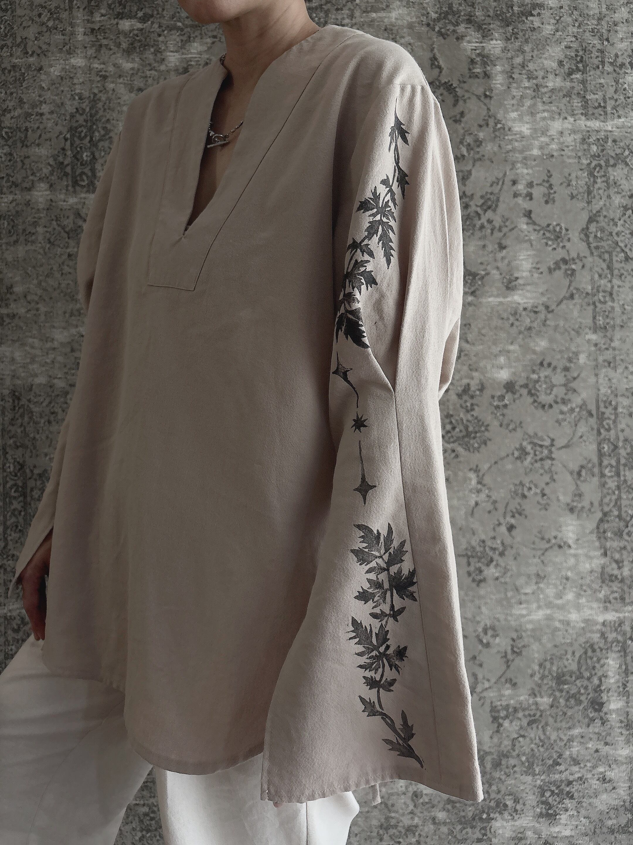 琉球モチーフで版を手彫りして服にプリントされてます⭐︎