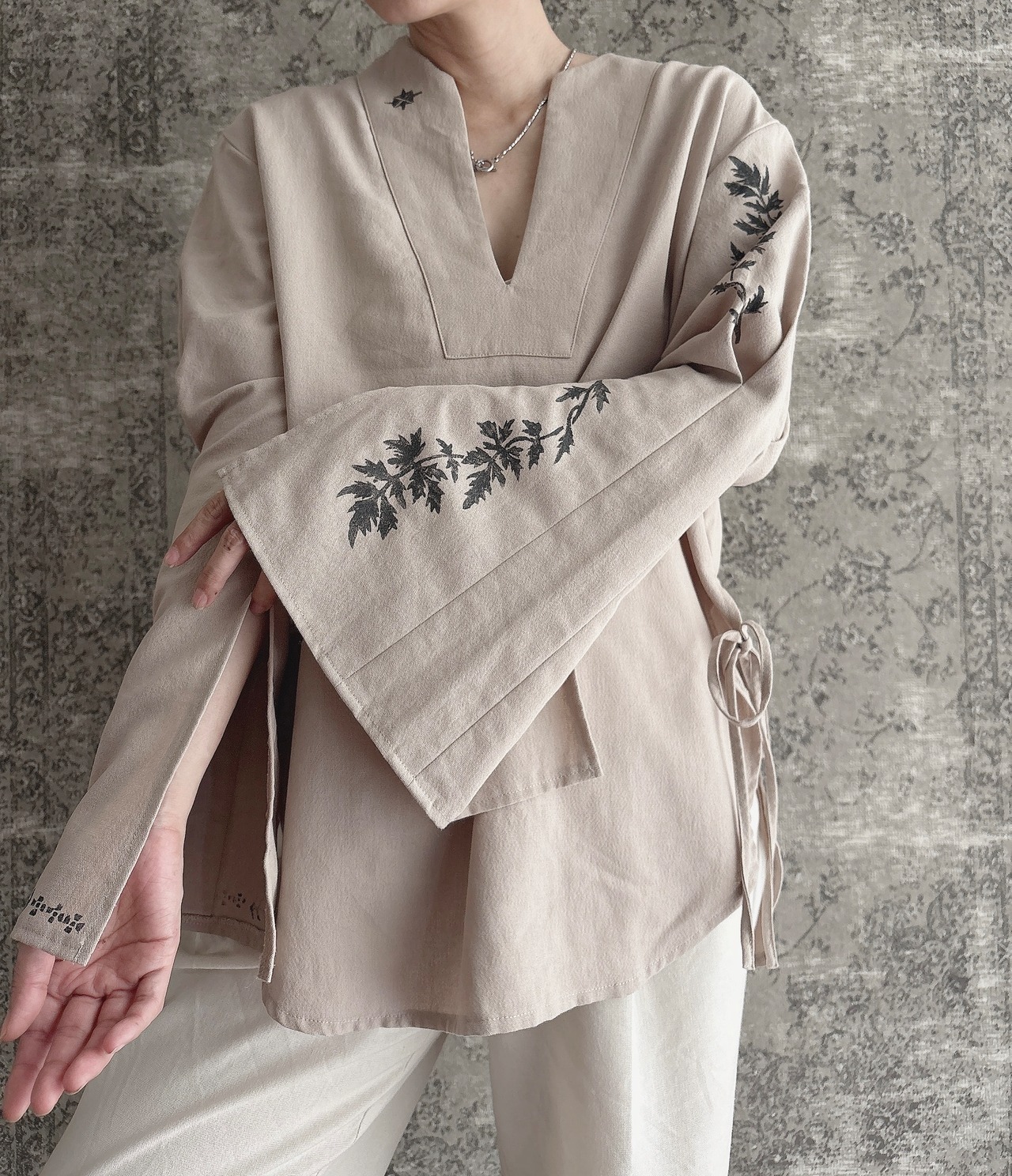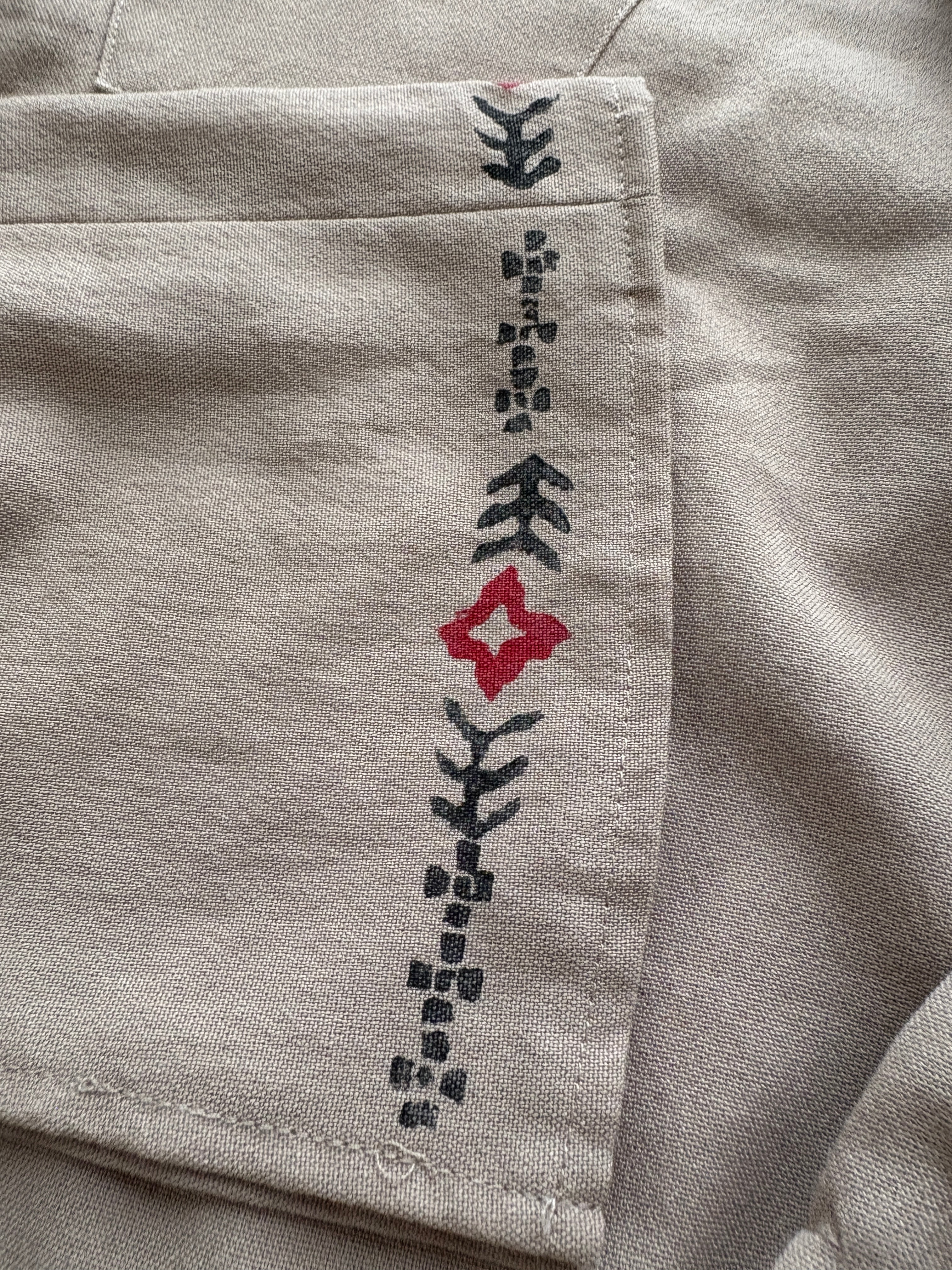 琉球モチーフで版を手彫りして服にプリントされてます⭐︎