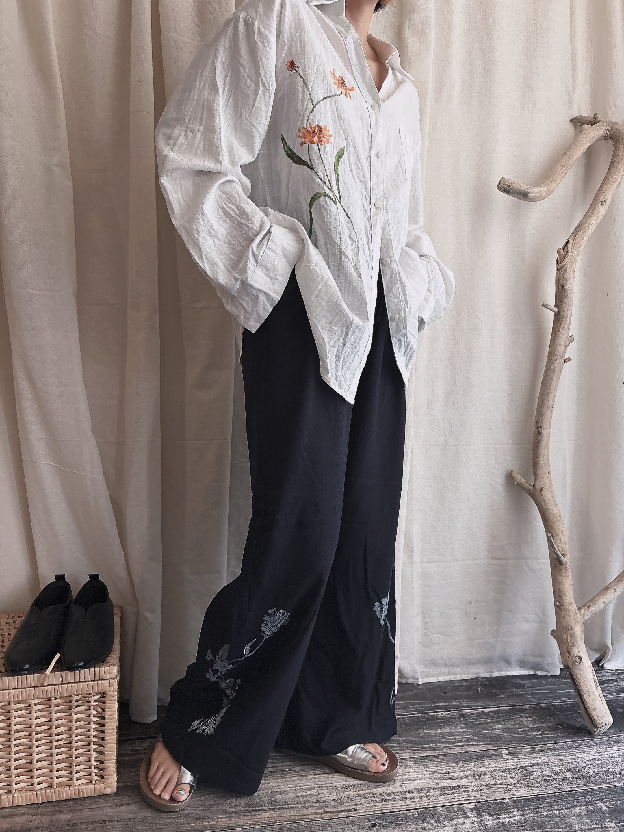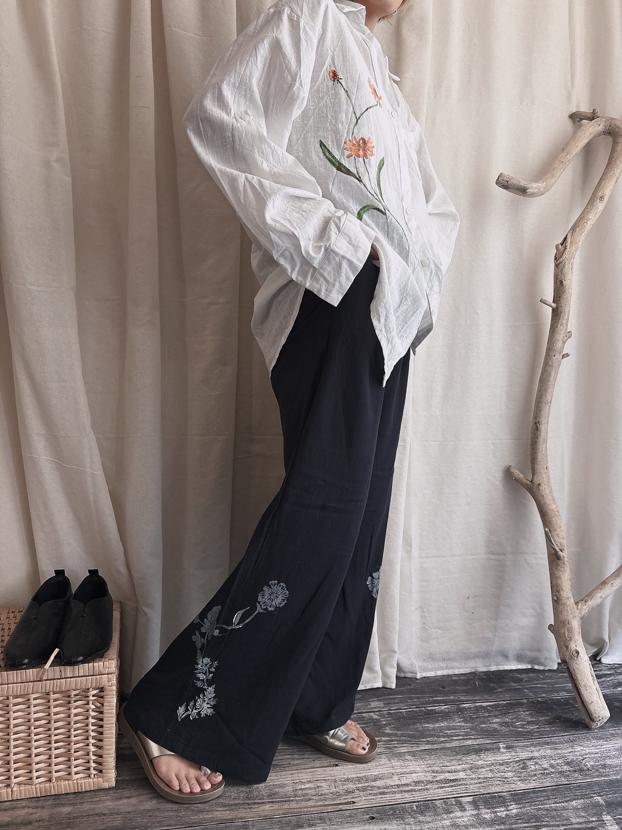 沖縄をモチーフに手彫りで彫った版画で一つ一つ服にプリントしています⁎ˇ◡ˇ⁎