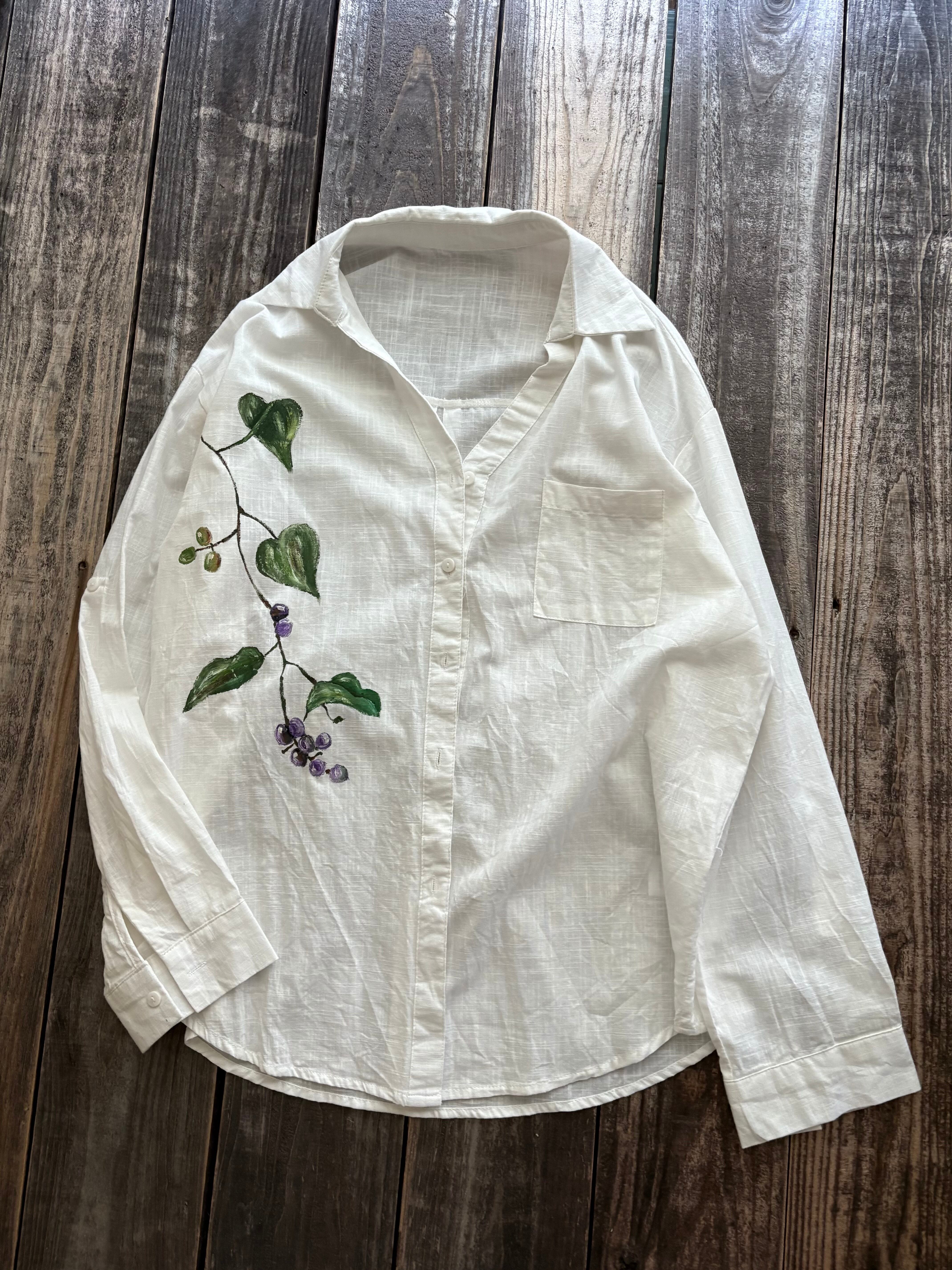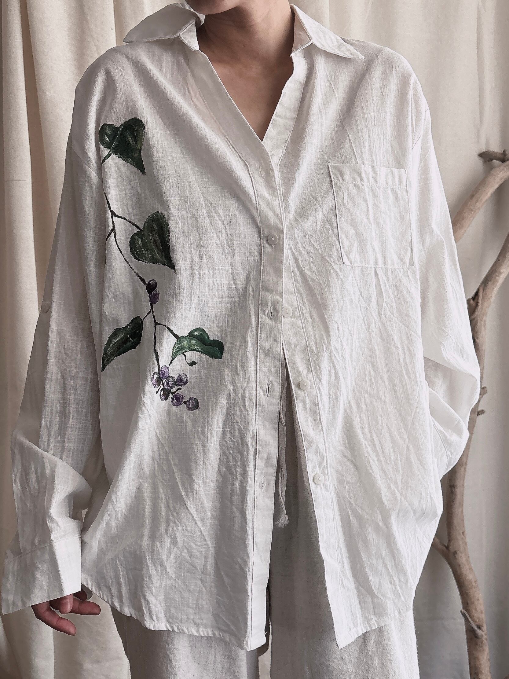 首の一番上のボタンは付いてなく、リネンコットンの素材で柔らかく、とても着やすくて肌触りいいです⭐︎