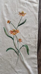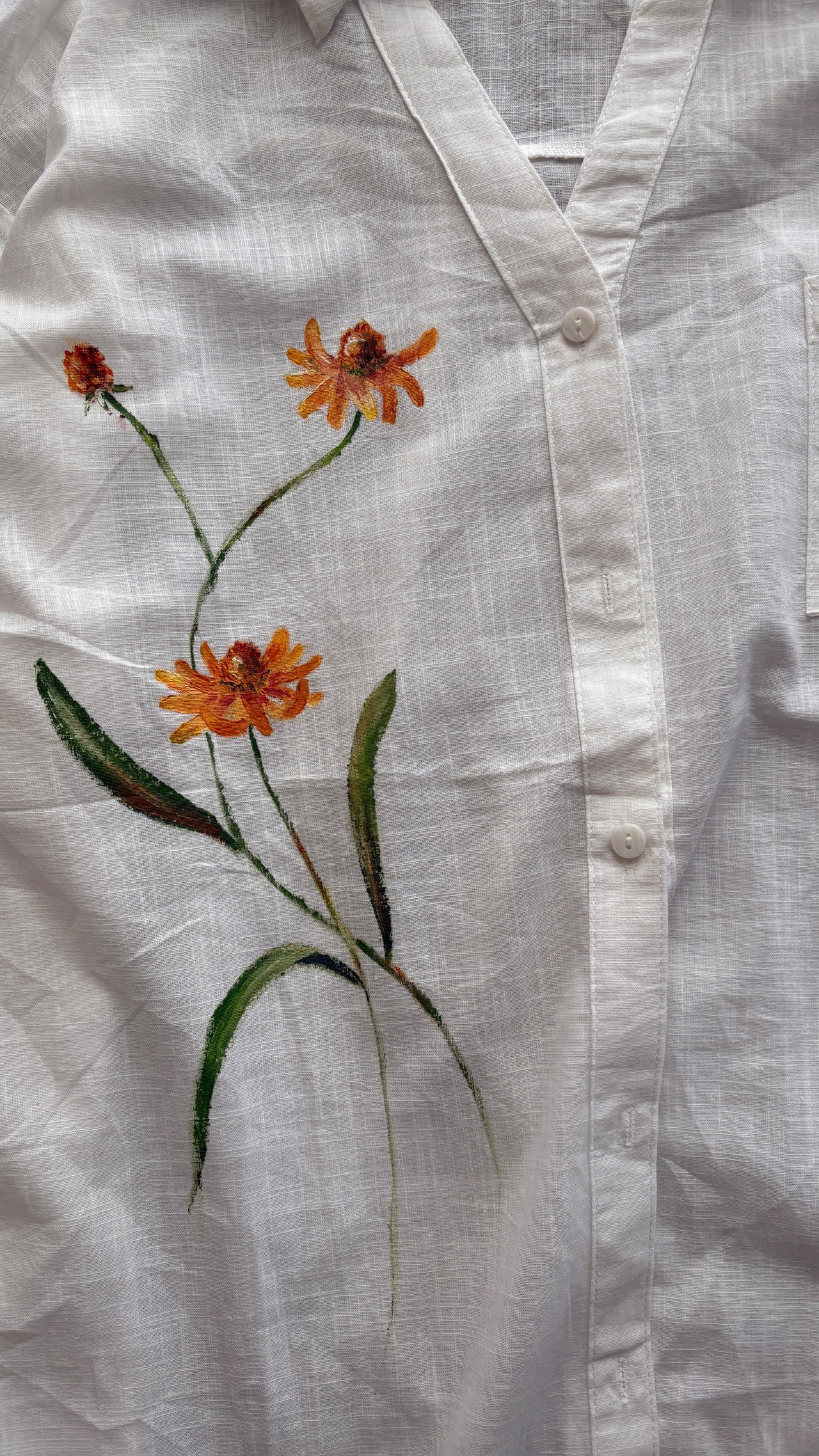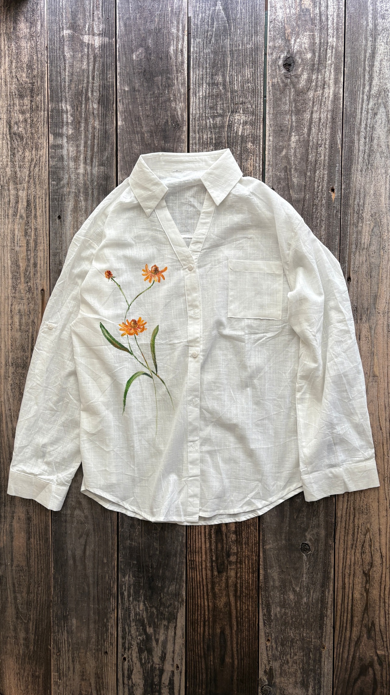コットン リネン シャツ 長袖 ハンドペイント 花柄