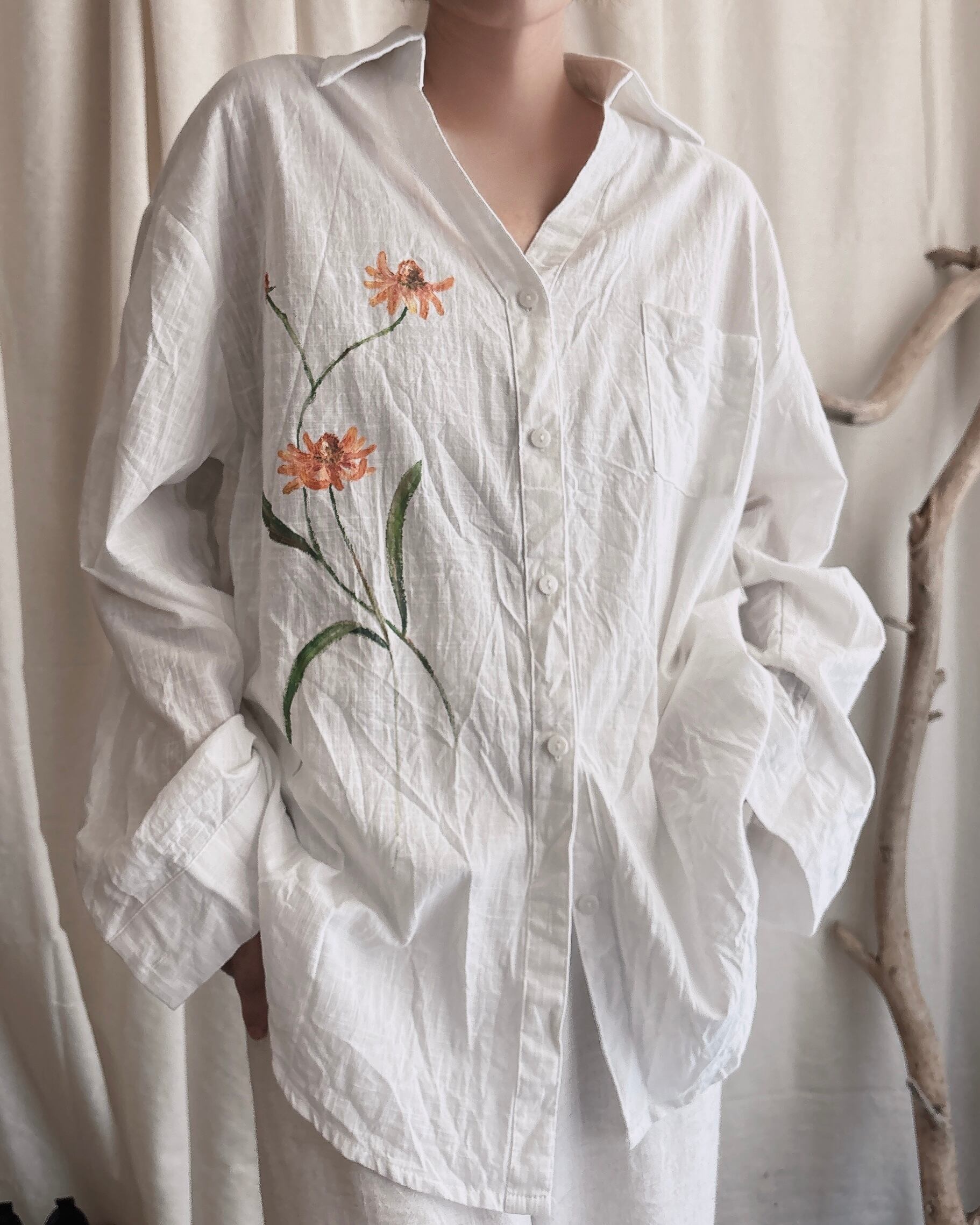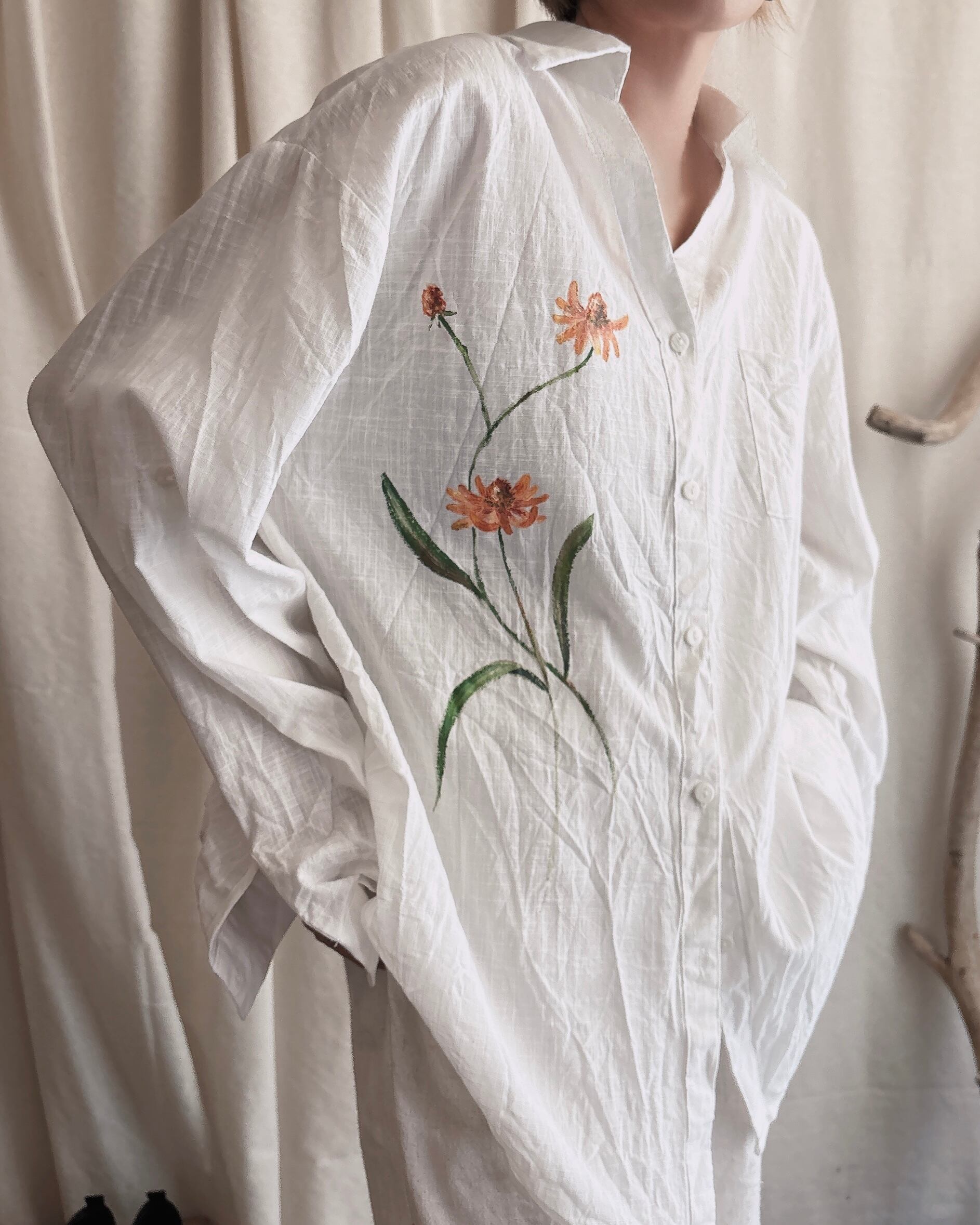 首の一番上のボタンは付いてなく、リネンコットンの素材で柔らかく、とても着やすくて肌触りいいです⭐︎