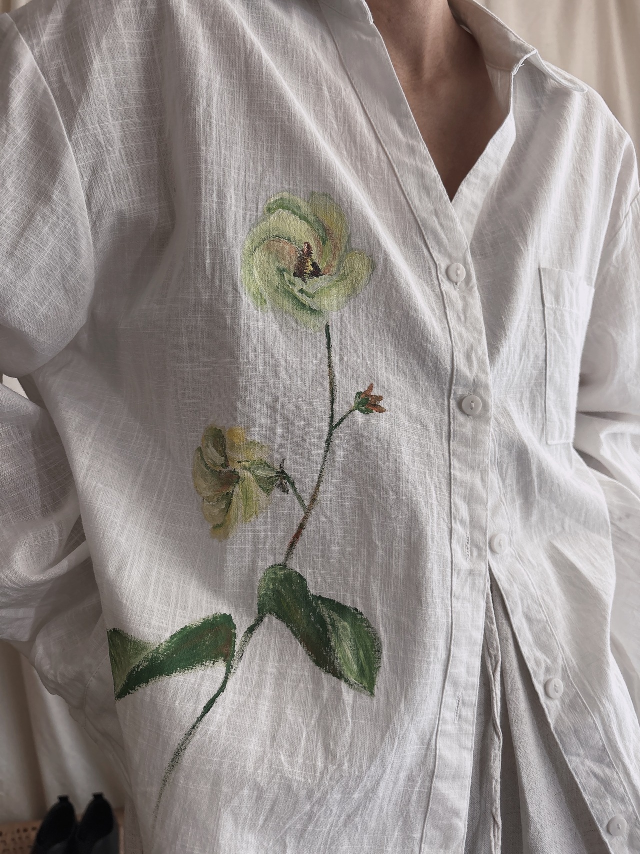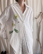 首の一番上のボタンは付いてなく、リネンコットンの素材で柔らかく、とても着やすくて肌触りいいです⭐︎