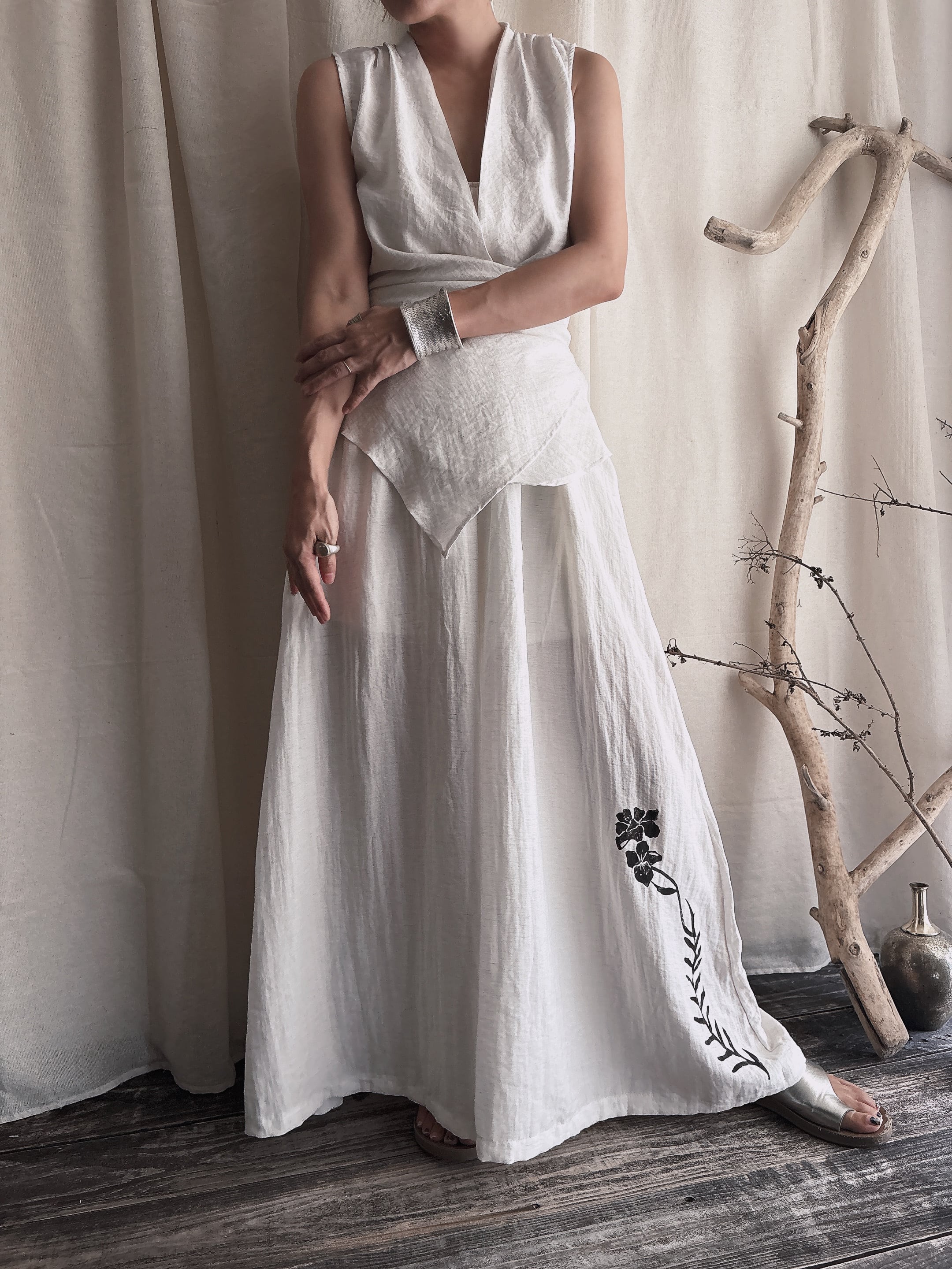 リネンレーヨンの素材でサラッとテロっととても着やすくて肌触りいいです⭐︎