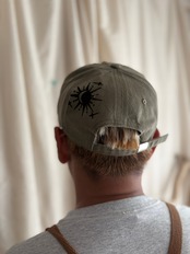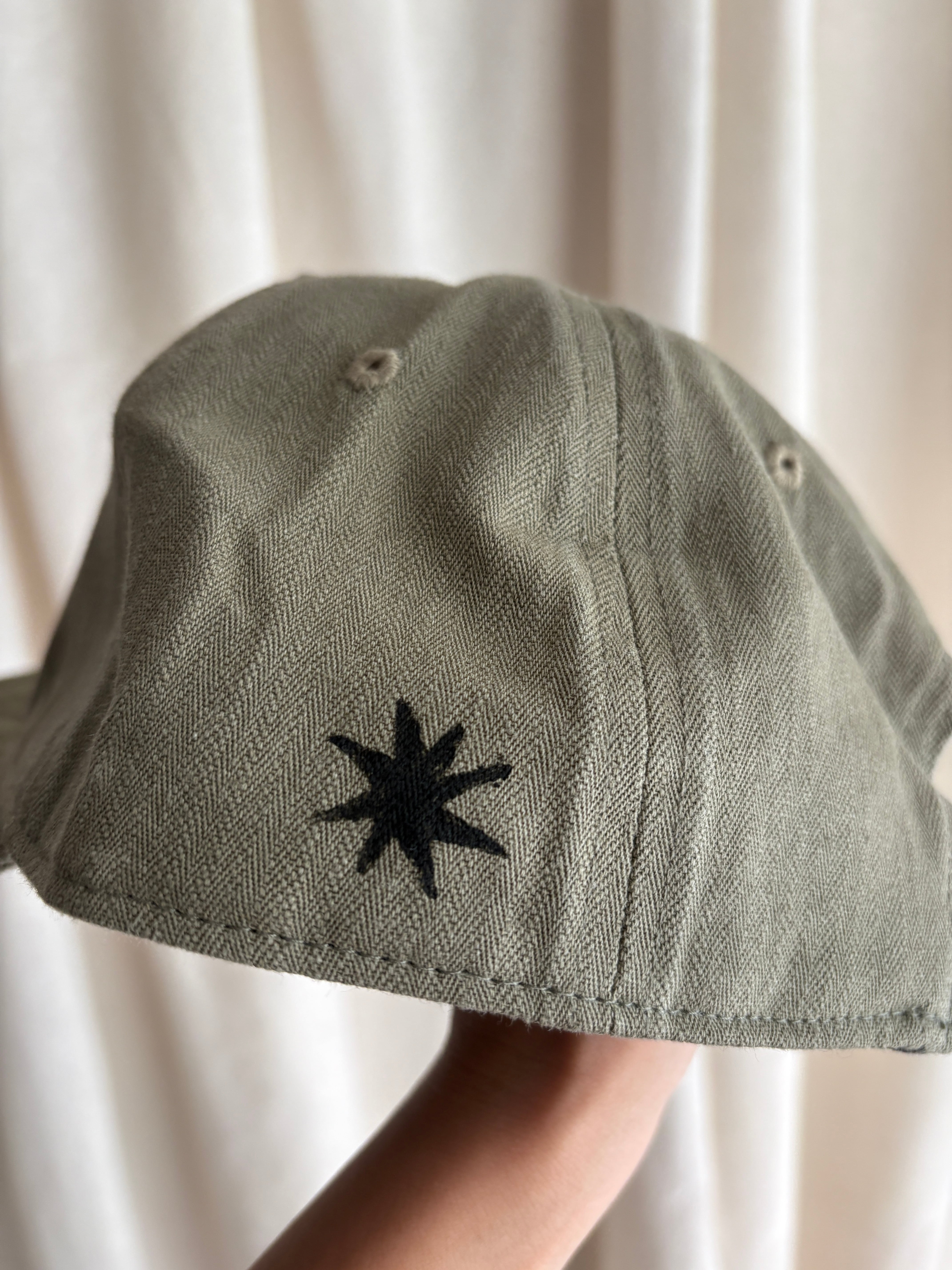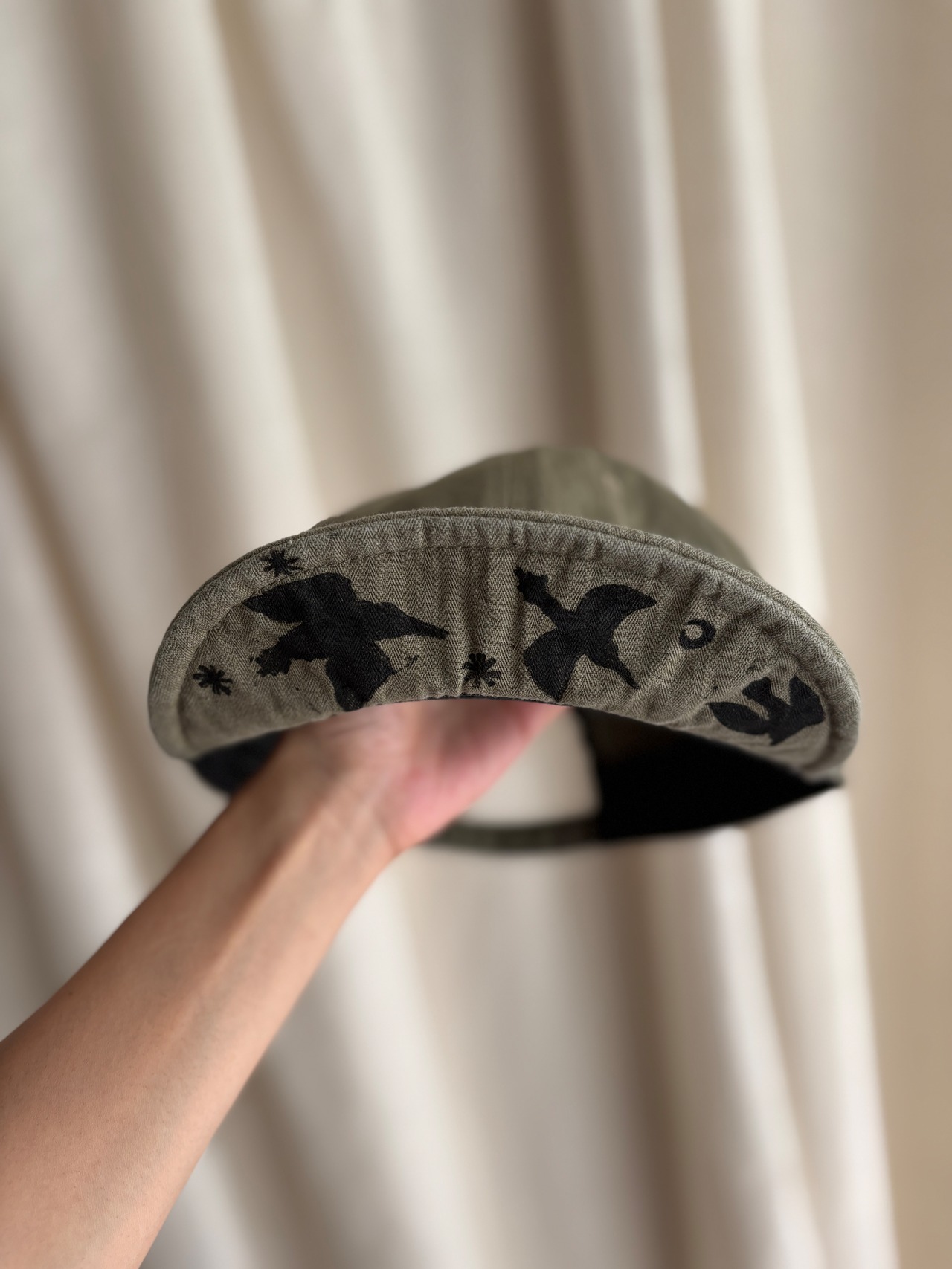 コットンの帽子に手彫りした沖縄の花とアカショウビンをおしてます