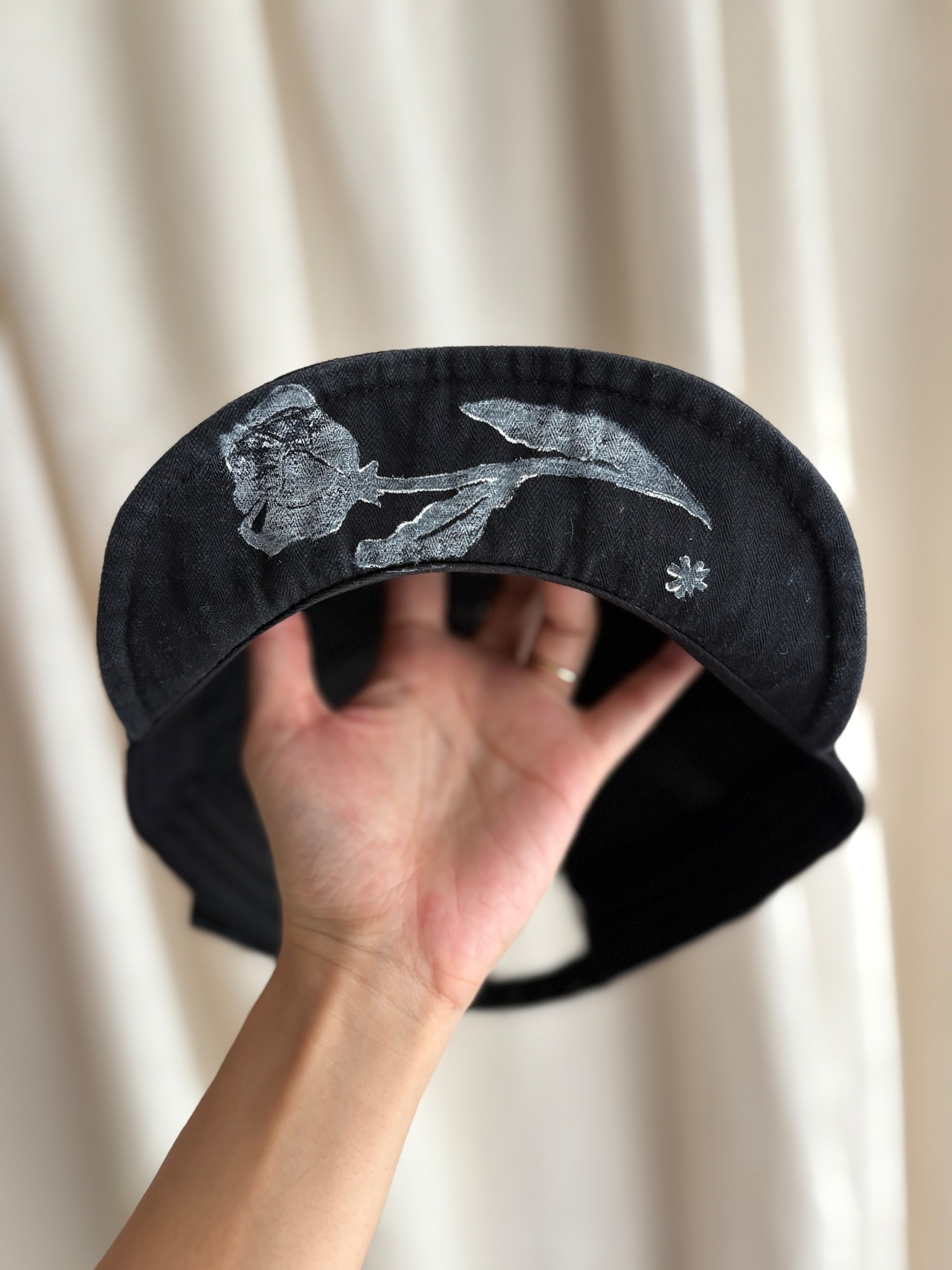 コットンの帽子に手彫りした沖縄の花やハヂチをおしてます