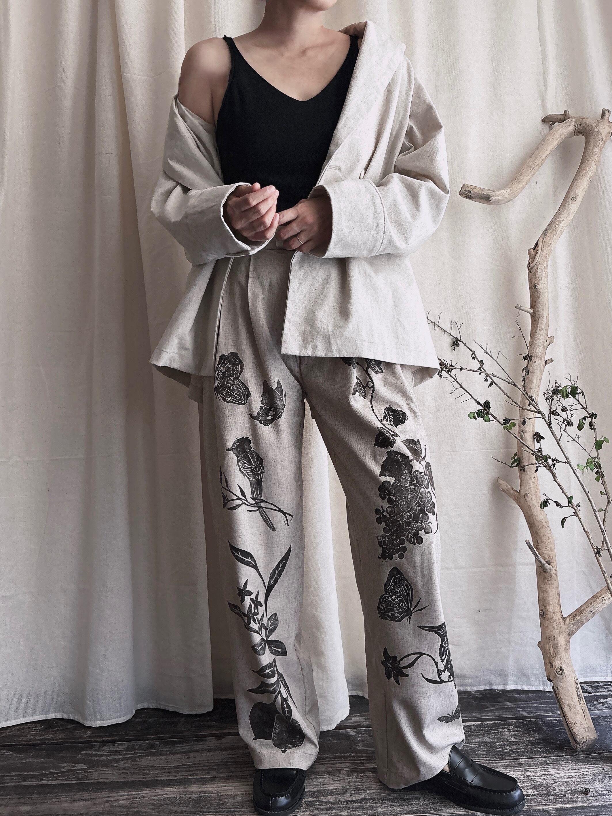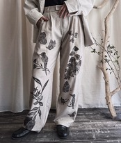 NO.34 パンツ リネンパンツ 柄 レディース タックパンツ ブロックプリント スラックスパンツ 麻 リネン