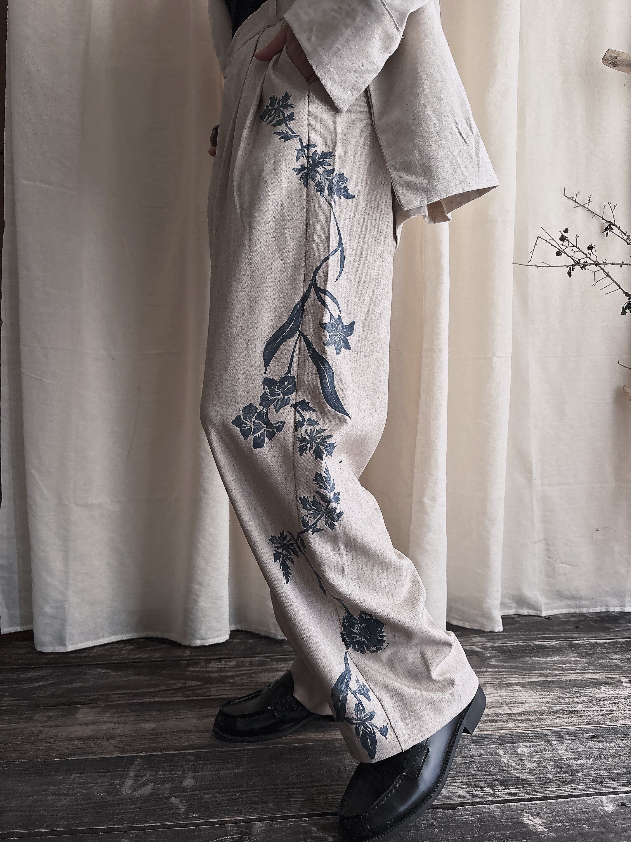 沖縄にちなんだ物をシルクスクリーンではなく、手彫りした版で一つ一つ手作業で服にプリントしてます