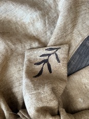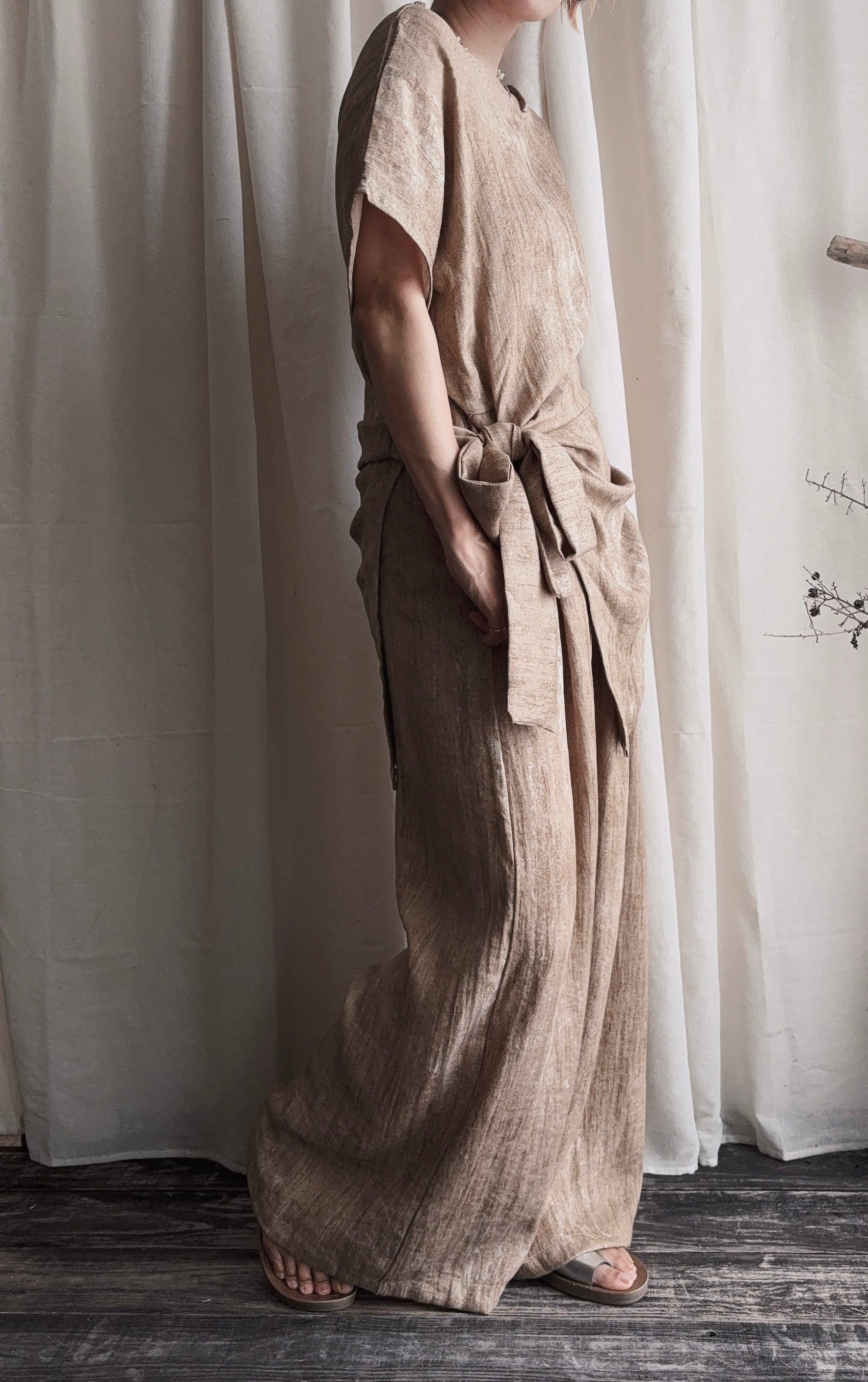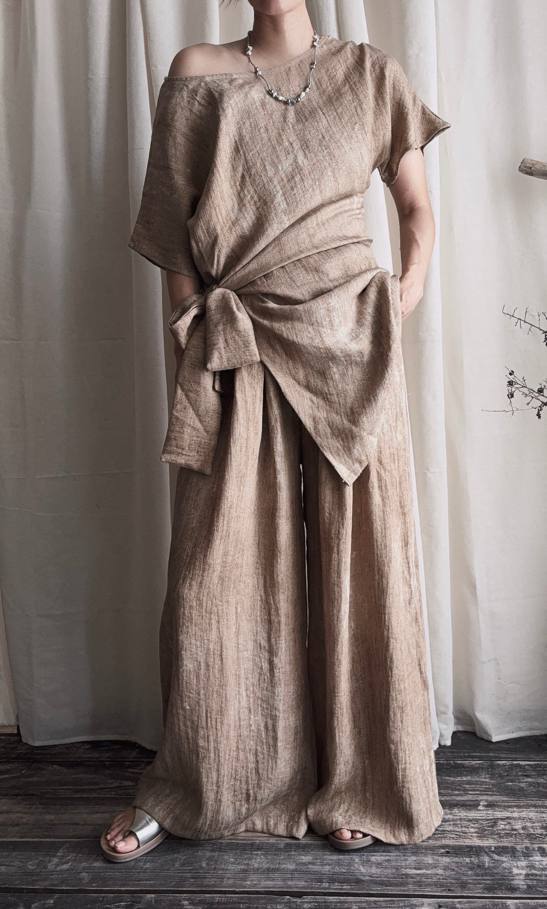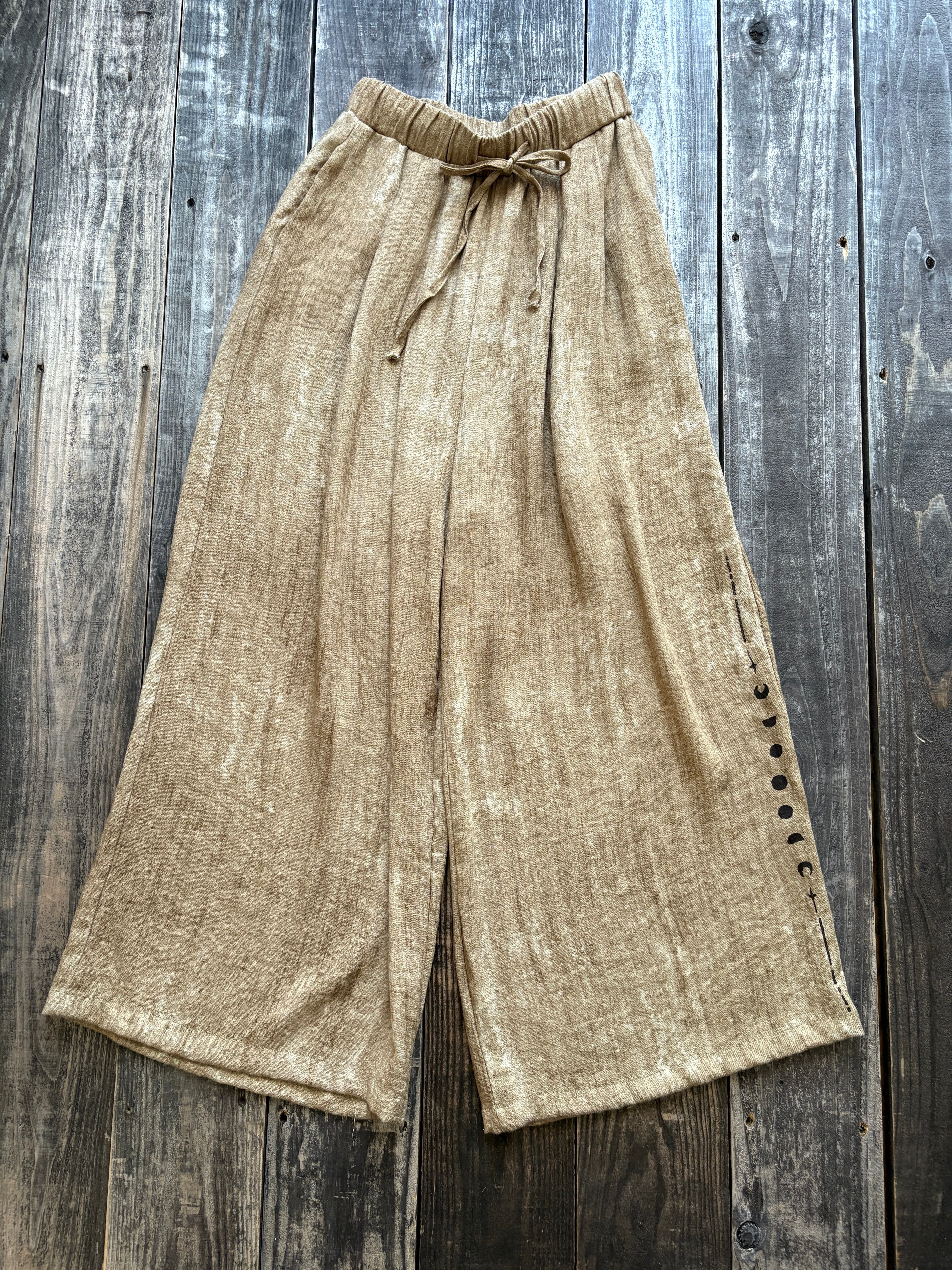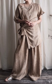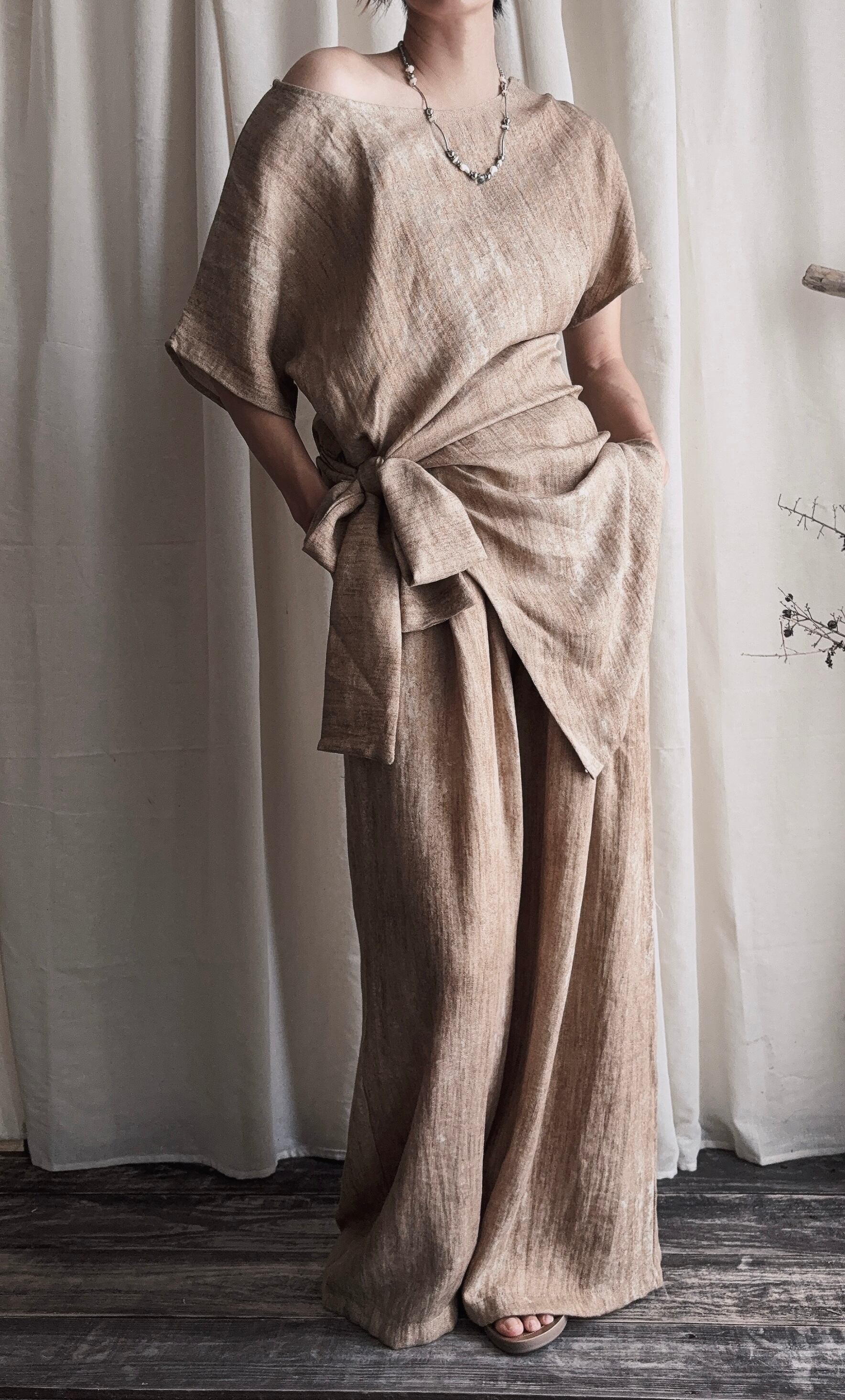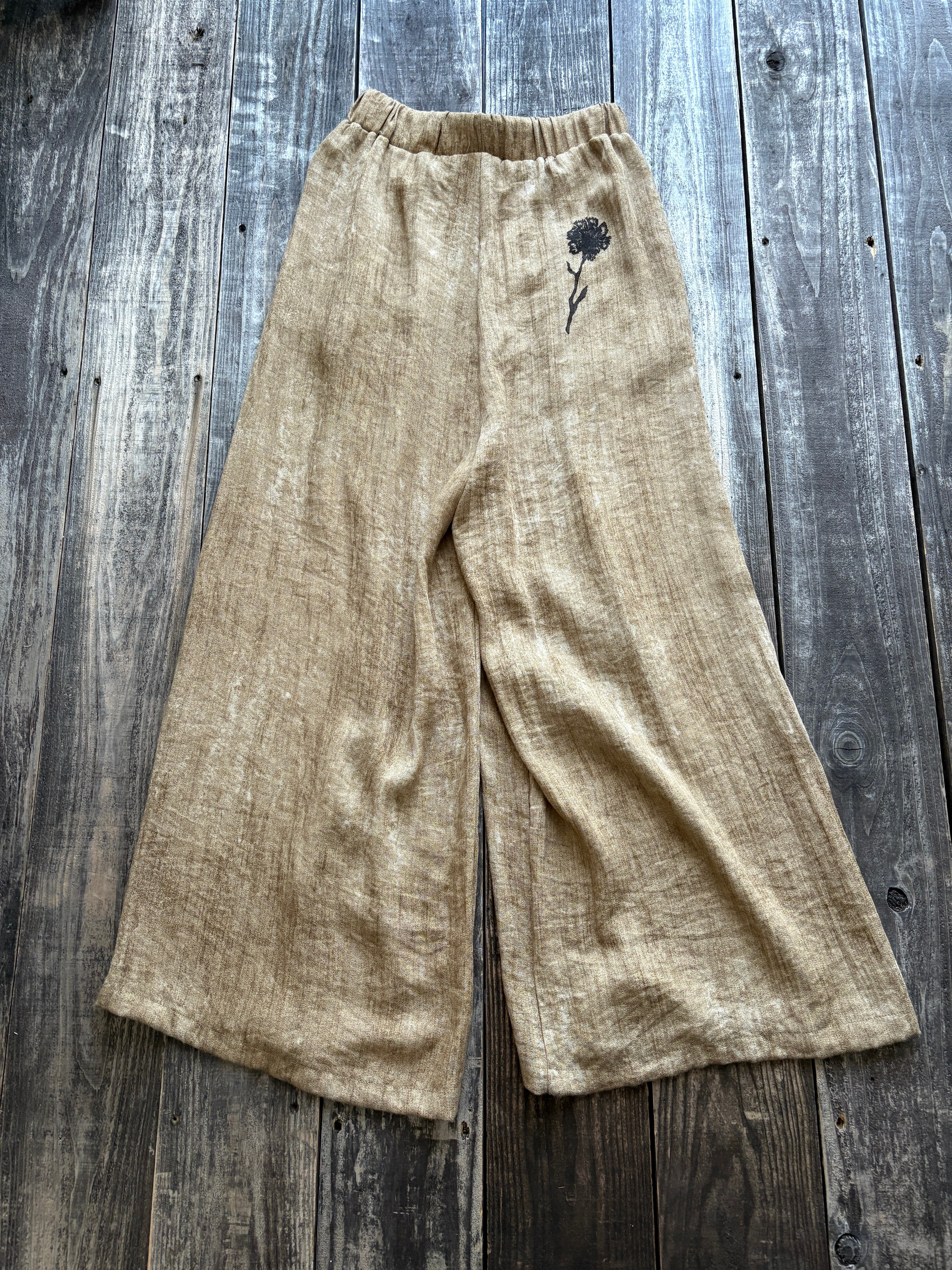 リネンとレーヨンの素材で柔らかいテロっとした質感が気持ちいい⭐︎手染めデザインの色合いがまたいい。