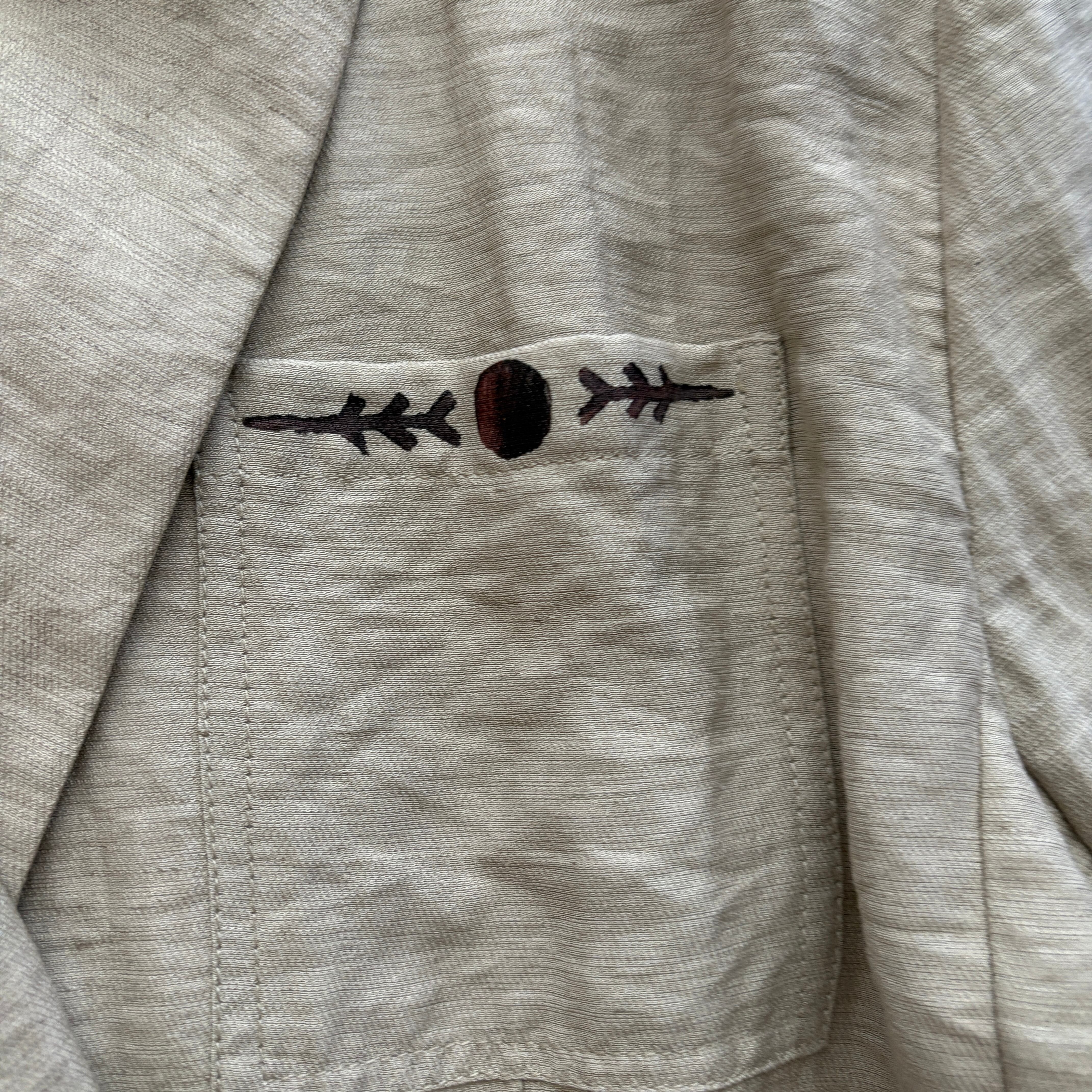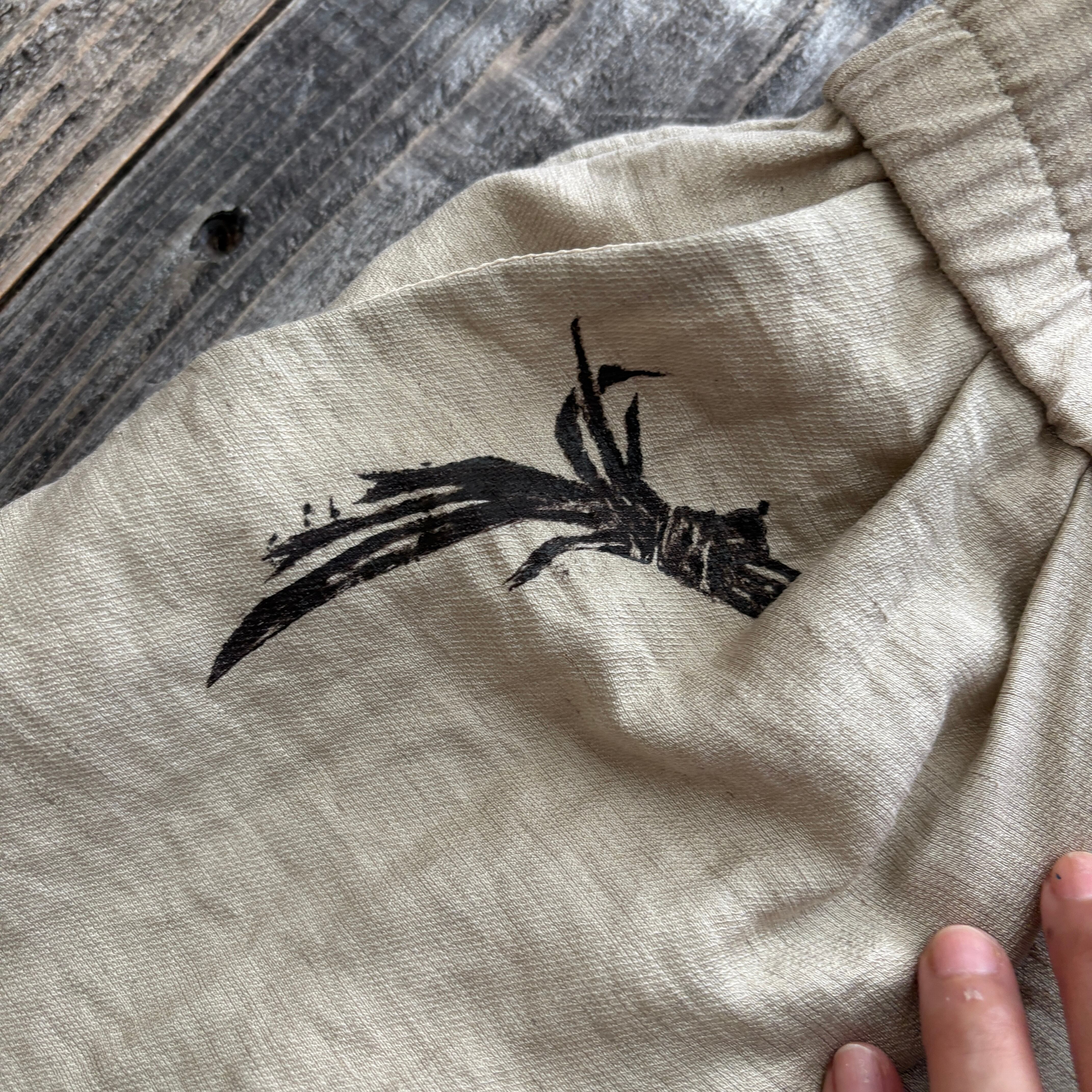 琉球にちなんだ物を手彫りした版で一つ一つ服に押しております
