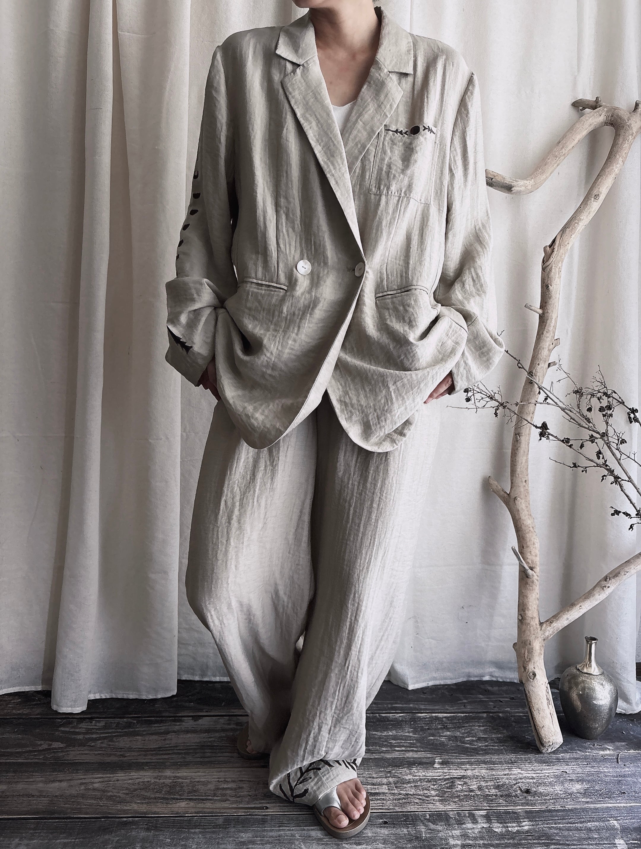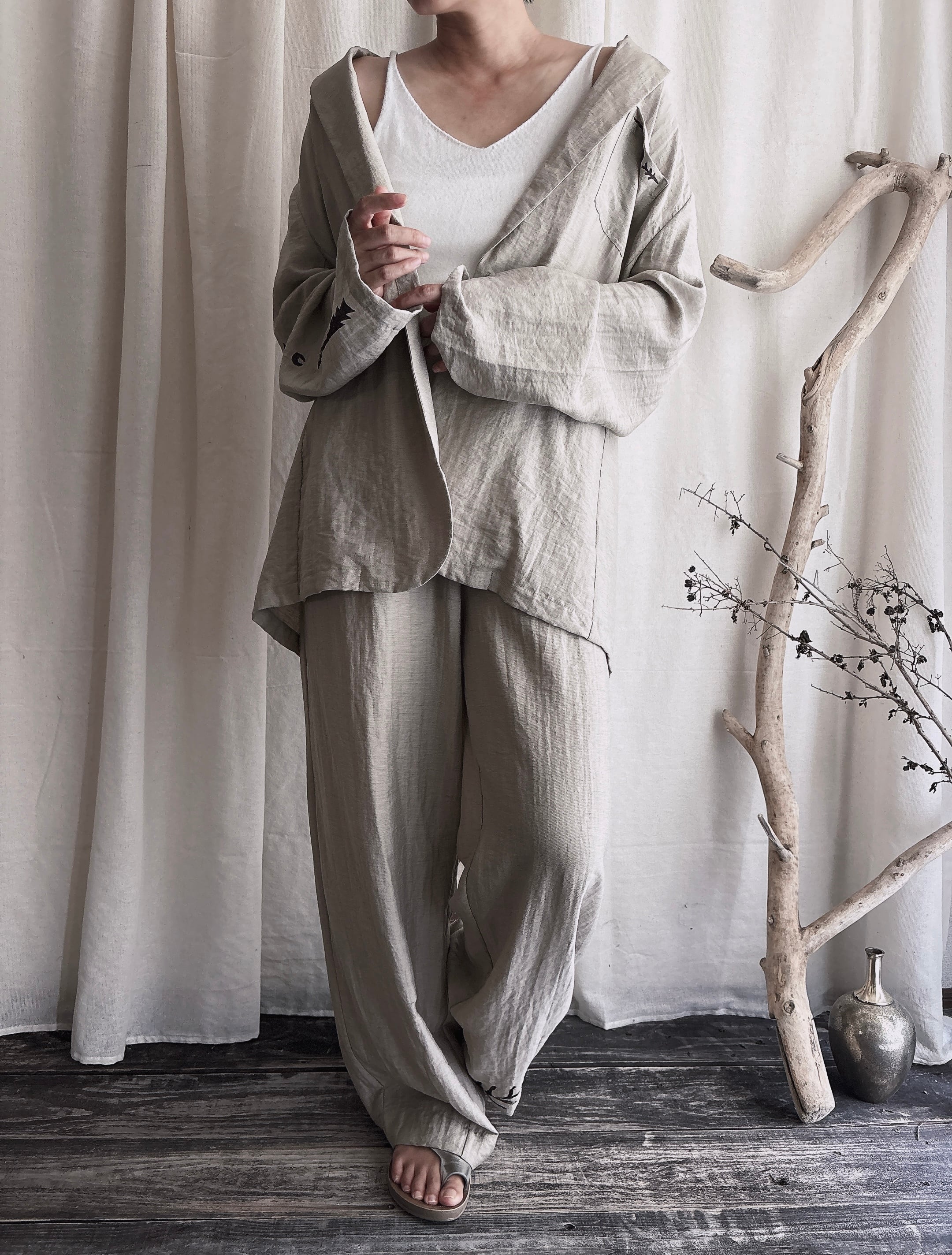 こちらはリネンとレーヨンねセットアップで、トロンとして肌触りいいです
