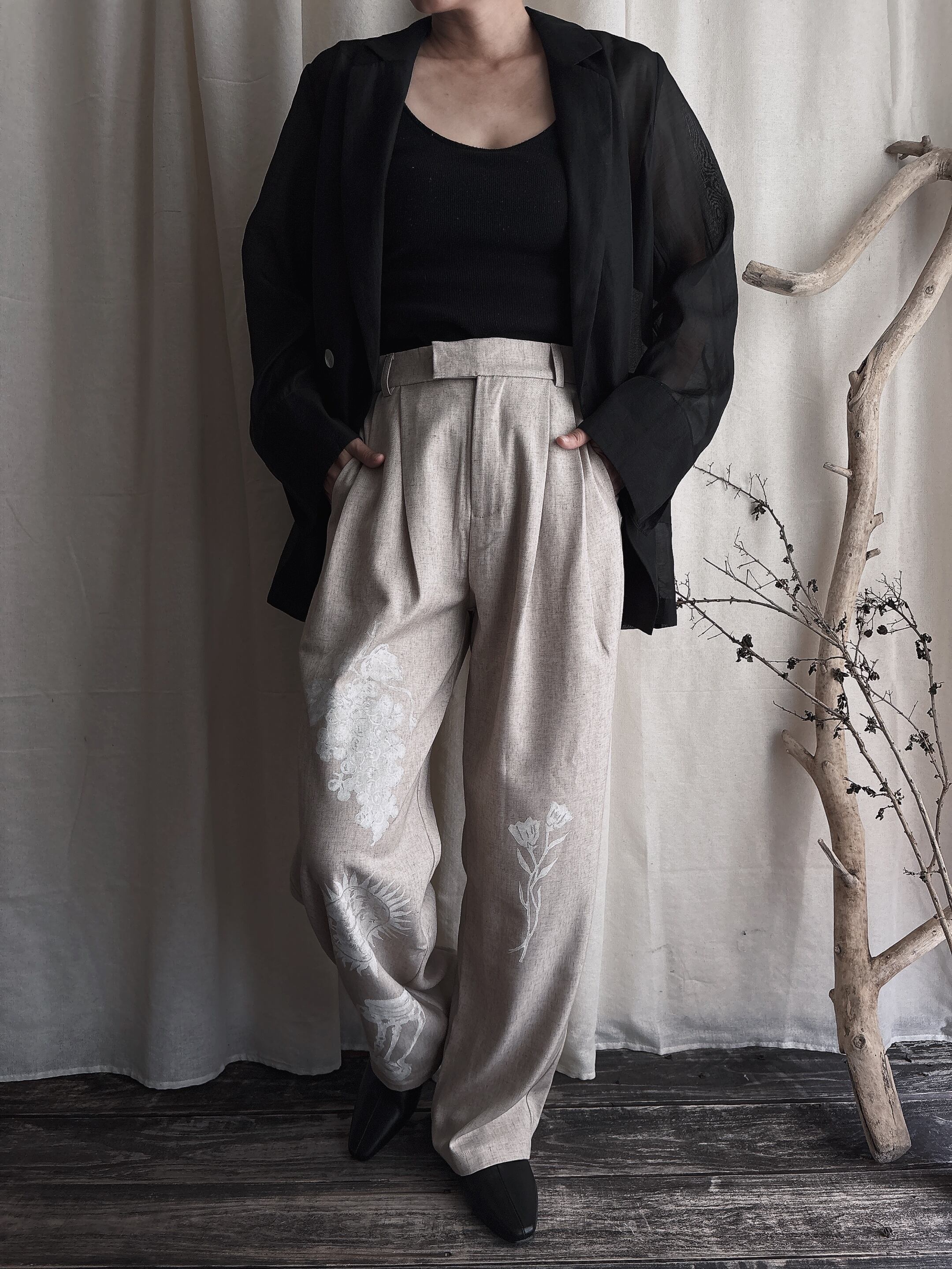 真夏の珊瑚色。真っ白なプリントをパンツに⭐︎