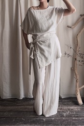 リネンとレーヨンの素材で柔らかいサラっとした質感で肌触りいいです
