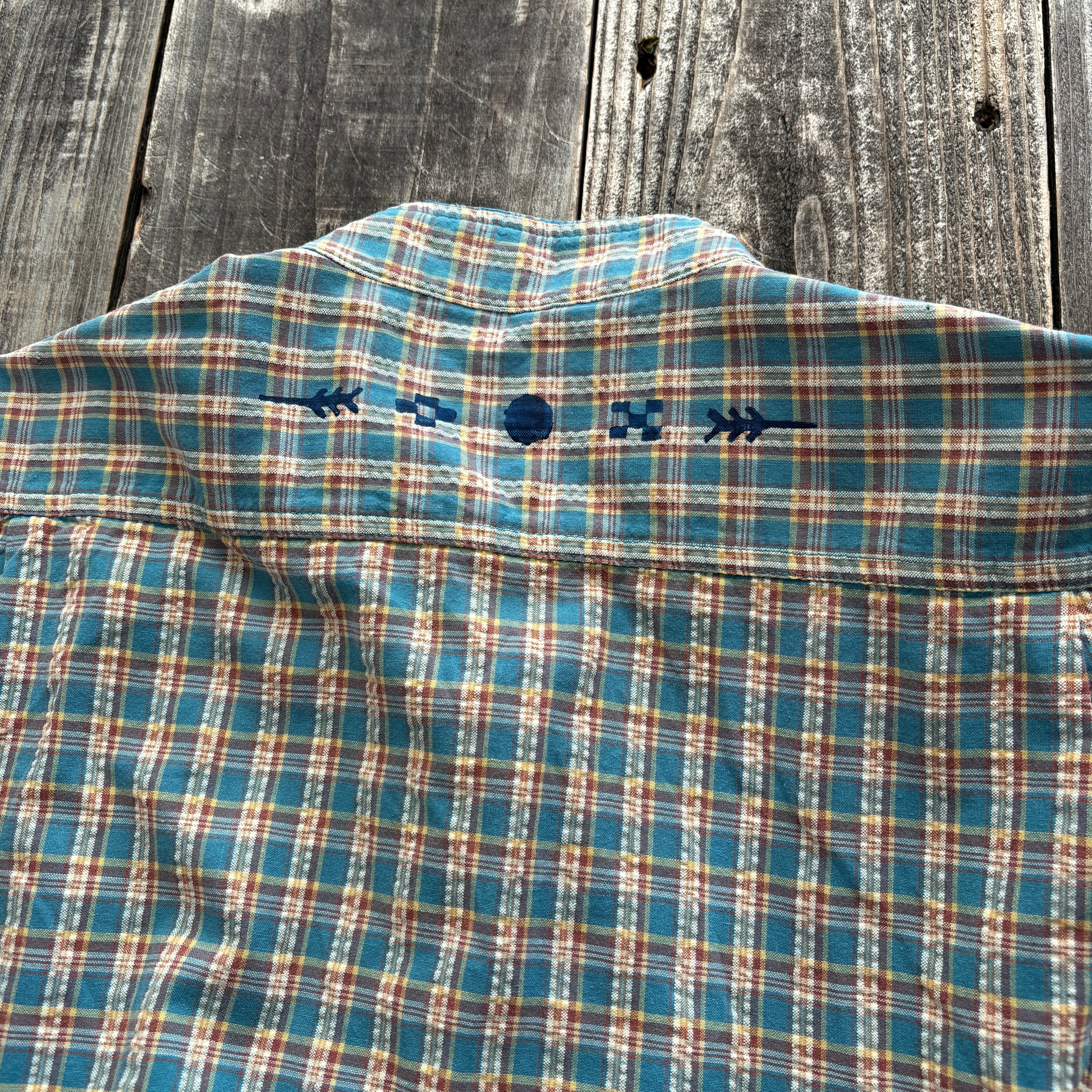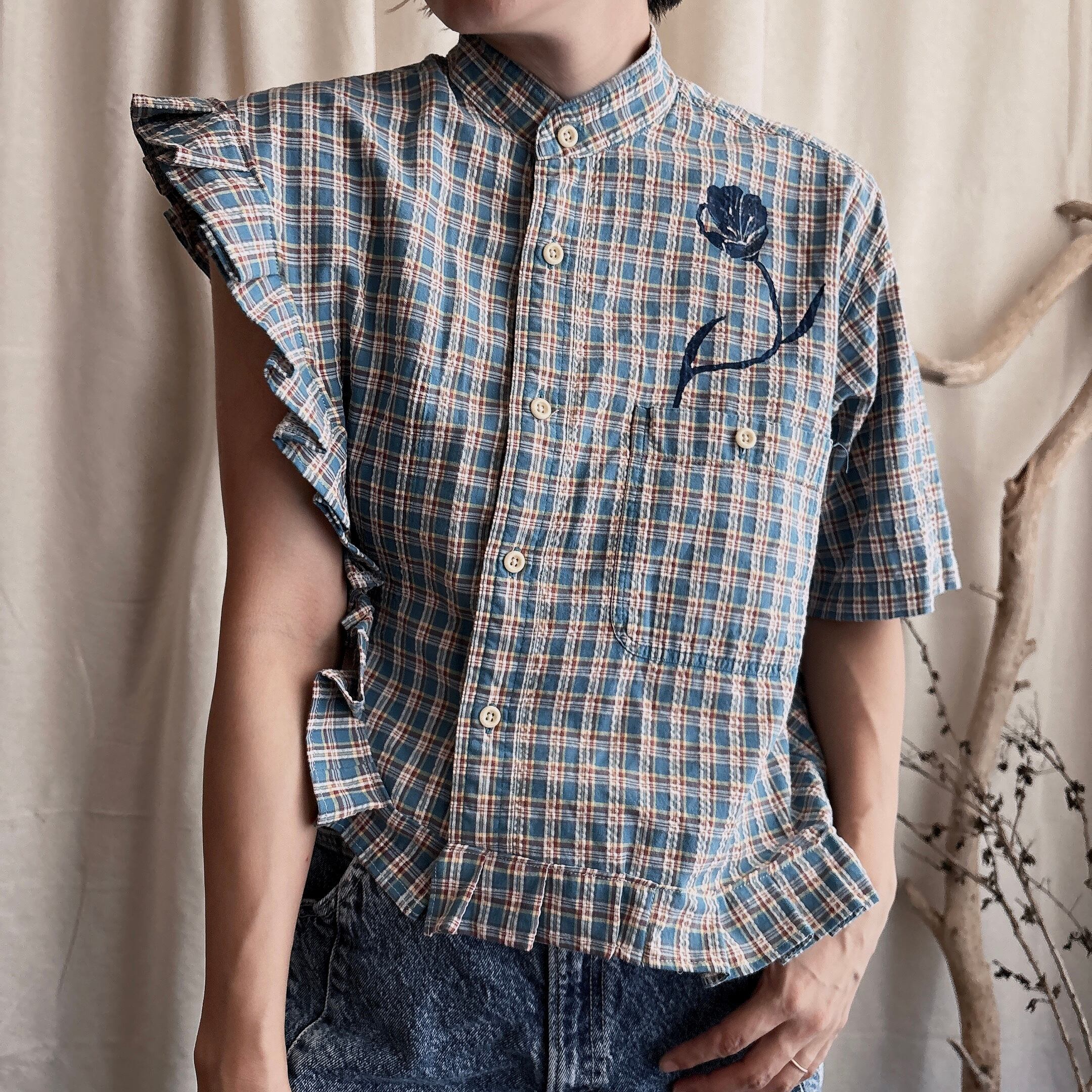 作家様のリメイクブラウスに沖縄にちなんだ手彫りの版をプリントされた素敵なブラウス⭐︎