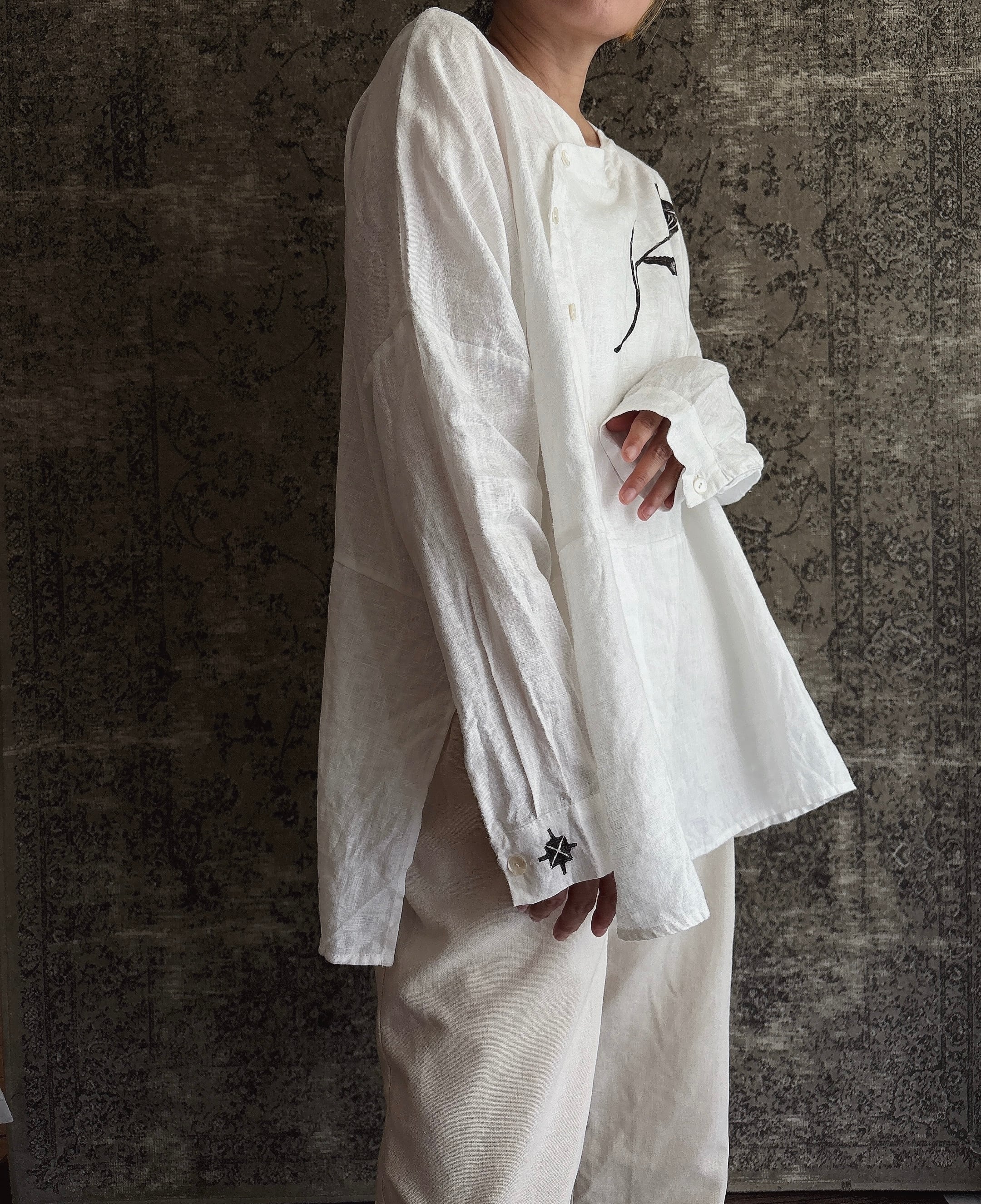 袖のワンポイントはハヂチと言って沖縄の昔の女性がしていたタトゥーで成人の証に手に彫ったりされてました