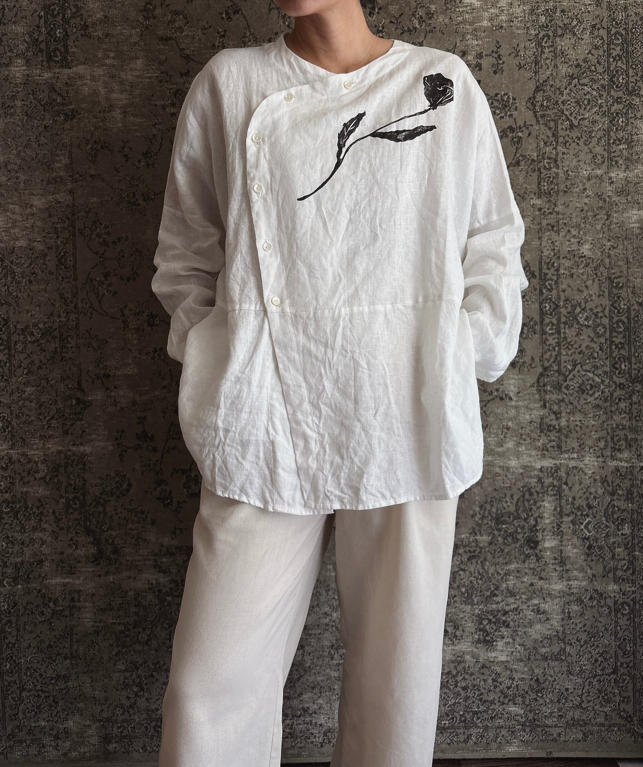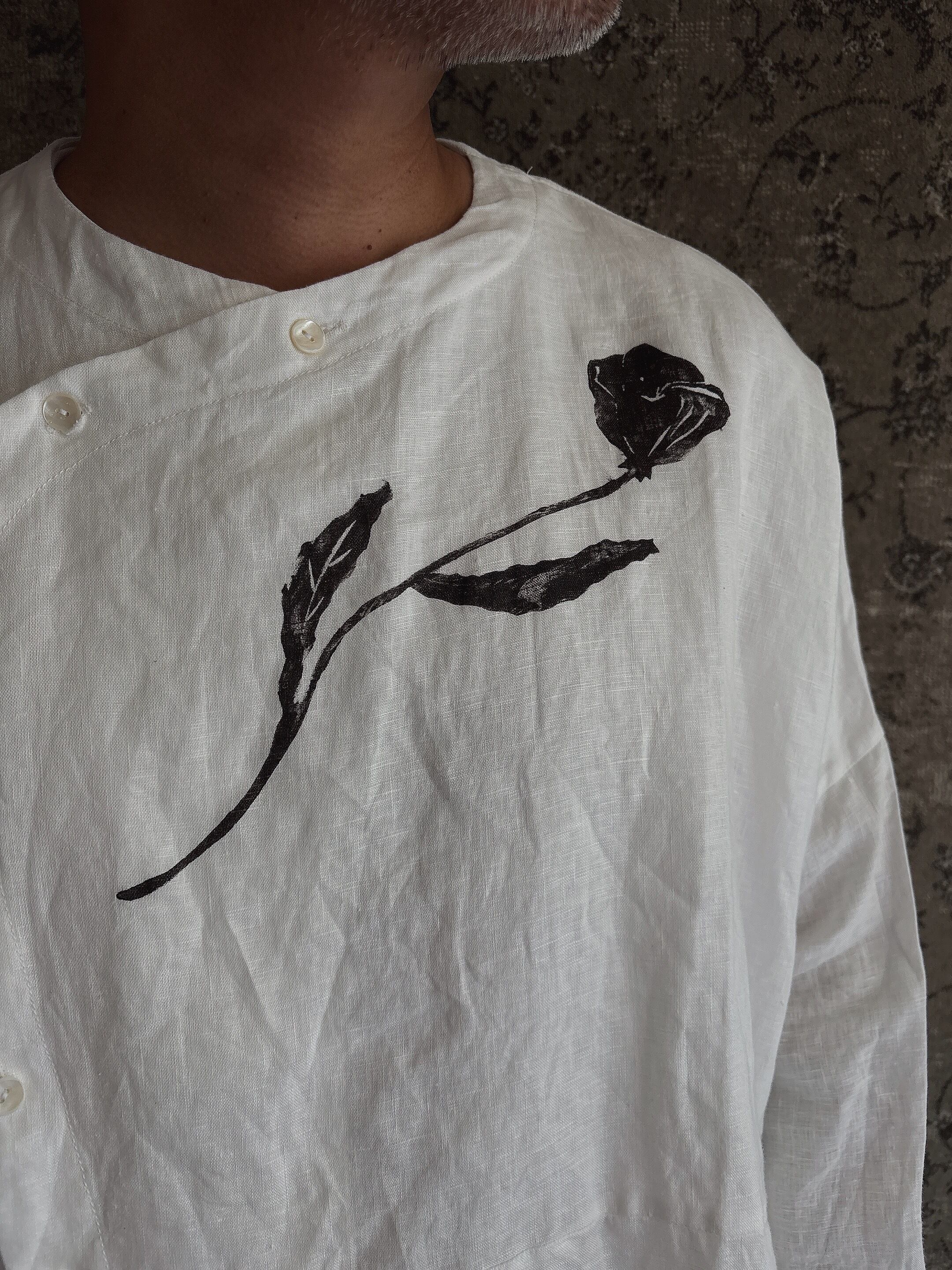 沖縄にちなんだ物をシルクスクリーンではなく、手彫りした版で一つ一つ手作業で服にプリントされてます