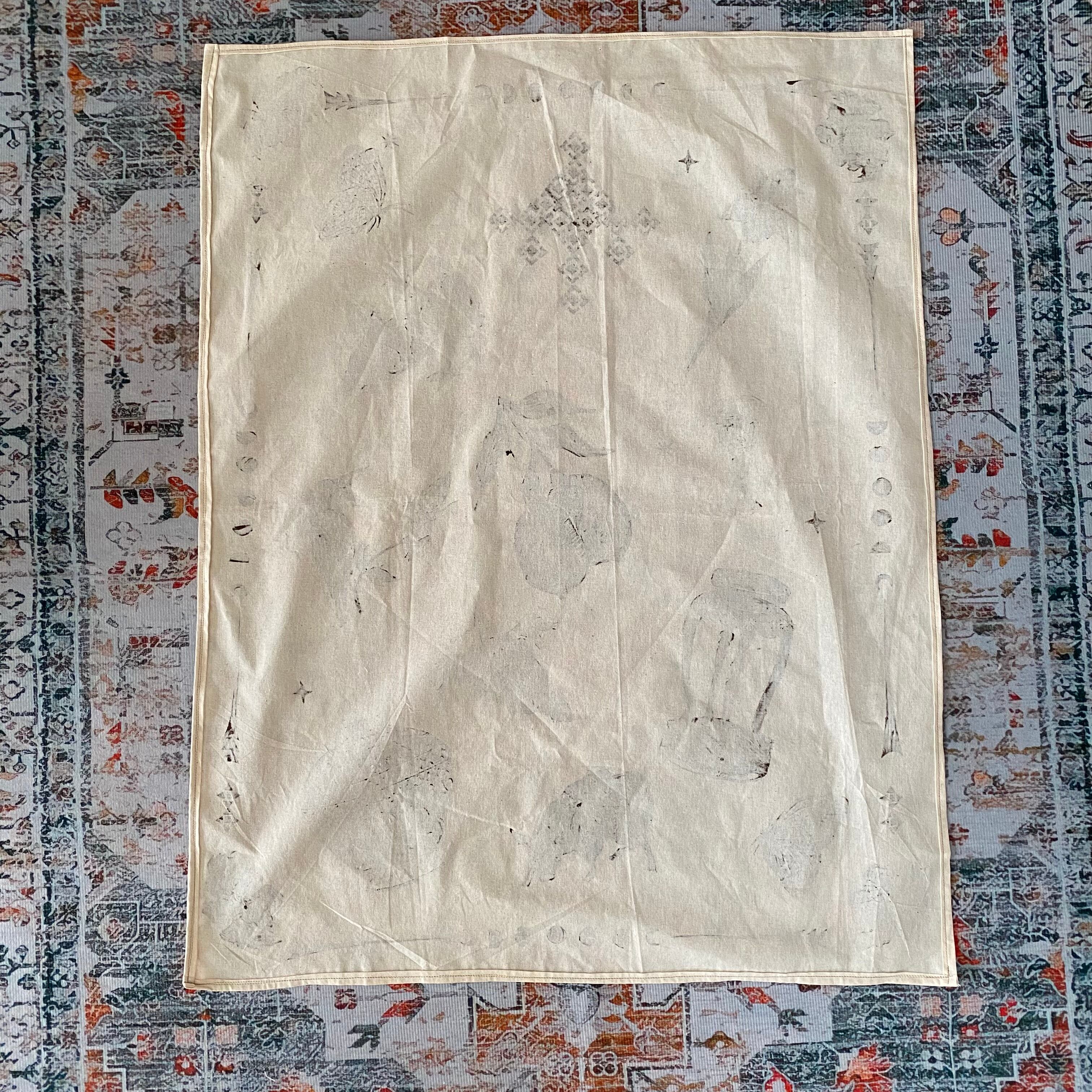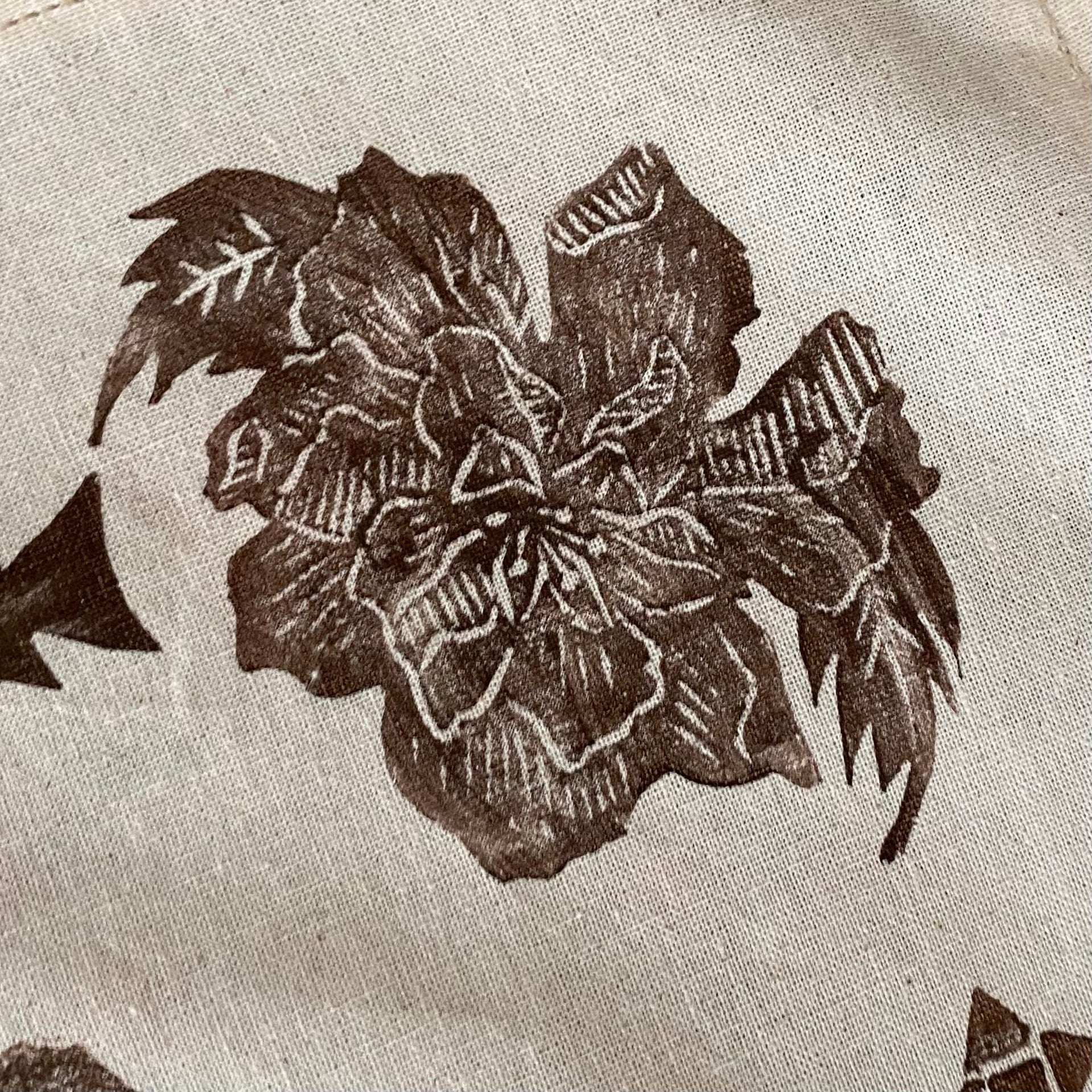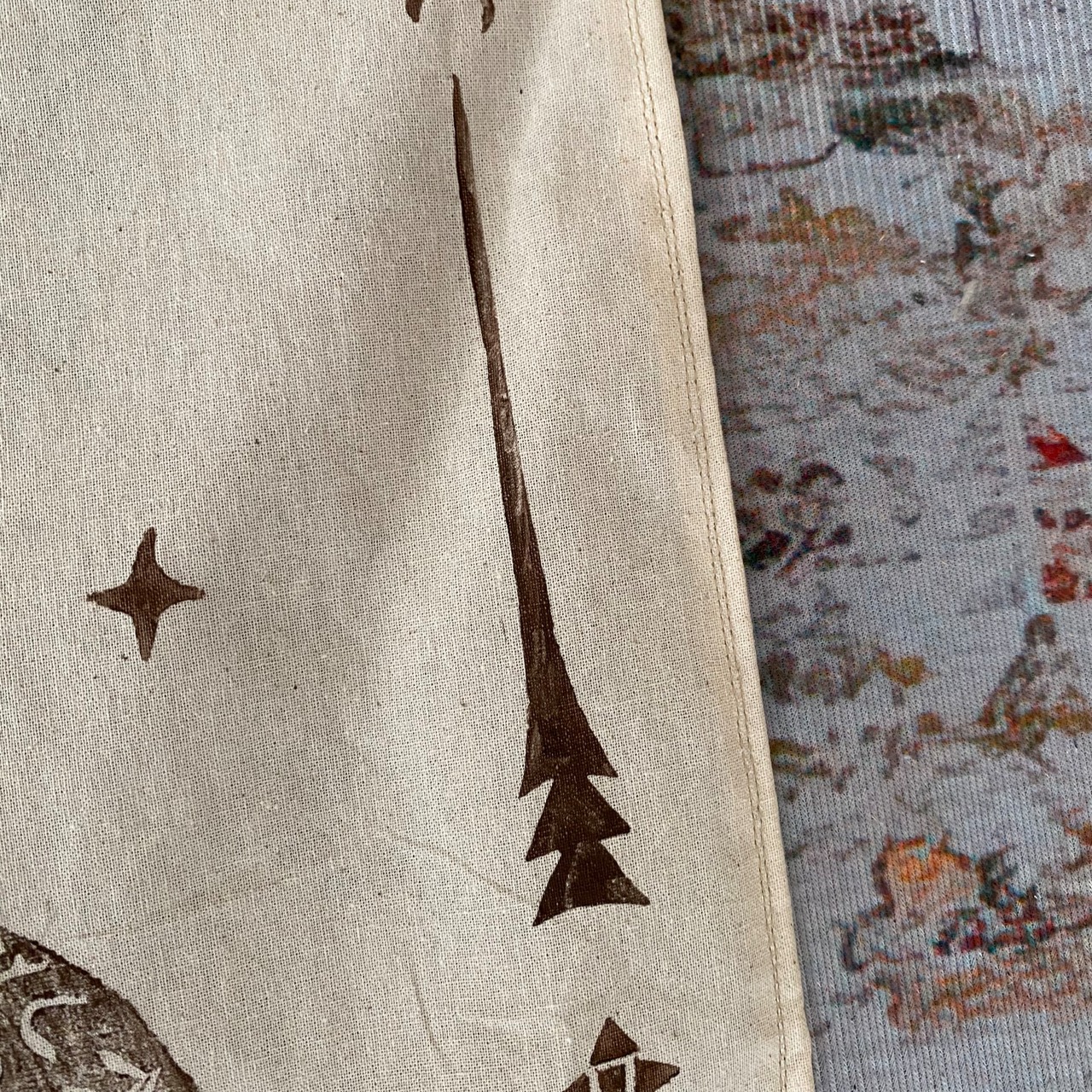ブロックプリントアーティストの作品で、沖縄の自然や動物、ハヂチをモチーフに版を一つ一つ丁寧に彫り、専用のインクで心を込めてこちらのタペストリーをハンドメイドで作られています