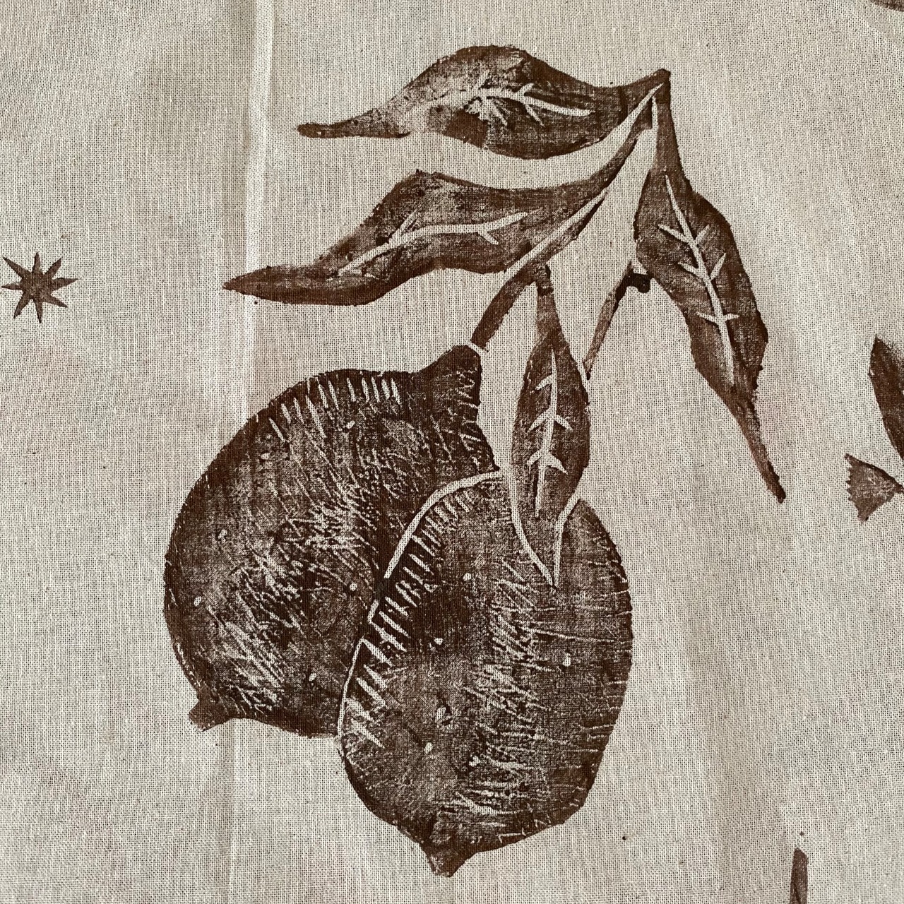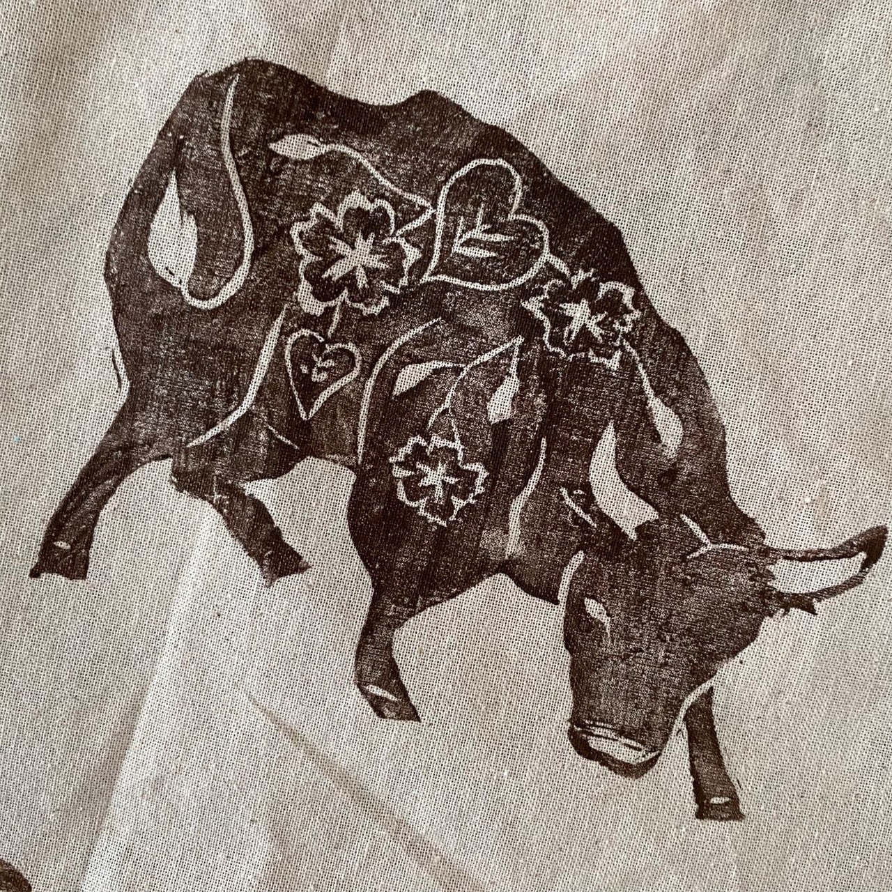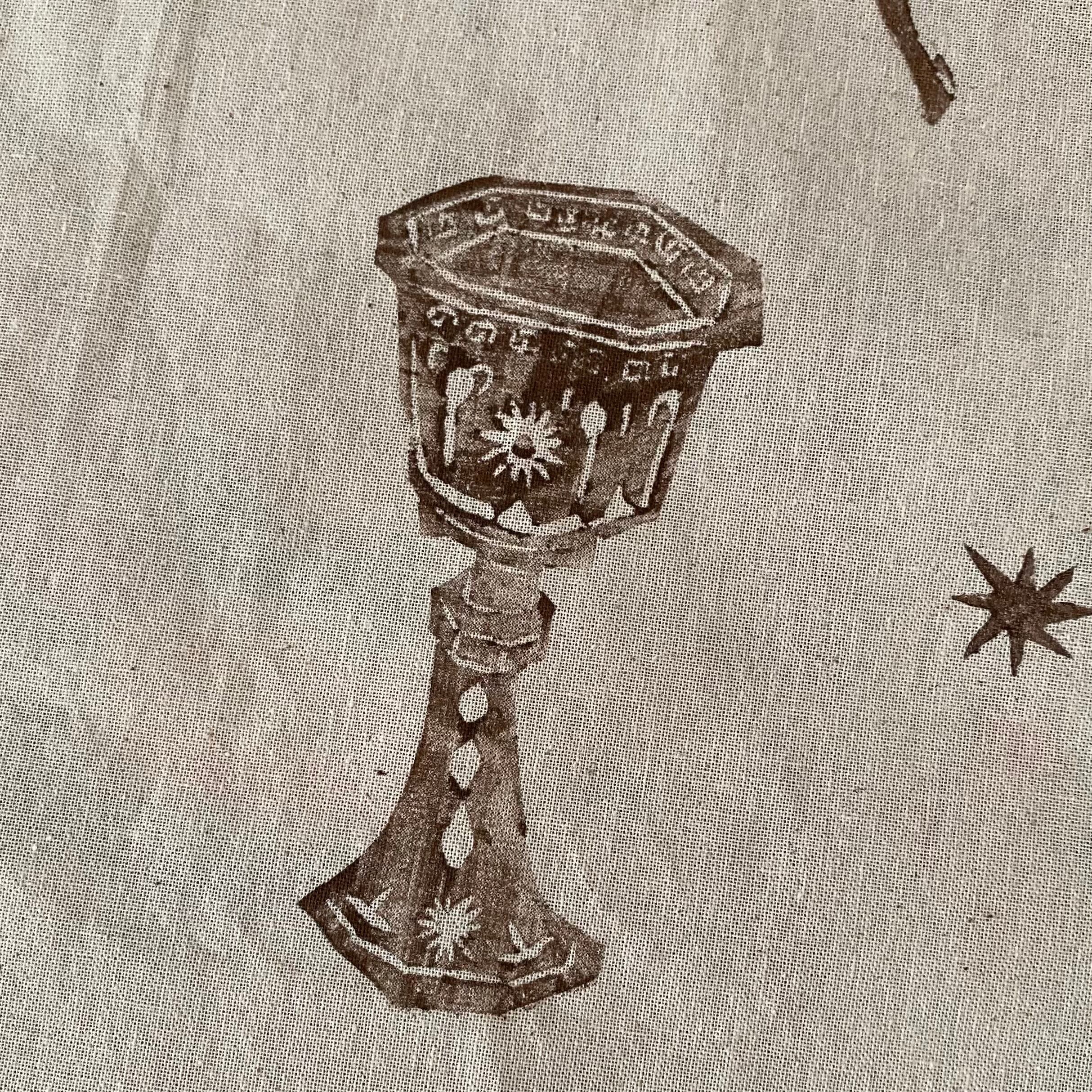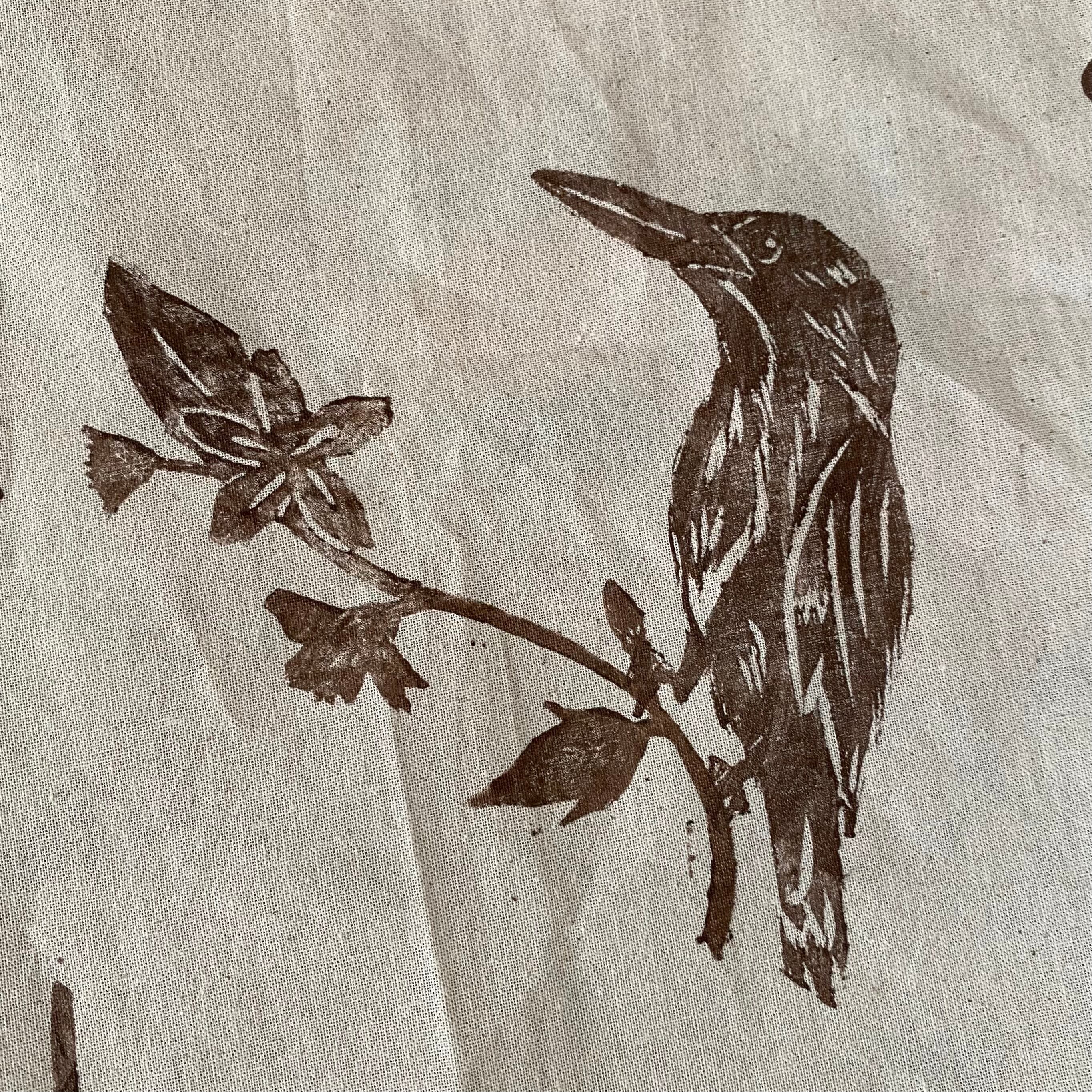 ブロックプリントアーティストの作品で、沖縄の自然や動物、ハヂチをモチーフに版を一つ一つ丁寧に彫り、専用のインクで心を込めてこちらのタペストリーをハンドメイドで作られています