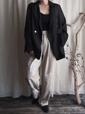 股上後45 cm ◉ウエストのベルト通しの一番上から股下の繋ぎ目まで